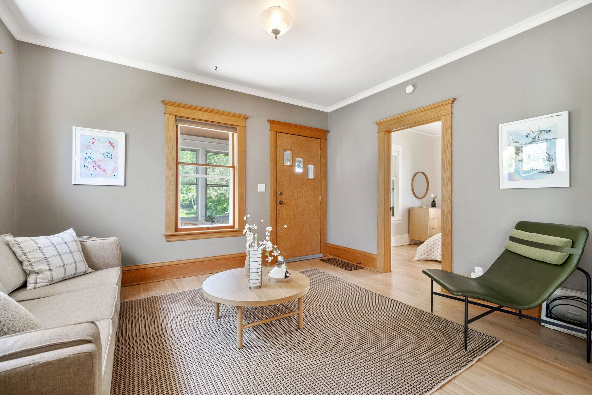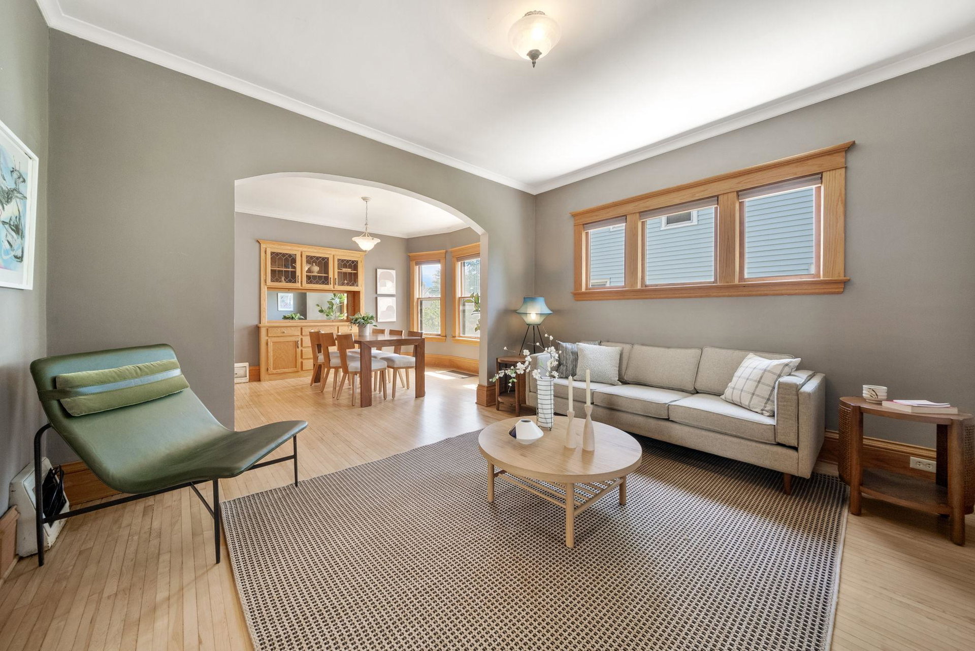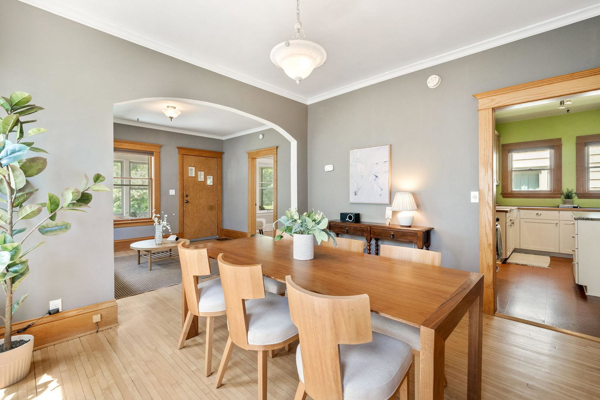 Come home to this light filled 1.5 story Bungalow in Corcoran with a welcoming front porch, primary suite upstairs, spacious backyard, and BRAND NEW ROOF + SIDING!! Beautiful natural woodwork, built in, and hardwood floors host the main floor with 2 bedrooms and a full bathroom that includes both a walk in shower and claw foot tub. Gather around the island in your spacious kitchen with plentiful storage, stainless steel appliances and butcher block counters. The upper level includes the primary suite’s own 3/4 bathroom + walk in closet. Enjoy the summer in your larger than average backyard and park comfortably in the 2 car garage. Come see!
