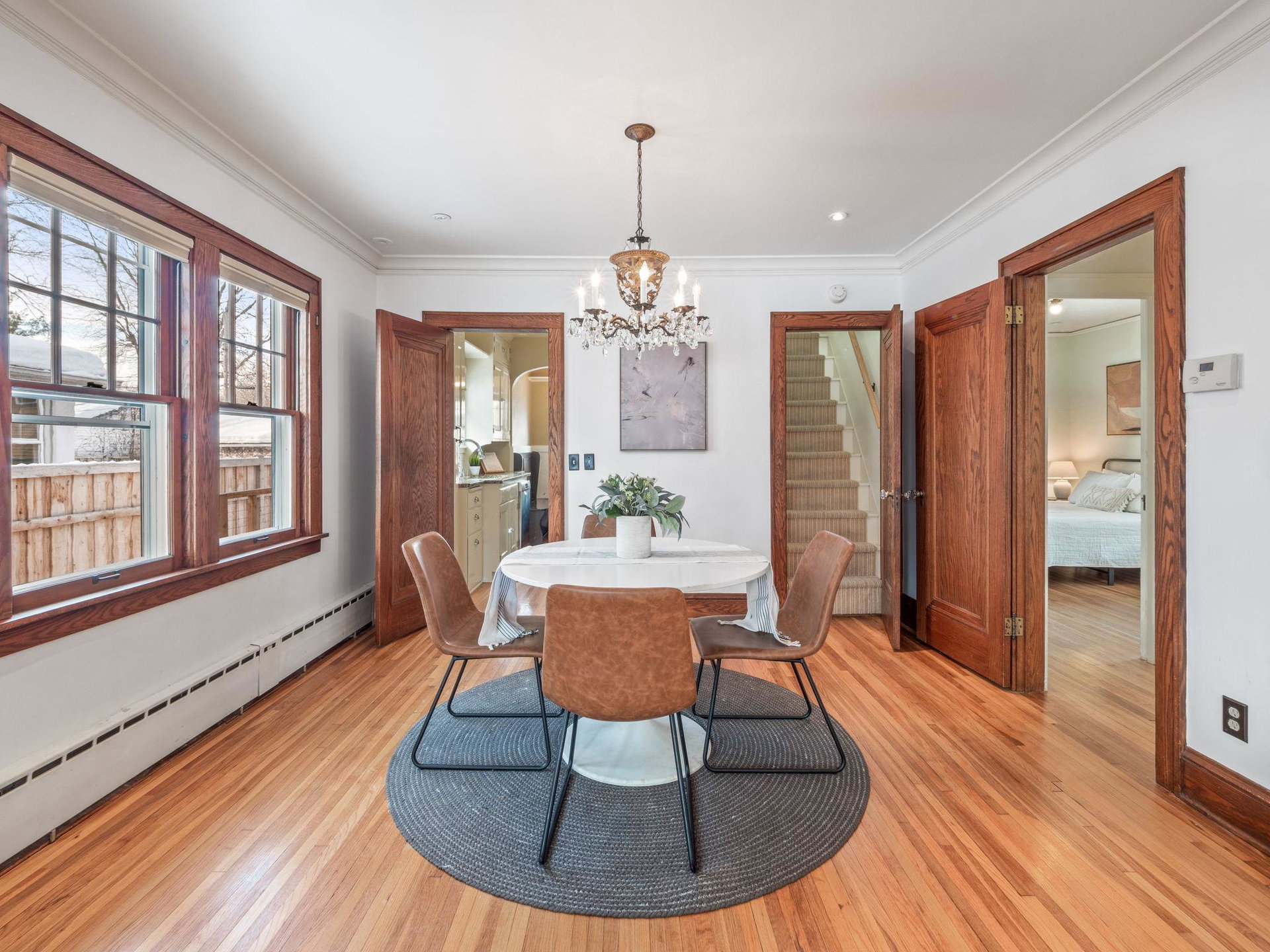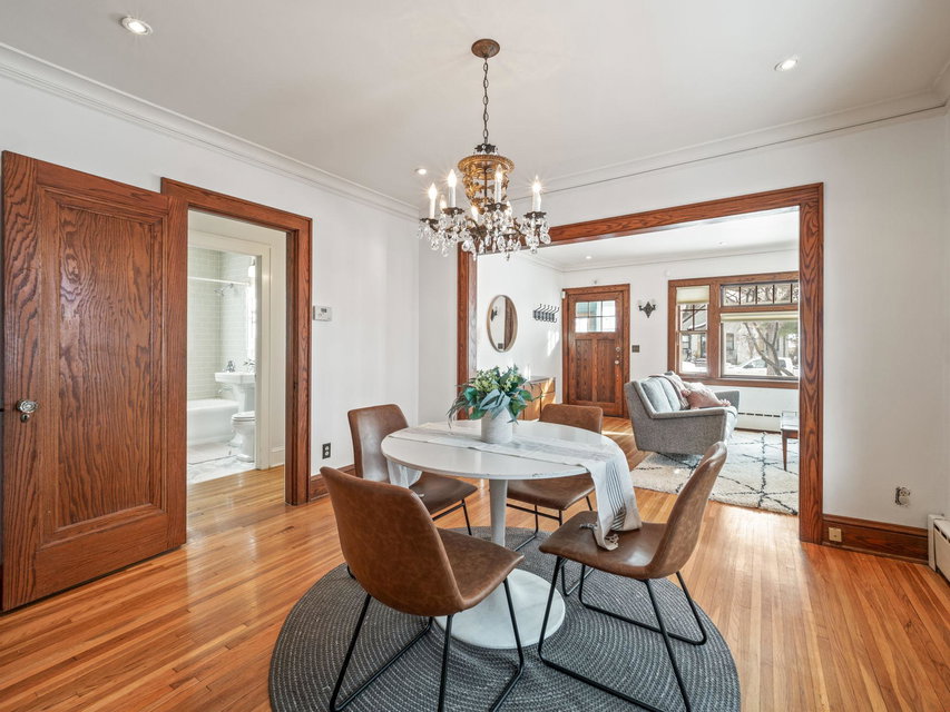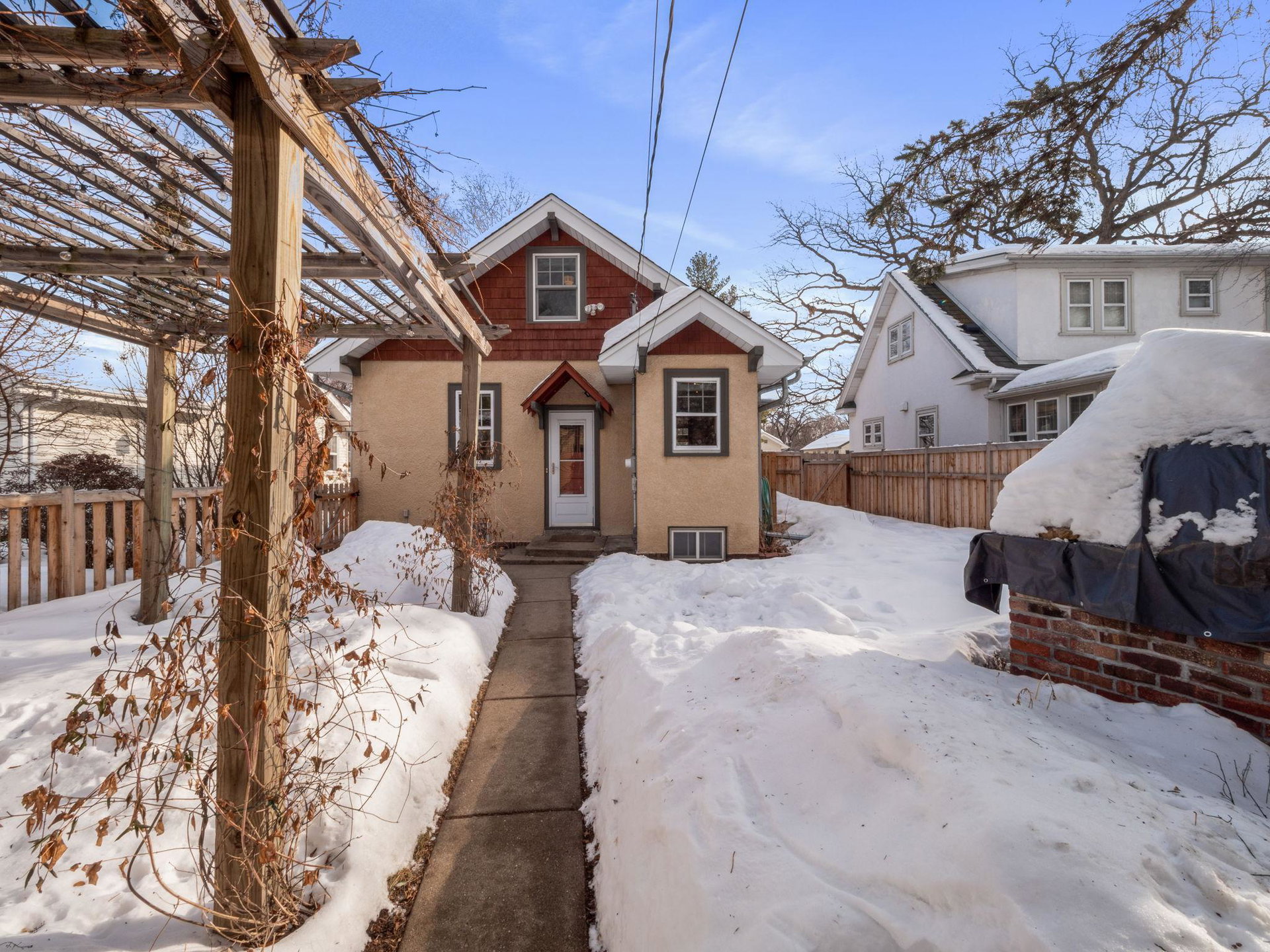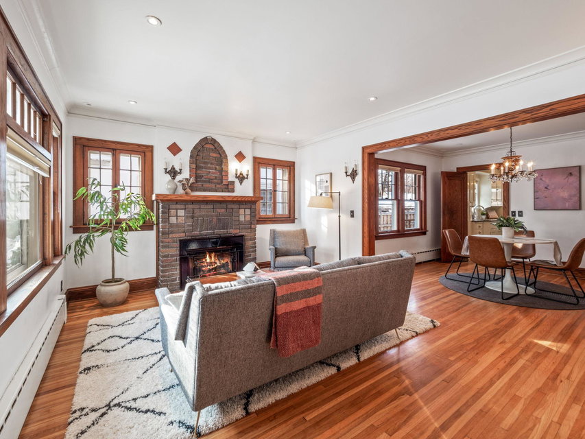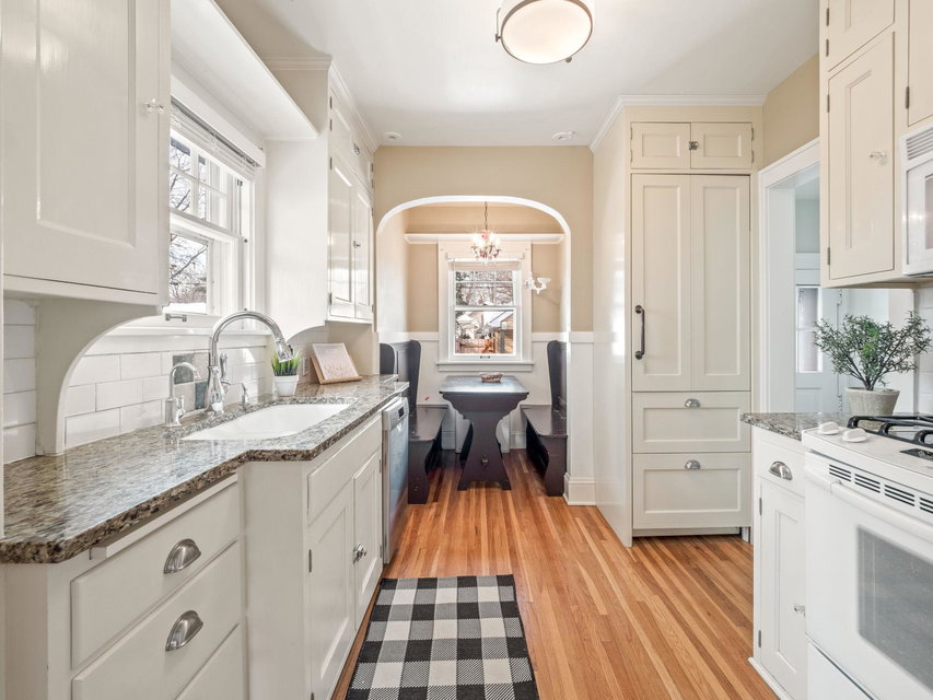 Multiple Offers _ Offer Deadline is 6 PM Saturday 2/11. Located just two blocks from the river. This well cared for home is ready for you! After coming through the friendly front porch, you find a handsome gas fireplace, brick hearth and mantle, original oak woodwork and hardwood floors, coved ceilings, and pristine plaster walls. The delightful kitchen has custom and period-appropriate cabinetry, cozy breakfast nook, granite countertops, and fully integrated fridge. The main floor full bathroom is totally updated with marble floors and sweet subway tiled walls. The refinished upper level holds a quiet bedroom suite, built-in storage, and private 1/2 bath. The spacious basement is a great value-add, with plenty of usable space and head room, a 3/4 bathroom, and another gas stove! The lovely fenced backyard adds living space; it features a relaxing patio, newer and spacious two-car garage, raised-bed garden boxes, a pergola that hosts wine grapevines, and a wood-fire brick oven.