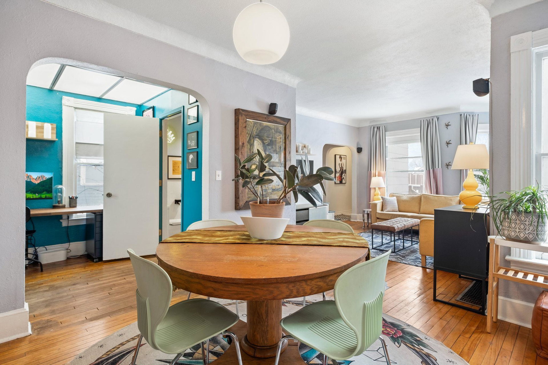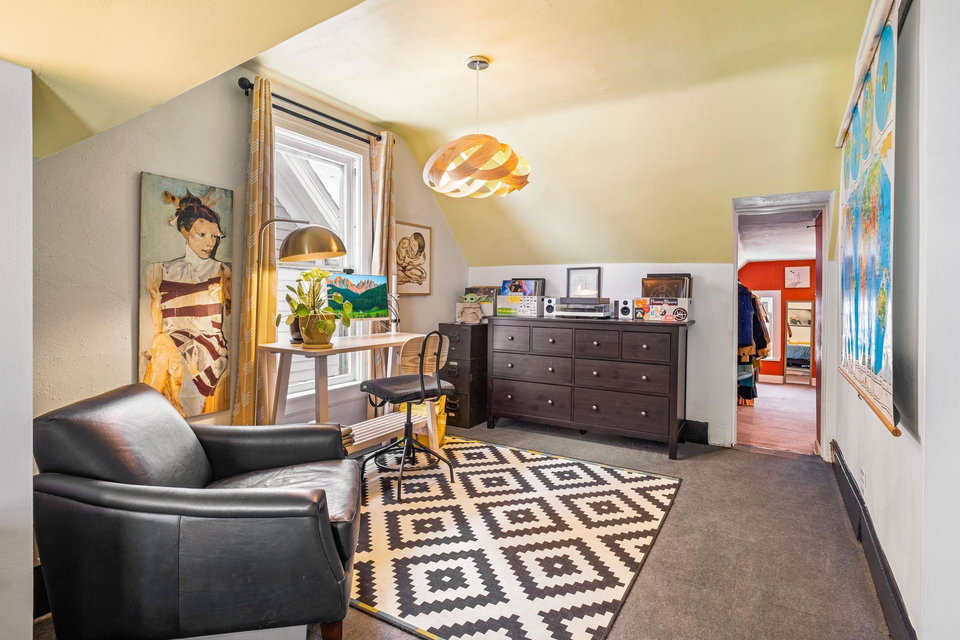 Contemporary meets classic in this 1.5 story home. Stylish updates to the bathrooms, kitchen, lighting, entry, and landscaping bring fresh energy to the charming character of wood floors, large windows, and plaster arches. Practical updates over the current owners stewardship include forced air furnace, roof, and more recently water heater, HE washer/dryer and retaining wall. The upper level includes a spacious bedroom, full bath, work from home space, bonus room/walk in closet. Park comfortably in the two car garage and walk or bike at your leisure to the delicious restaurants nearby!