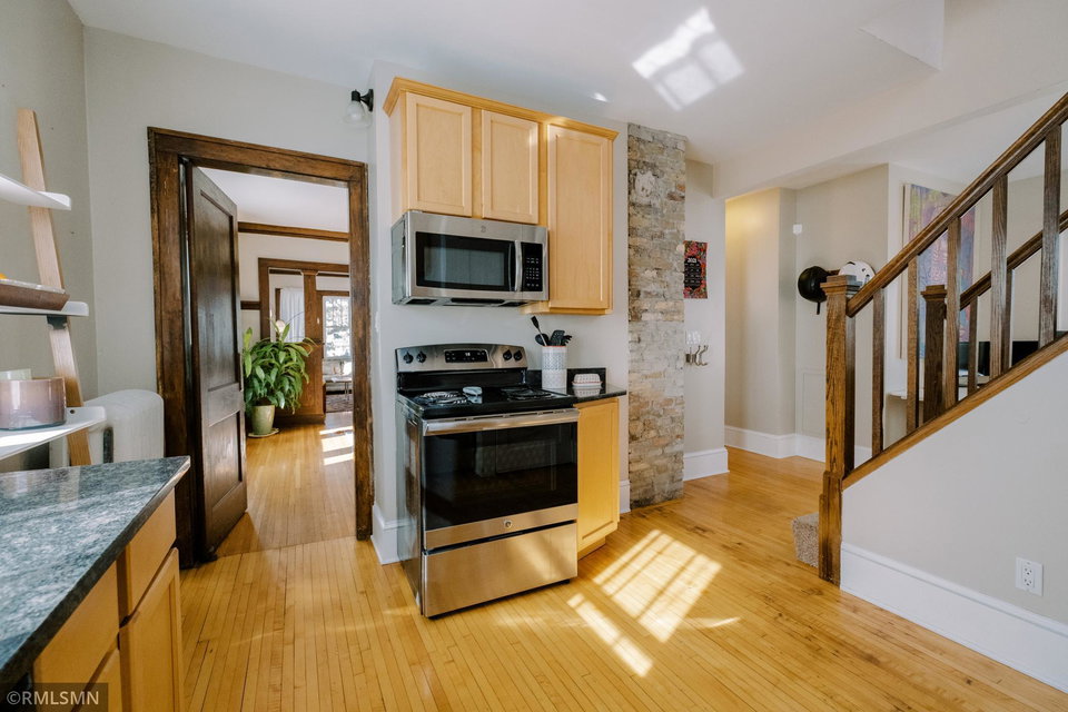MULTIPLE OFFERS – HIGHEST AND BEST DUE BY 4 PM SATURDAY Mar 6. Commodious 3 Bed / 3 Bath Craftsman in Powderhorn Park!! As you enter the home you are greeted by a sun-filled 4 season porch. The main floor has handsome natural woodwork, crown mouldings, built-ins, gorgeous hardwood floors, a lovely bedroom, a full bathroom, spacious living room and formal dining room. A recent remodel at the rear of the home includes a new kitchen with granite countertops, stainless steel appliances and exposed blonde brick. The kitchen is open to the newly created main floor flexible bonus room with patio doors that lead to the deck overlooking the backyard. The entire upper level is the primary bedroom suite which includes a private bath with soaking tub, conveniently located laundry, vaulted ceilings, a lounge area and plenty of storage space. The lower level of this home shows off it’s large footprint, with another bedroom, another bathroom and a very large family room. This one is a great value!!!