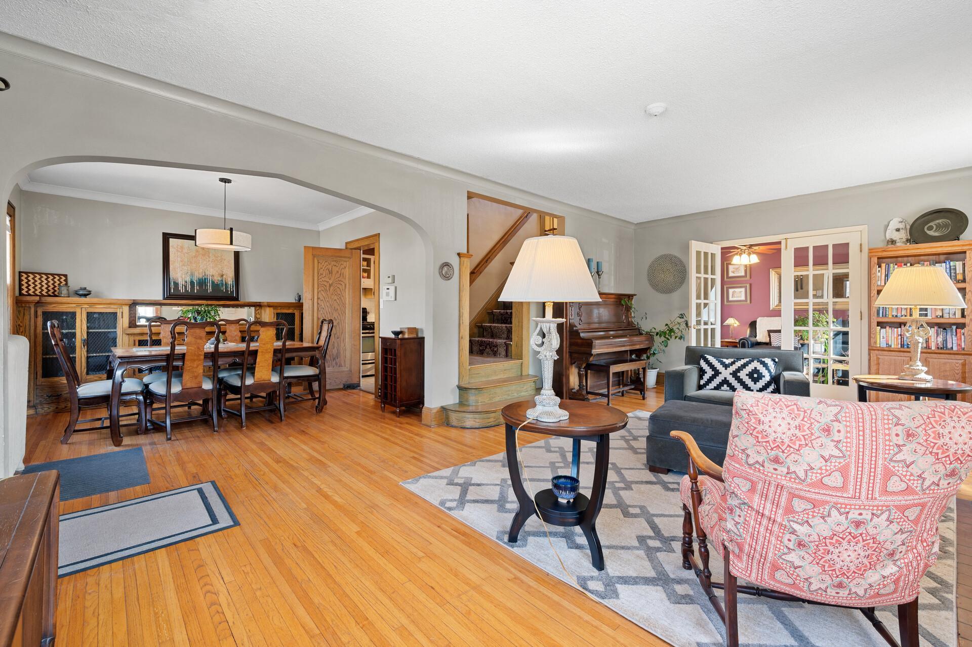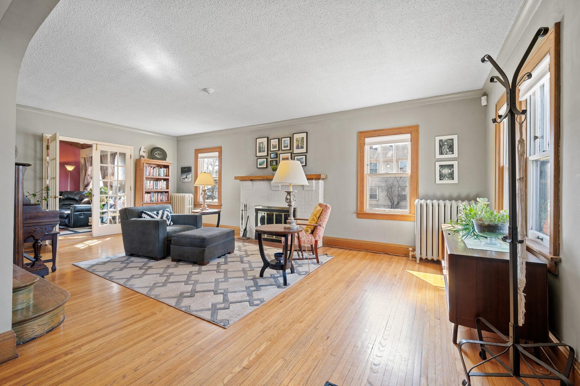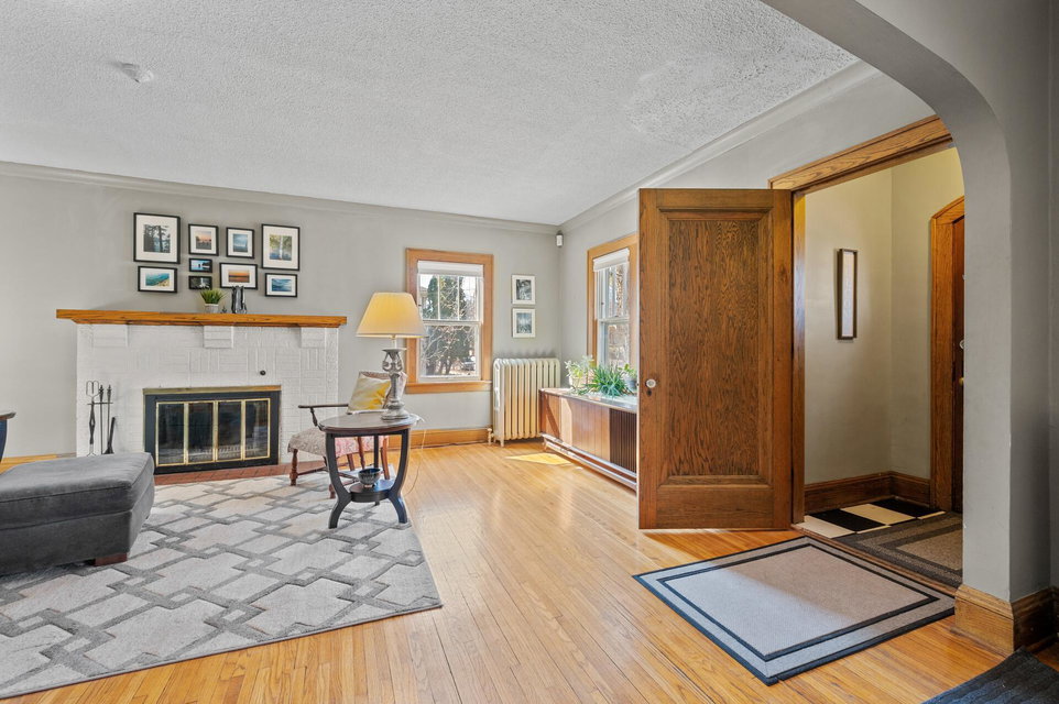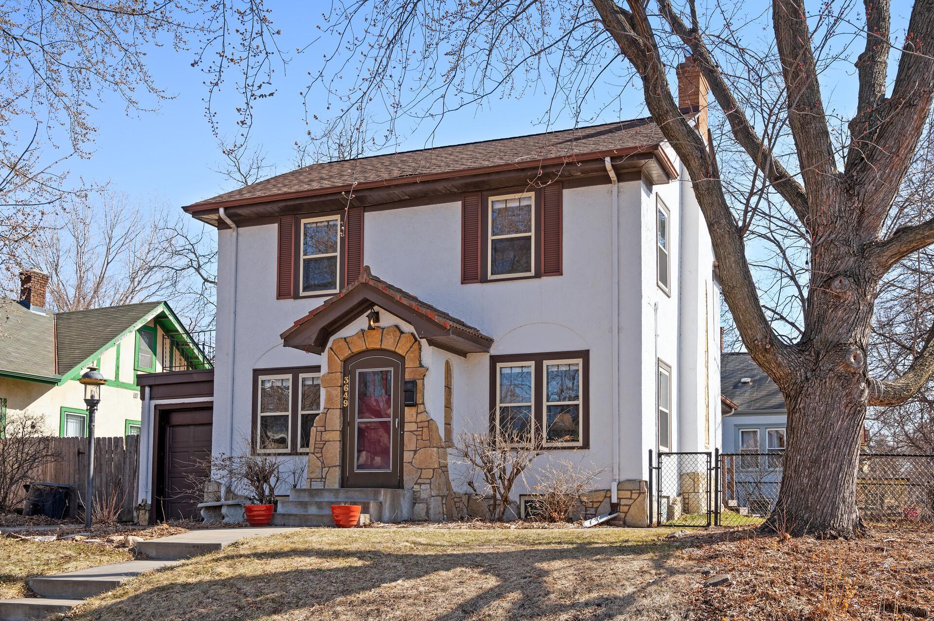 Charming & inviting home in Powderhorn Park! This lovely, spacious 2-story 1927 cottage is just 2 blocks south of Powderhorn Park in South Minneapolis. With great flow, it has a bright and sunny living room with a wood burning fireplace and original hardwood floors. Dining room retains gorgeous original built-ins. Kitchen features stainless steel appliances. From the comfortable window-filled family room, you have access to the fenced yard and brick patio; great for entertaining. 3 upstairs bedrooms have hardwood floors and includes walk-out balcony. The bathroom has original porcelain tub and tile. Super clean basement has 2nd bathroom, laundry room, new boiler and hot water heater, as well as ample storage space. New main water line done in 2014. Attached garage.