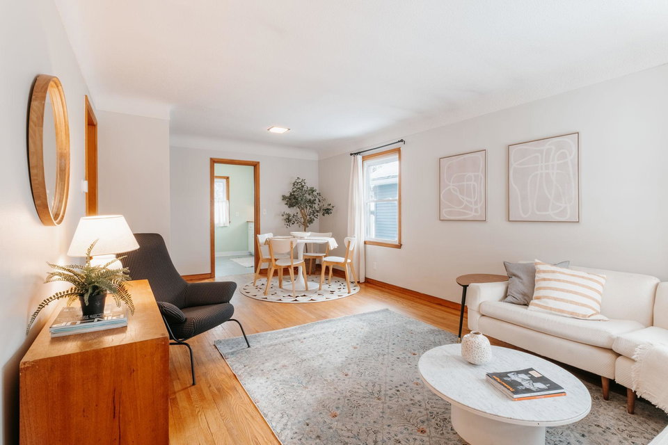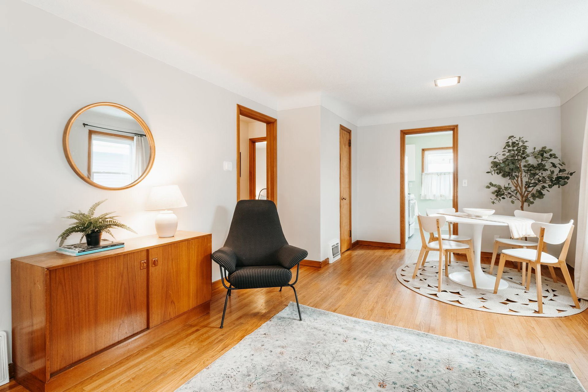 Charming midcentury rambler! Excellent Powderhorn Park location a stones throw of Sibley Park. Everything you’d expect from an intact midcentury home: original hardwood floor and millwork in excellent condition, smart and efficient kitchen, pristine original bathroom, and of course a basement bar with patterned tile floor! Spacious yard with 1+ stall garage.