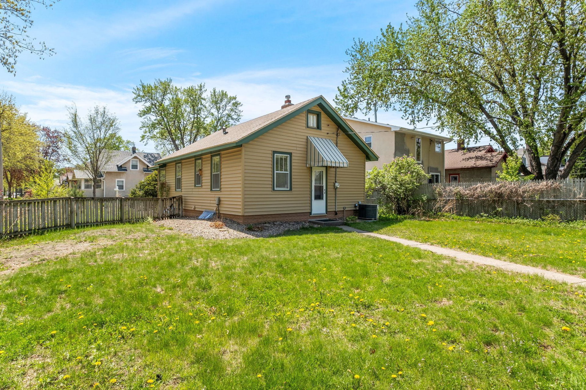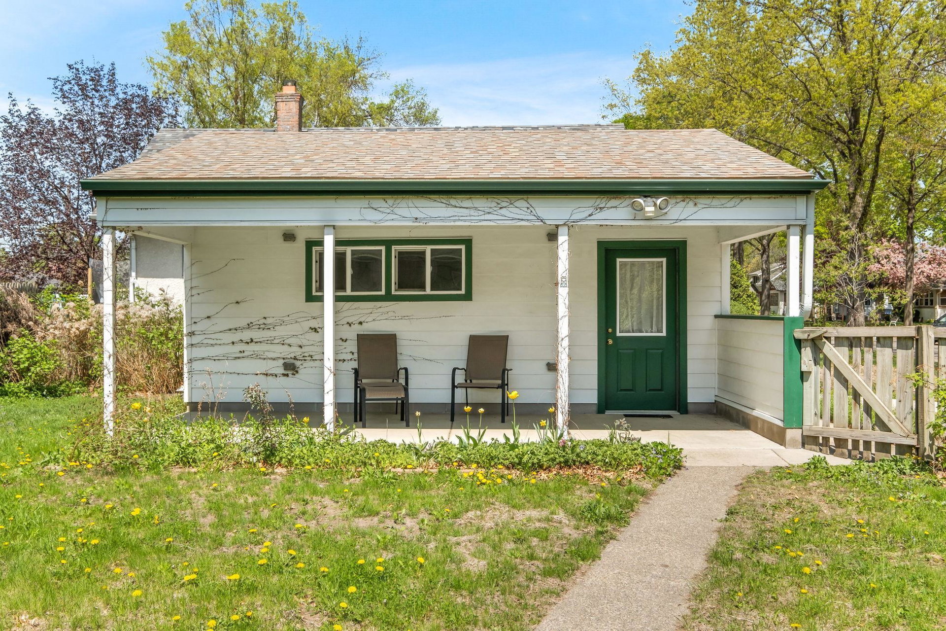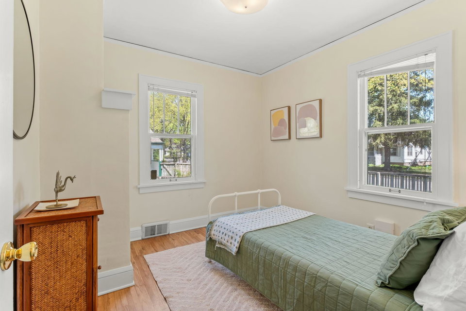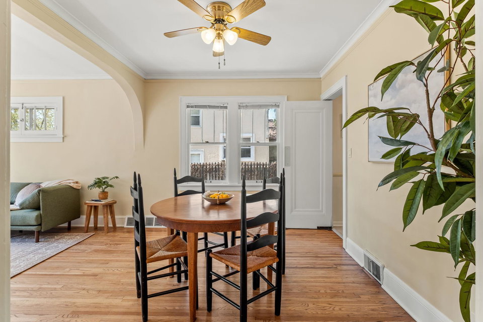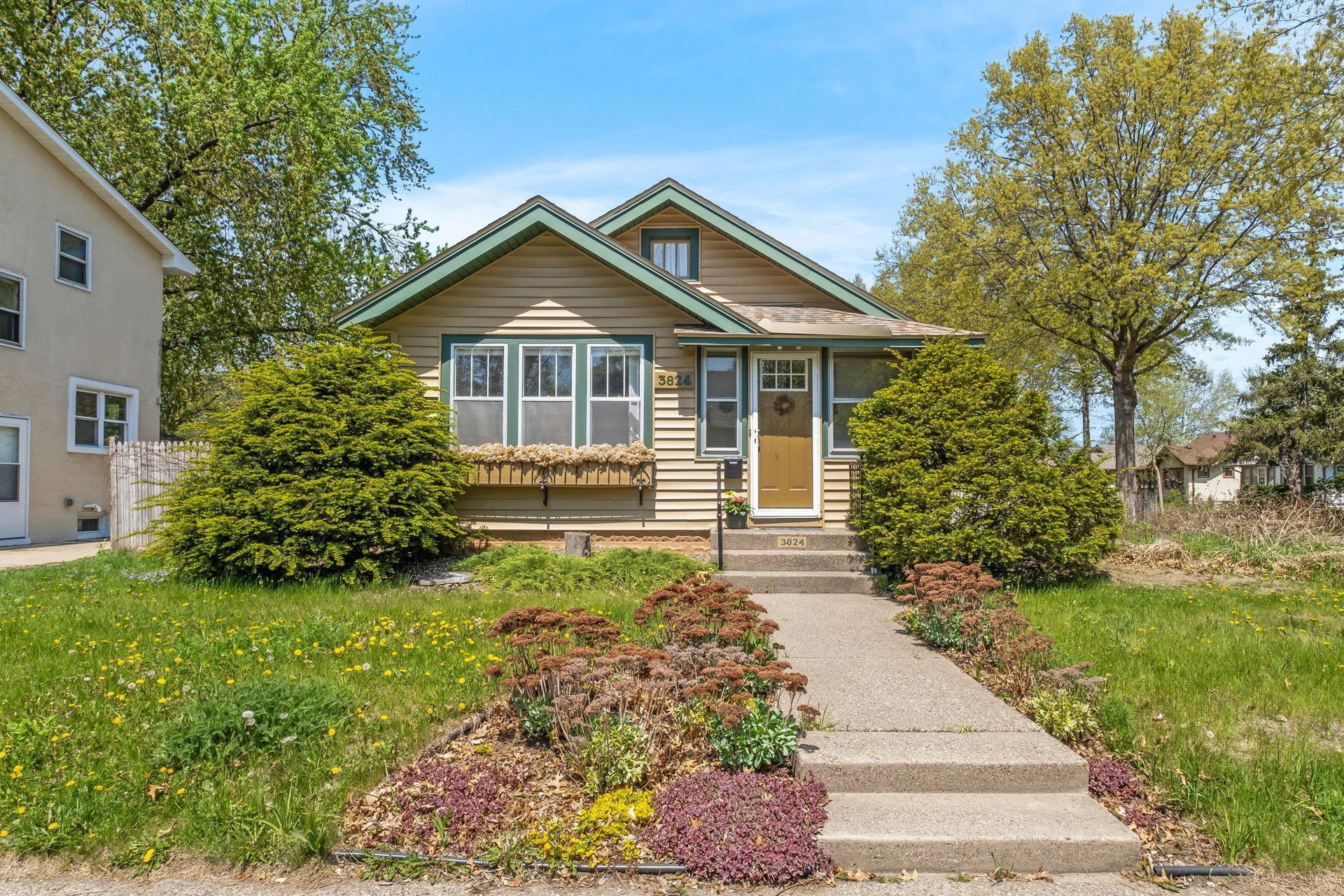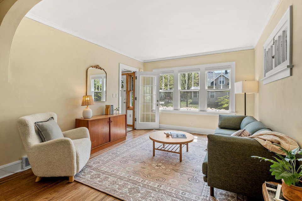 Multiple Offers Received – Offer deadline Saturday 5/17 at 12pm. Welcome to this lovingly cared for 2-bedroom, 2-bath bungalow, ideally situated on a spacious corner lot in the desirable Howe neighborhood. This home hosts timeless Craftsman characteristics on the main floor in the living room, dining room, bedrooms and bath such as hardwood floors, original open swing casement windows and porcelain tub. The kitchen features red oak cabinets and brand new flooring, with easy access to your backyard oasis. The lower level has a finished family room or office space and a 3/4 bath. Enjoy your oversized corner lot that includes plentiful perennials such as azaleas and sedum, a large backyard and a covered patio attached the one-car garage, rebuilt in 2012. Roof and siding were replaced in 2023, chimney rebuilt in 2024, freshly painted throughout in 2025, this home feels crisp and move-in ready.