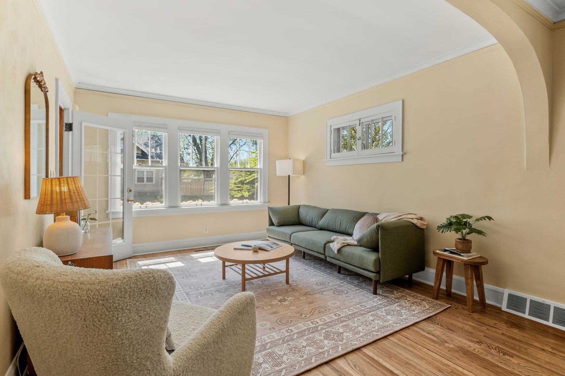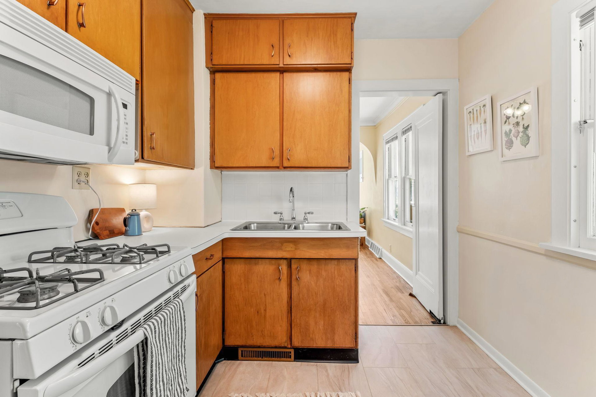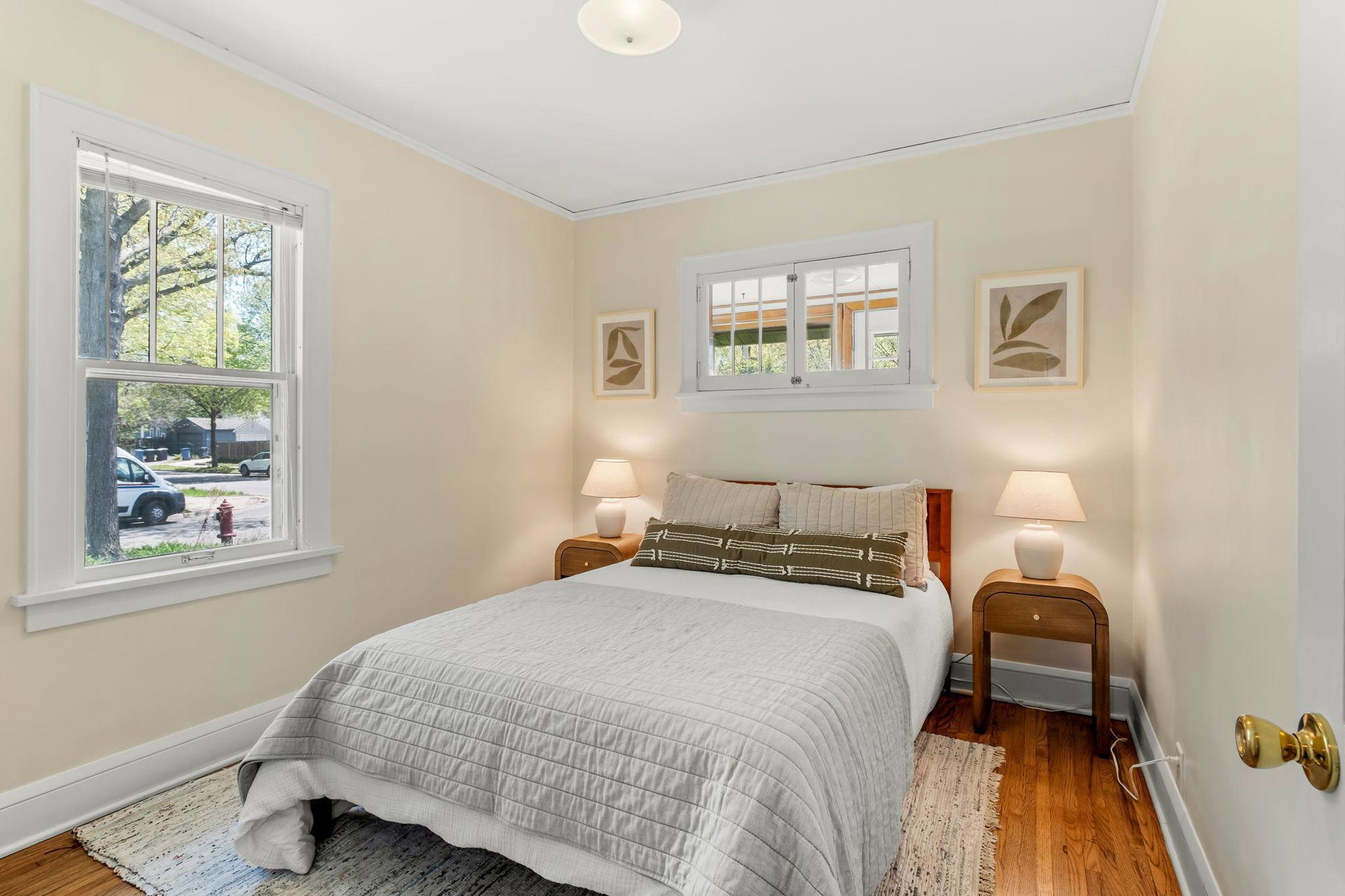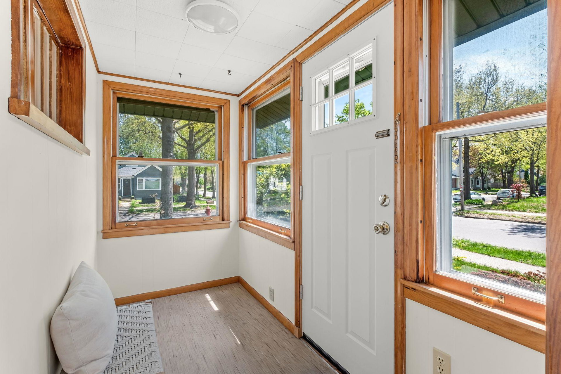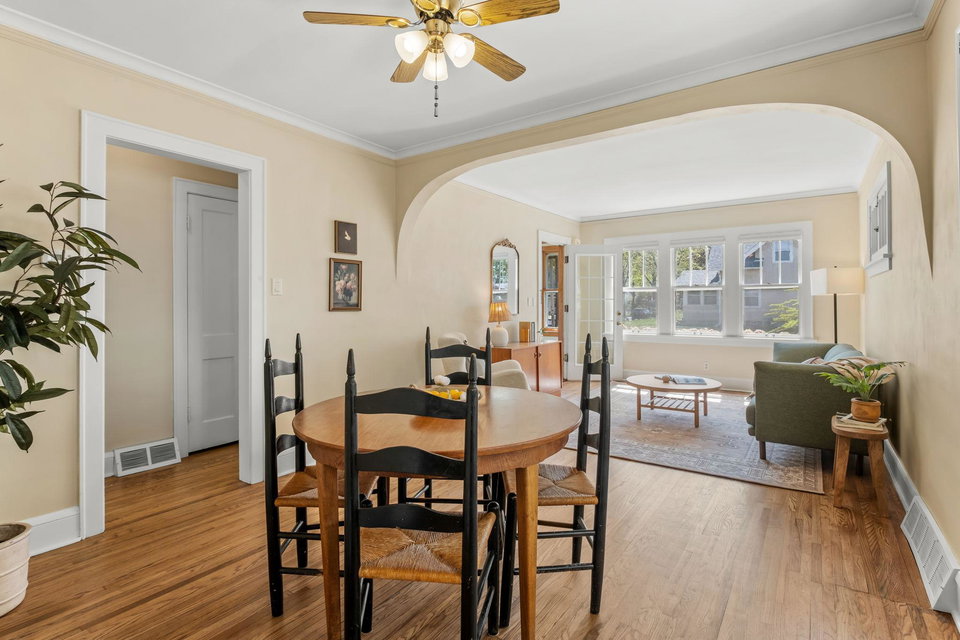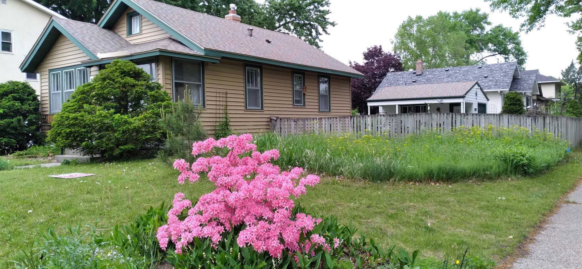Multiple Offers Received – Offer deadline Saturday 5/17 at 12pm. Welcome to this lovingly cared for 2-bedroom, 2-bath bungalow, ideally situated on a spacious corner lot in the desirable Howe neighborhood. This home hosts timeless Craftsman characteristics on the main floor in the living room, dining room, bedrooms and bath such as hardwood floors, original open swing casement windows and porcelain tub. The kitchen features red oak cabinets and brand new flooring, with easy access to your backyard oasis. The lower level has a finished family room or office space and a 3/4 bath. Enjoy your oversized corner lot that includes plentiful perennials such as azaleas and sedum, a large backyard and a covered patio attached the one-car garage, rebuilt in 2012. Roof and siding were replaced in 2023, chimney rebuilt in 2024, freshly painted throughout in 2025, this home feels crisp and move-in ready.