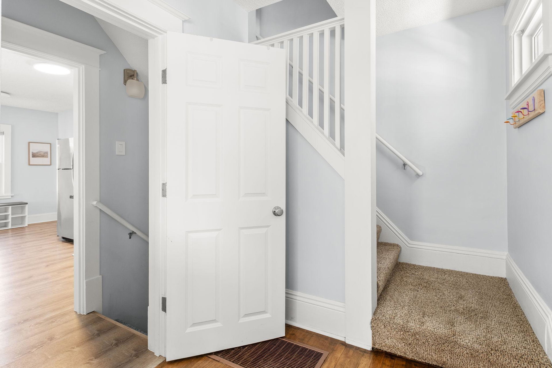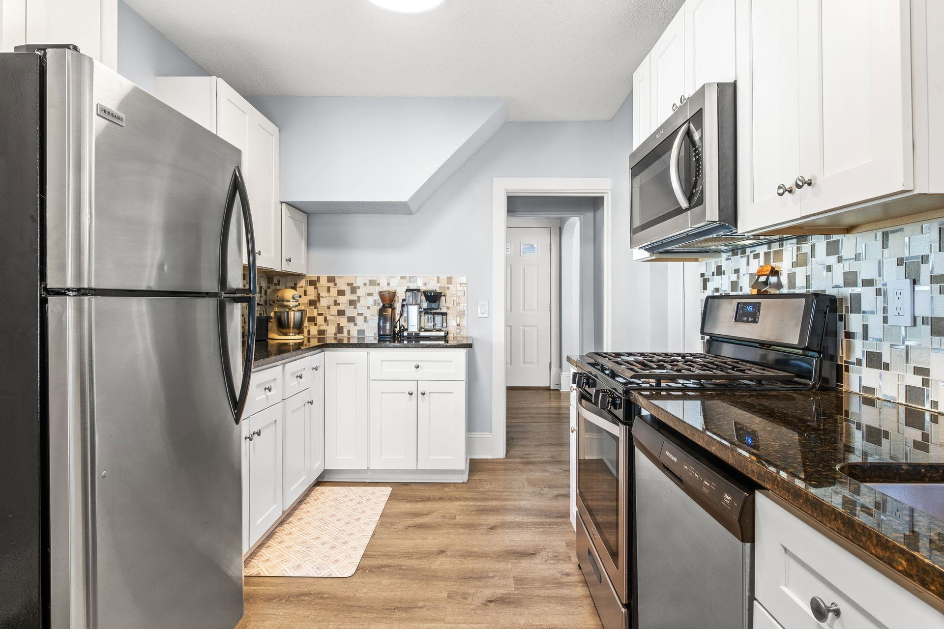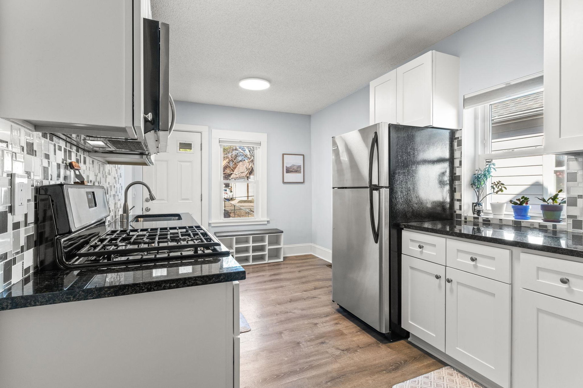 The efficient kitchen features stainless steel appliances and great flow, making it ideal for both daily use and entertaining. A rear porch works perfectly as a mudroom, providing a practical entry point. 3 bedrooms on one level and a bonus flexible area at the landing offers endless possibilities—whether as a cozy reading nook, home office, or additional living space.