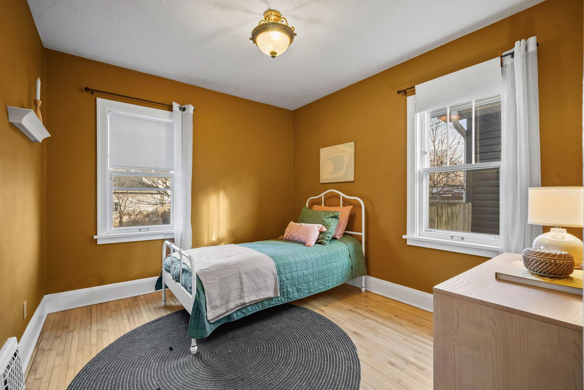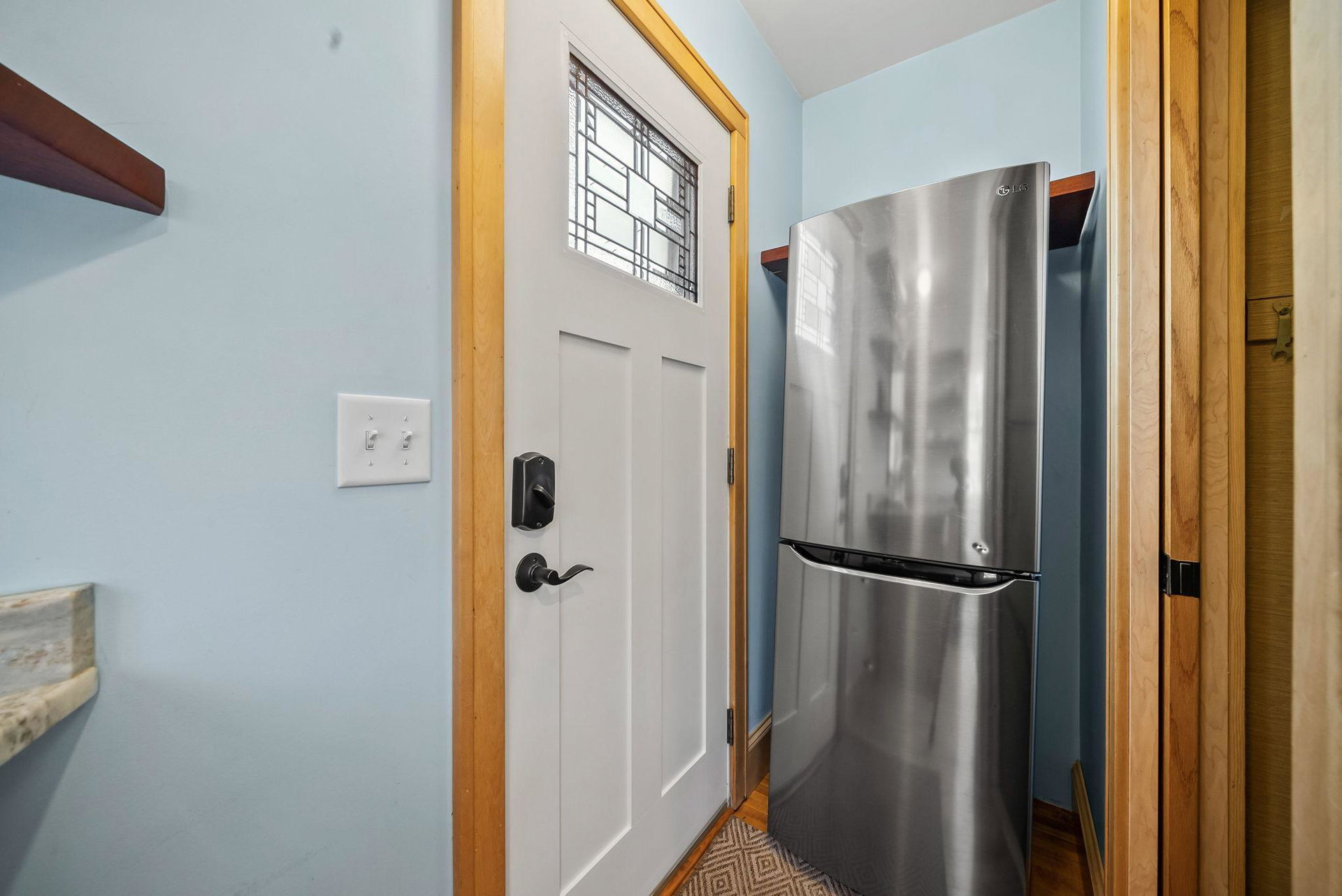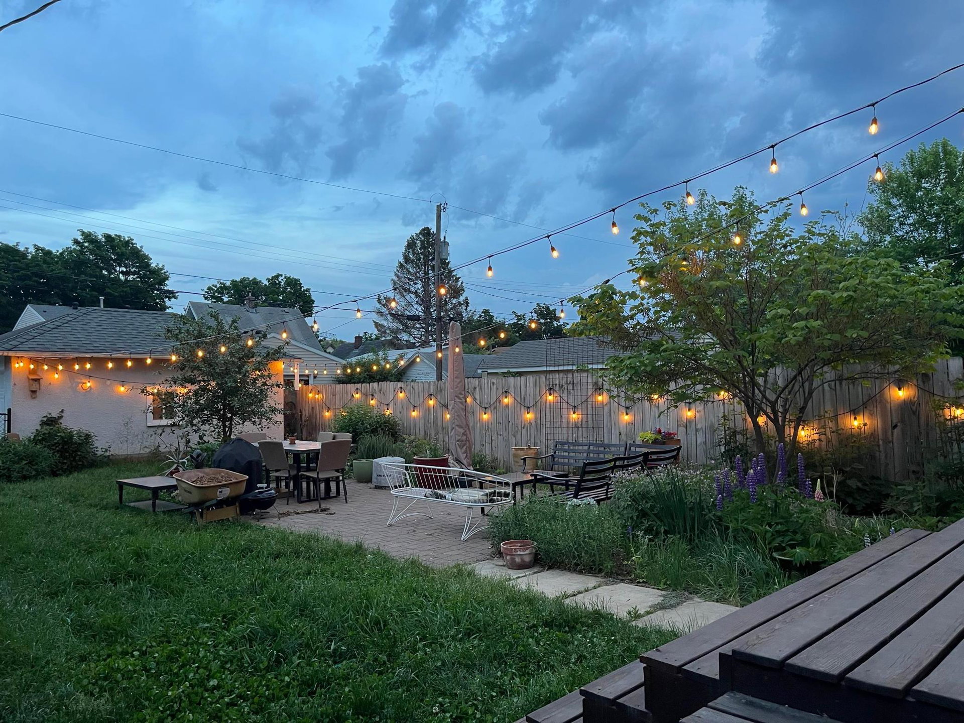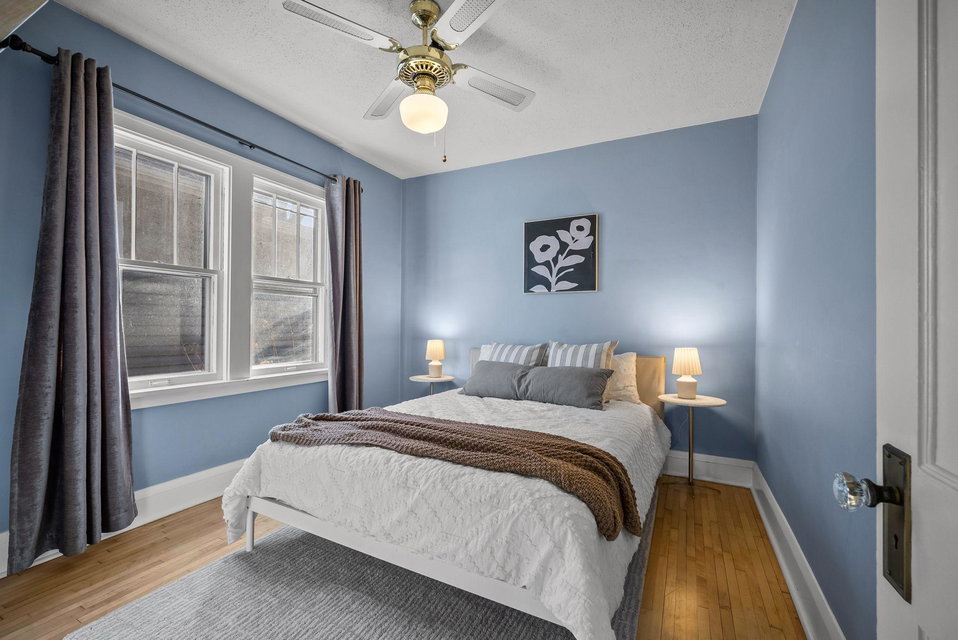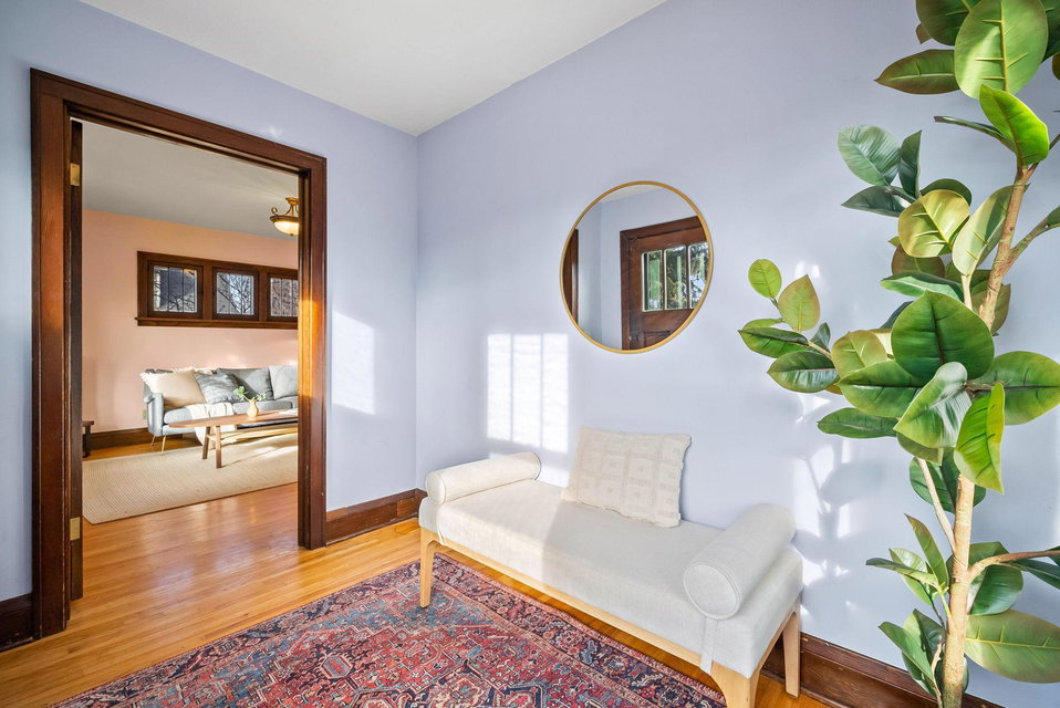 The open, sunny corner yard is a gardener’s delight: Enjoy dinner on the large brick patio amidst organic raised garden beds, native plant garden, a bee friendly lawn, and edible landscaping including a cherry tree and thornless raspberry, blackberry, and honeyberry bushes. In the spring, fragrance from the four flowering apple trees along the boulevard lingers in the air.