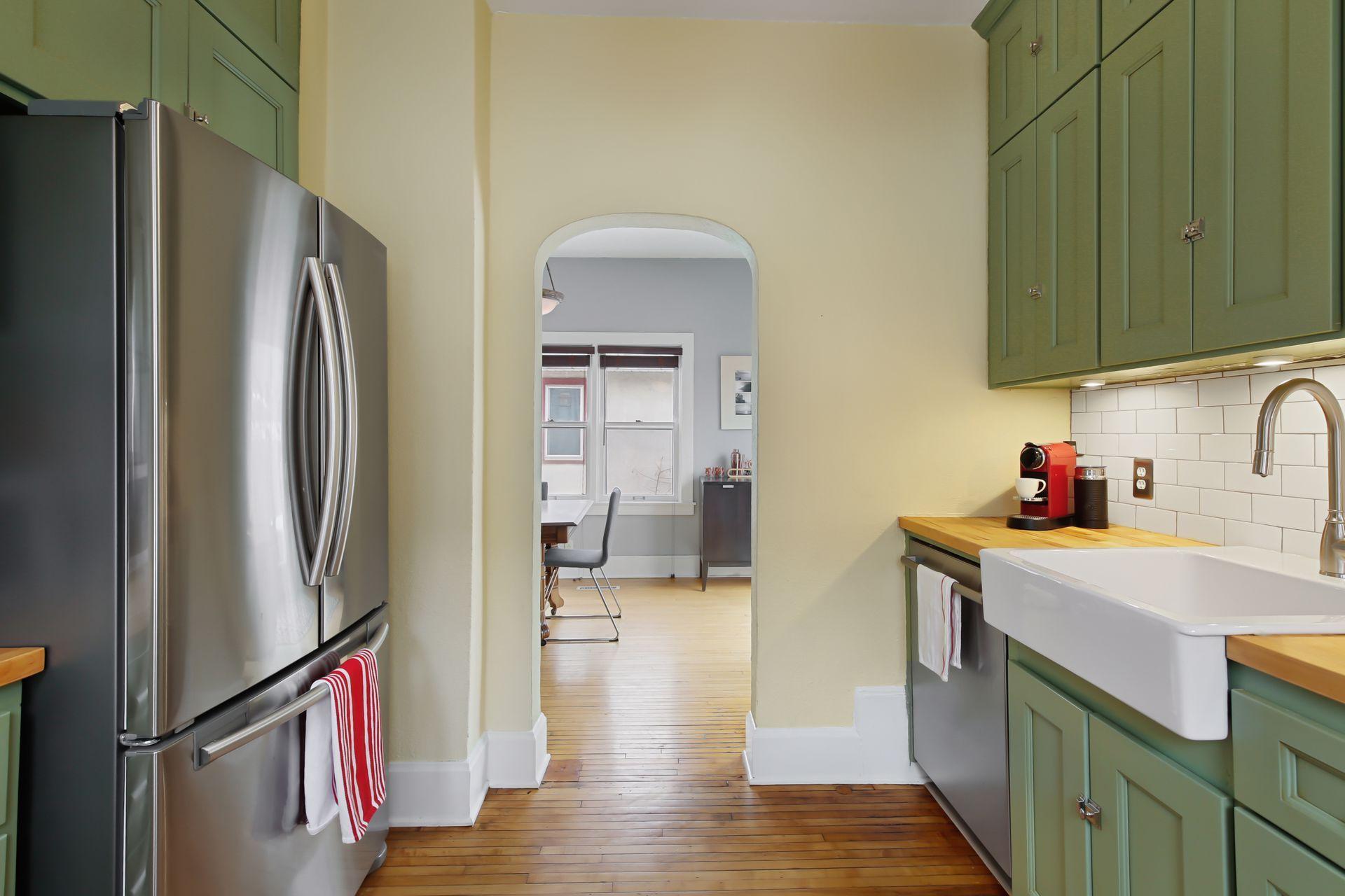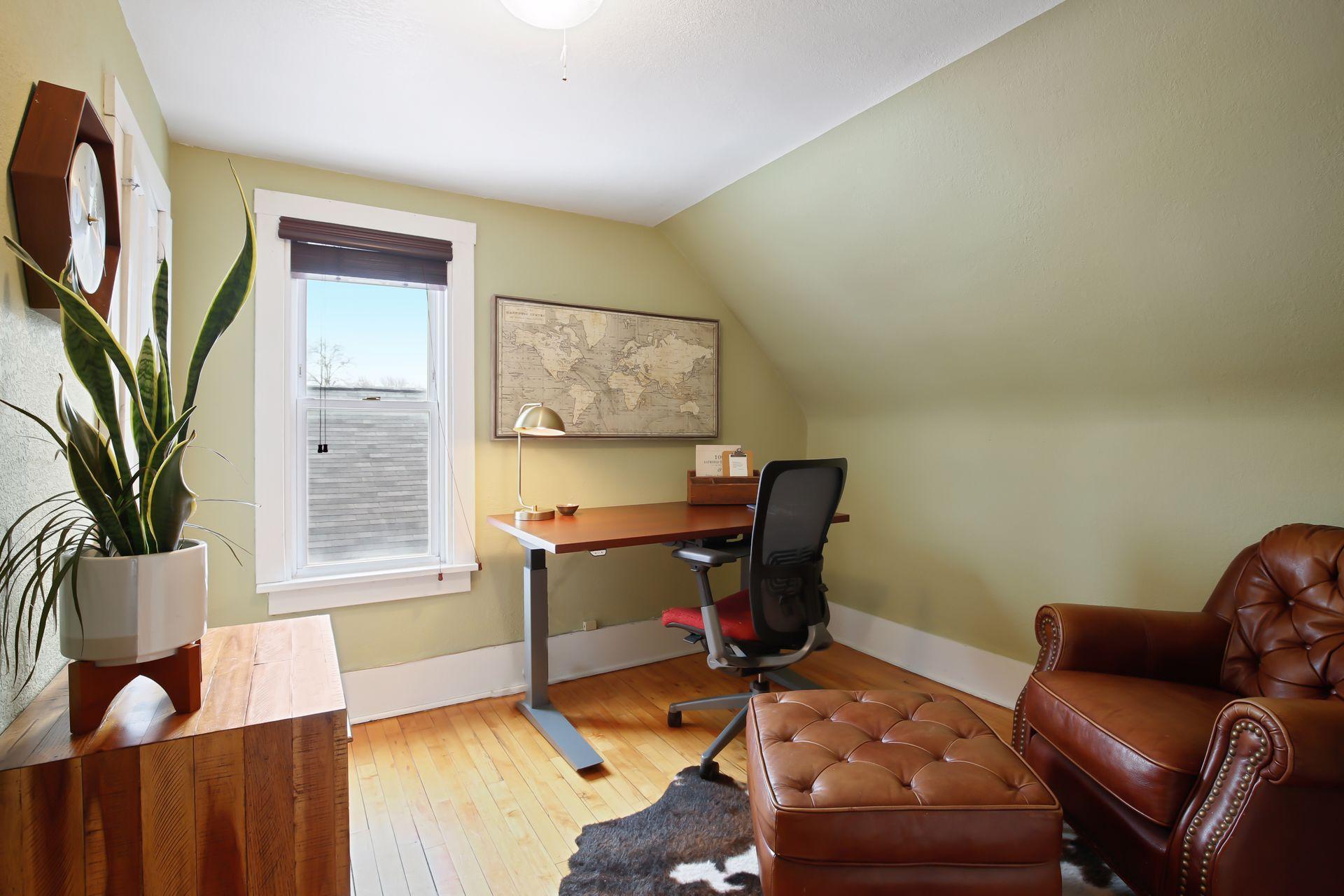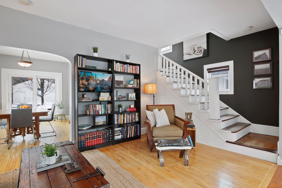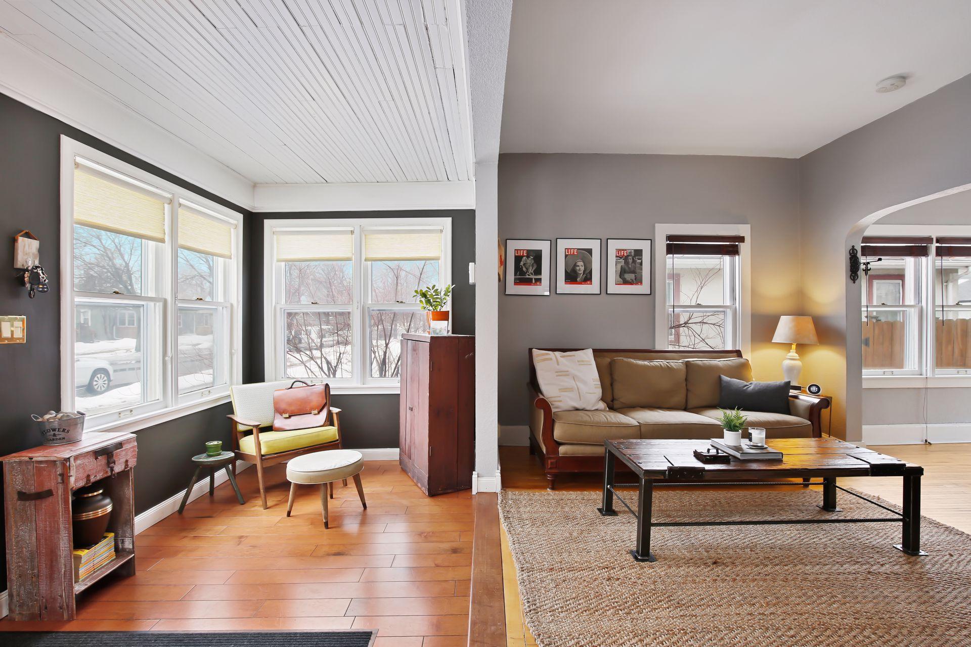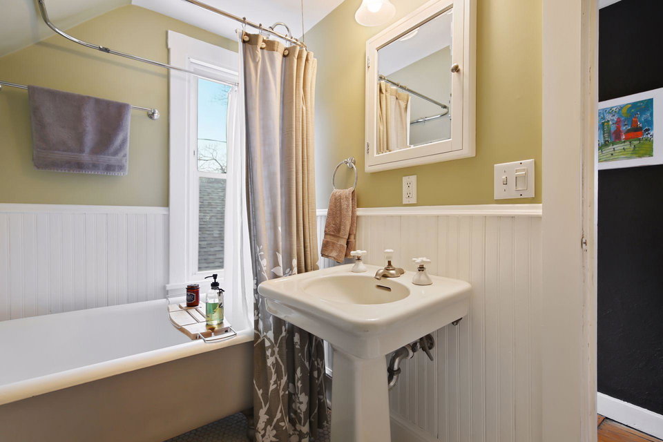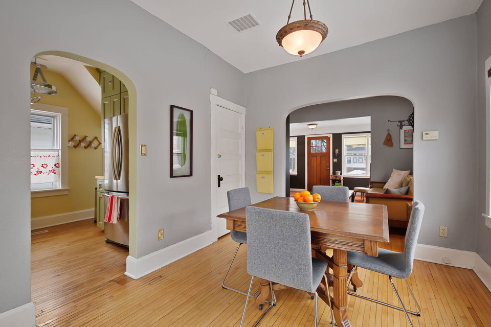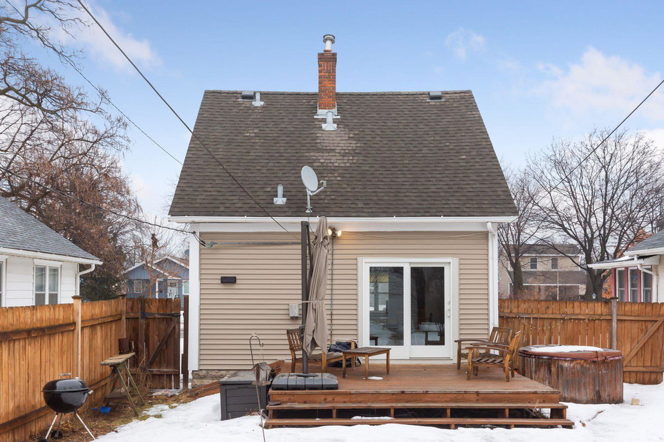 Charming features abound, including a bright & airy floor plan, open staircase, and beautifully updated kitchen; showcasing high-end appliances, butcher block counters, and Rejuvenation lighting. Two bedrooms upstairs with a fully renovated bathroom that remains true to its historical period, boasting antique clawfoot tub, porcelain pedestal sink, wainscoting & hexagonal tile. The (clean + dry) basement has been freshly painted, and with its convenient 1/4 bath & utility sink, is waiting for you to add a second bathroom. Step out of the dining room (through the brand-new sliding glass doors) and onto the spacious deck overlooking the deep, fully fenced yard. Large 2-car garage includes architect-drawn plans for creating your own income-producing accessory dwelling unit. Don’t miss a great opportunity to enjoy close proximity to all this desirable neighborhood has to offer, in addition to being just 3 blocks off of the Metro Blue Line. Welcome to your new home!
