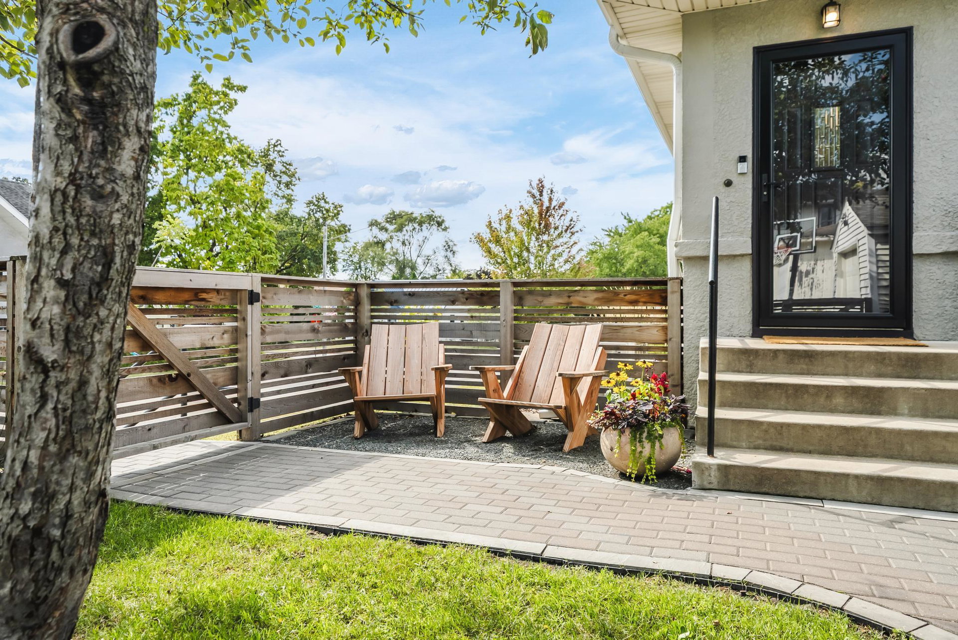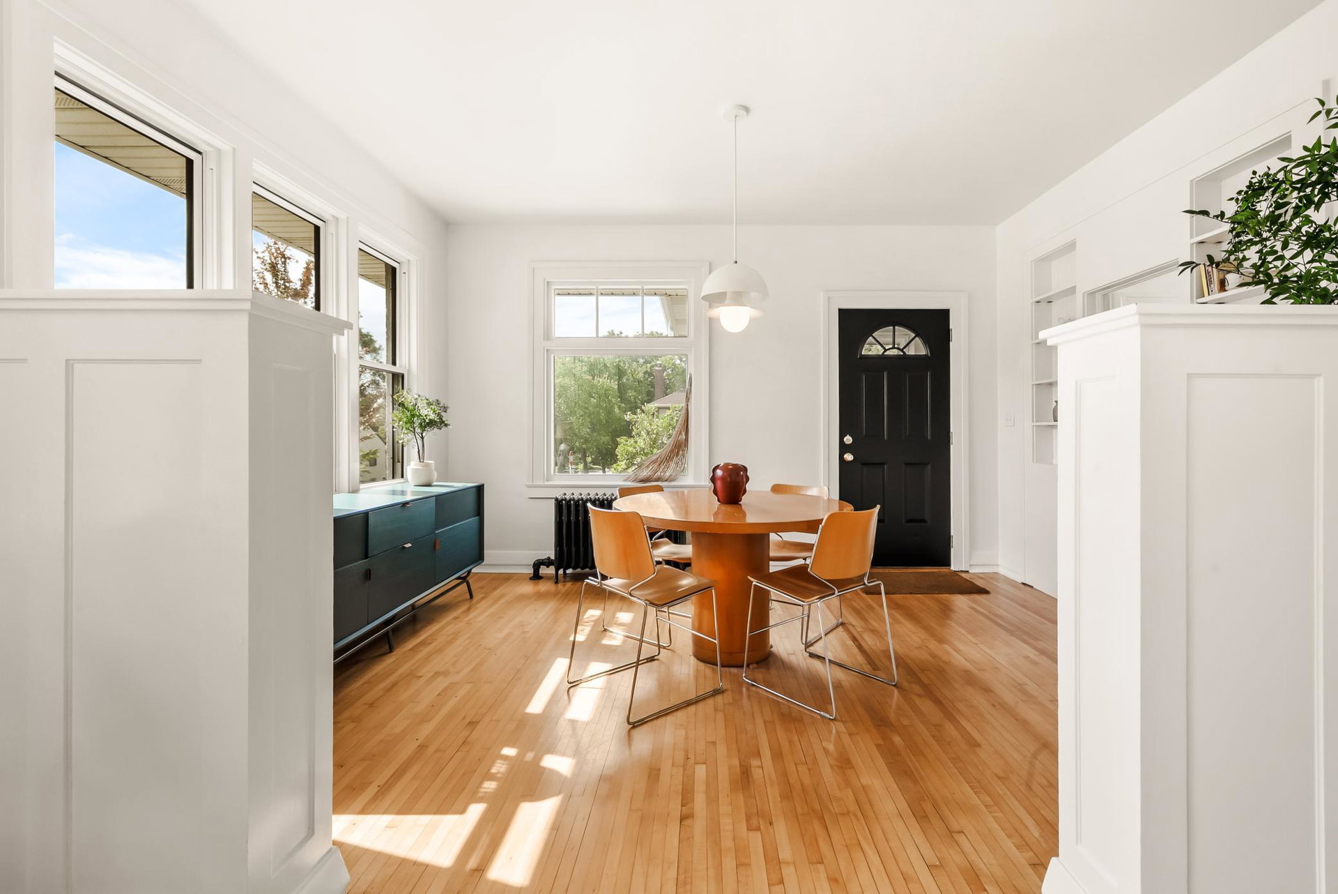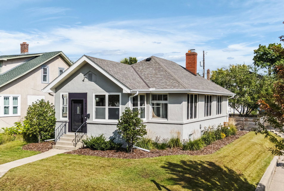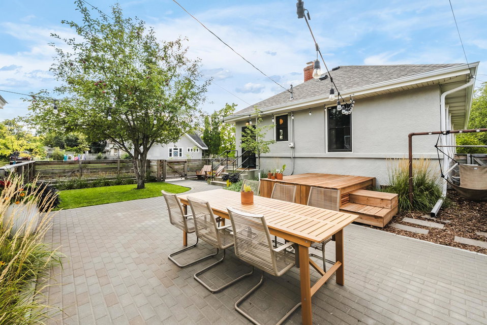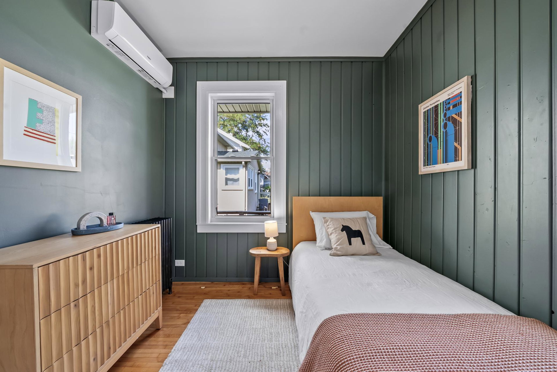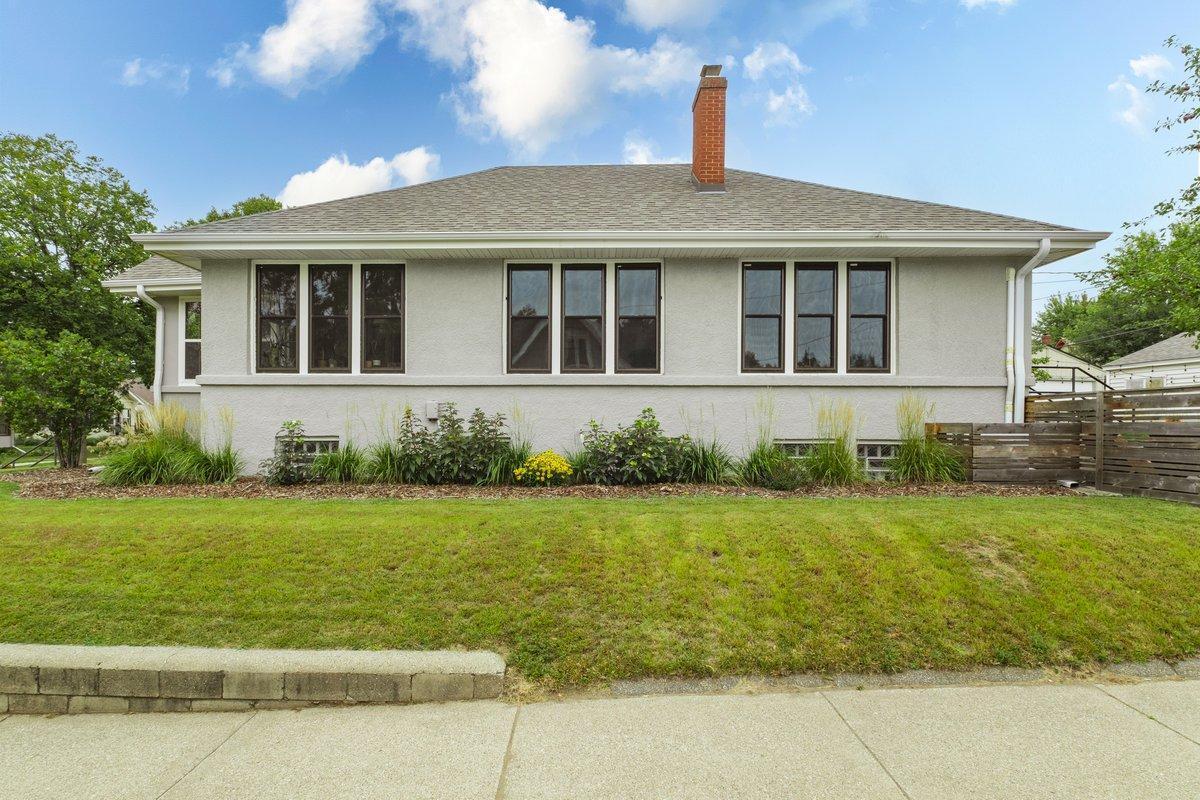 Perched proudly on a corner lot, this thoughtfully updated 3 bedroom one-story craftsman rambler is stylish and unique. The living room, dining room, and kitchen are an open and inspiring layout, bathed in natural light through large south-facing windows. You will find a beautiful balance of classic character and contemporary updates including exposed brick, sleek detailed radiators, gleaming wood floors, built-in bookcases, deco baseboards, simple but sculptural light fixtures, custom red oak cabinetry, blue-toned counters and backsplash, and a warm butcher block island anchoring the kitchen. All three bedrooms are situated along the north side of the home, offering cozy retreats. The two rear bedrooms are centered around a beautifully updated full bath with a deep clawfoot tub and porcelain sink, and wood paneled walls grounding the space. Step downstairs to a fun and unexpected surprise, a large finished family room with tall ceilings and a custom built, solid wood, queen-sized lofted bed that makes the space extra special and functional for guests, reading, or forts! There is plenty of space for kids to romp around or for all to lounge or work AND this space is also soaked in natural light all day long. With radiant heat and four mini split units, you will be comfortable all year long. Enjoy sunny or rainy nights on the cozy and private front porch or entertain in your backyard. The backyard may be modest in size, but it makes a big impression. Designed for maximum enjoyment and completely fenced in with a cedar fence, the space features a beautifully landscaped brick patio perfect for dining or lounging, a raised deck ideal for soaking up the sun, a vibrant collection of mature perennials that bring color and life throughout the seasons and a joyful fruit bearing apple tree offering some shade. Watch in awe, all spring and summer, the dinner plate hibiscus flowering in the south facing garden framed by more perennial grasses and flowers. Drive right in to your well appointed 1 car garage. This house and neighborhood have GREAT energy! Located one block from the bicycle boulevard, in the Barton/Justice Page/Washburn community schools zone. Come see this lovingly cared for and low maintenance delight in South Minneapolis!