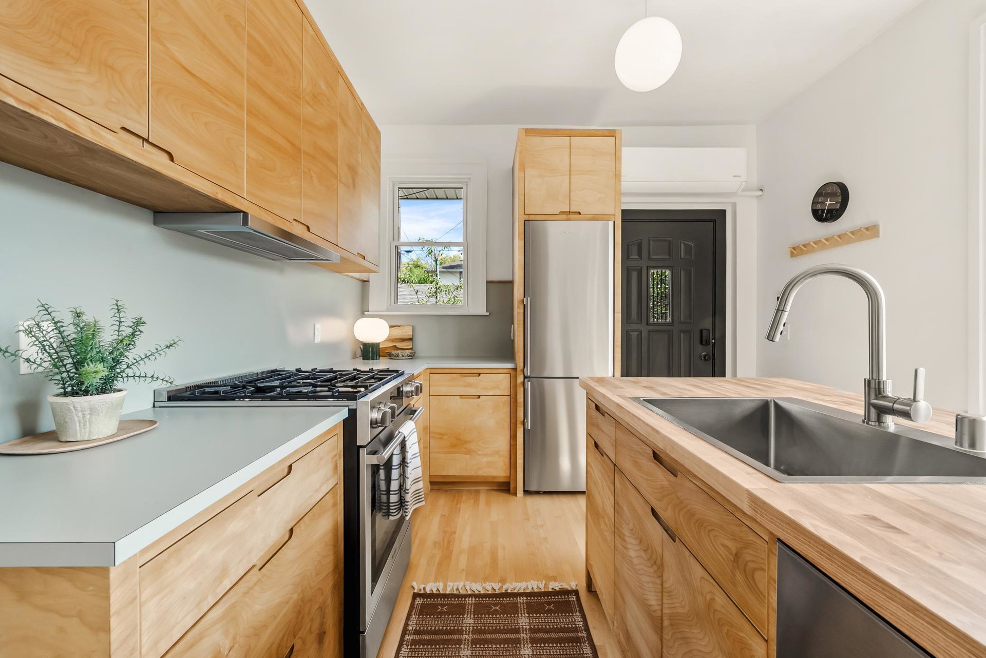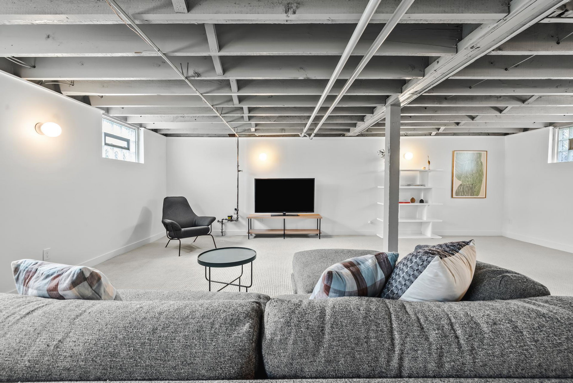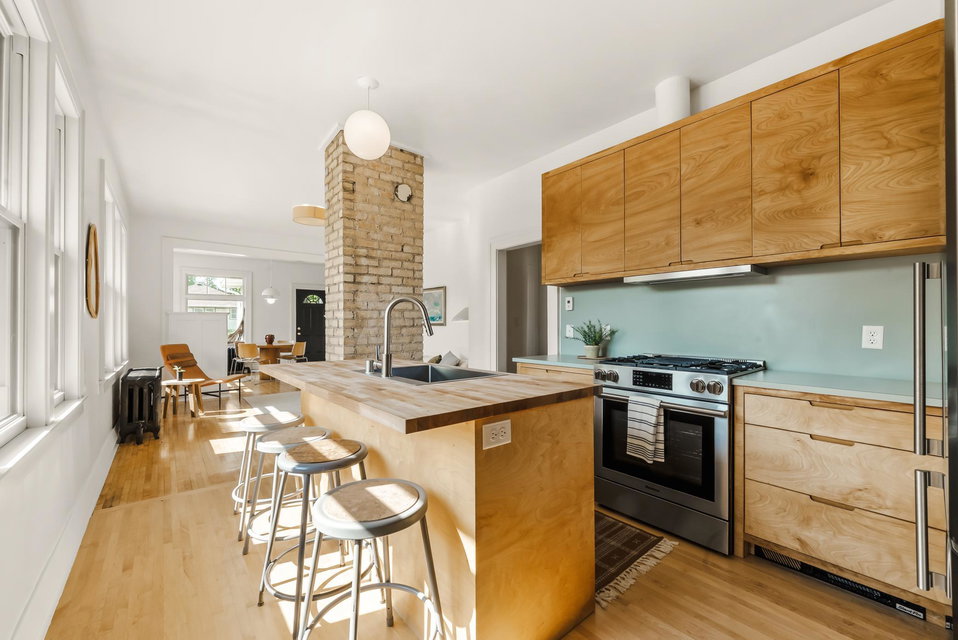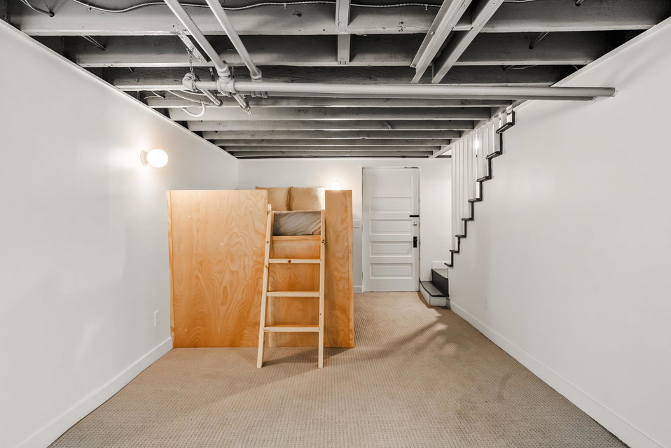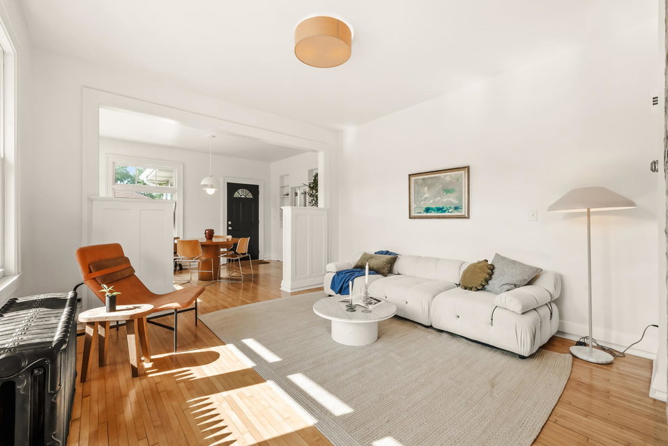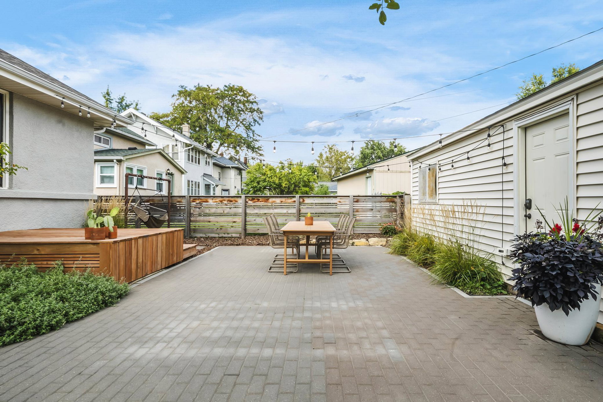 Perched proudly on a corner lot, this thoughtfully updated 3 bedroom one-story craftsman rambler is stylish and unique. The living room, dining room, and kitchen are an open and inspiring layout, bathed in natural light through large south-facing windows. You will find a beautiful balance of classic character and contemporary updates including exposed brick, sleek detailed radiators, gleaming wood floors, built-in bookcases, deco baseboards, simple but sculptural light fixtures, custom red oak cabinetry, blue-toned counters and backsplash, and a warm butcher block island anchoring the kitchen. All three bedrooms are situated along the north side of the home, offering cozy retreats. The two rear bedrooms are centered around a beautifully updated full bath with a deep clawfoot tub and porcelain sink, and wood paneled walls grounding the space. Step downstairs to a fun and unexpected surprise, a large finished family room with tall ceilings and a custom built, solid wood, queen-sized lofted bed that makes the space extra special and functional for guests, reading, or forts! There is plenty of space for kids to romp around or for all to lounge or work AND this space is also soaked in natural light all day long. With radiant heat and four mini split units, you will be comfortable all year long. Enjoy sunny or rainy nights on the cozy and private front porch or entertain in your backyard. The backyard may be modest in size, but it makes a big impression. Designed for maximum enjoyment and completely fenced in with a cedar fence, the space features a beautifully landscaped brick patio perfect for dining or lounging, a raised deck ideal for soaking up the sun, a vibrant collection of mature perennials that bring color and life throughout the seasons and a joyful fruit bearing apple tree offering some shade. Watch in awe, all spring and summer, the dinner plate hibiscus flowering in the south facing garden framed by more perennial grasses and flowers. Drive right in to your well appointed 1 car garage. This house and neighborhood have GREAT energy! Located one block from the bicycle boulevard, in the Barton/Justice Page/Washburn community schools zone. Come see this lovingly cared for and low maintenance delight in South Minneapolis!
