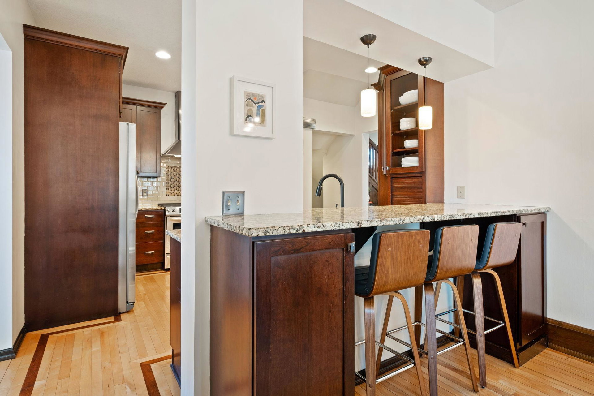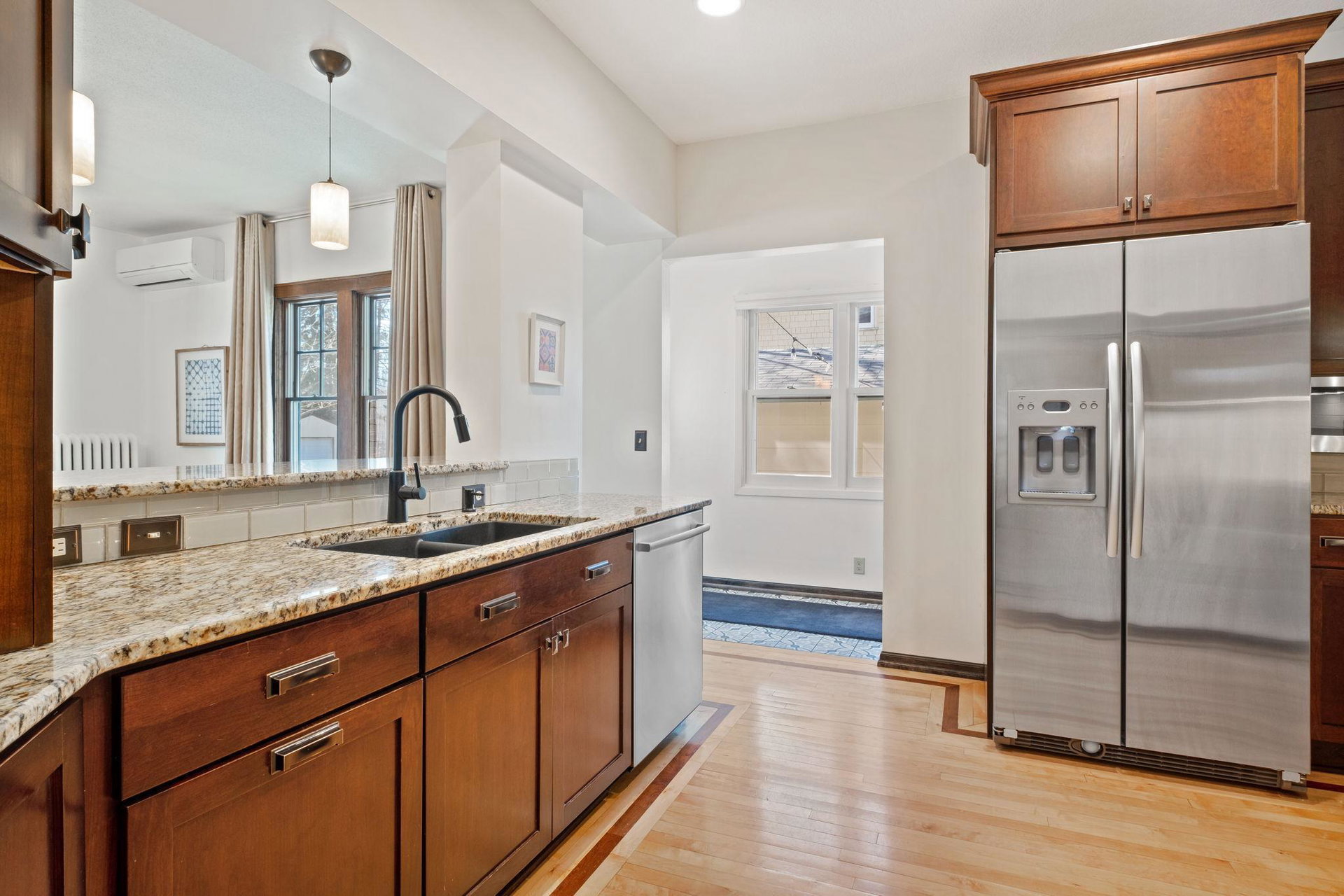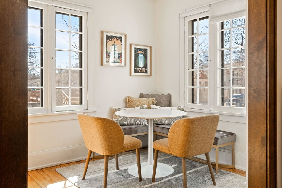 This stately 2.5 story craftsman home, in East Harriet, with its south facing sunroom featuring in-swing casement windows shining light romantically, awaits its next owners. A spacious kitchen + breakfast bar offer opportunity to entertain inside + transition to the patio with ease. A stylish powder room completes the main floor. The second story offers 3 bedrooms + a full bath with in-floor heat. The primary bedroom includes an attached room providing an option for an office/nursery. The 3rd level is an exciting bonus space for play or office. In the lower level, you will find a family room, wet bar with a wine cooler + mini fridge, the fourth bedroom, a 3/4 bathroom + the laundry room. This home has the best in mechanicals to keep comfortable with radiators as well as ductless mini splits that provide both heating + cooling. Beautiful woodwork + wood floors throughout. Enjoy this EXTREMELY desirable location near Lake Harriet, Alma Provisions, Khaluna, Guse Hardware, Brasa + more!