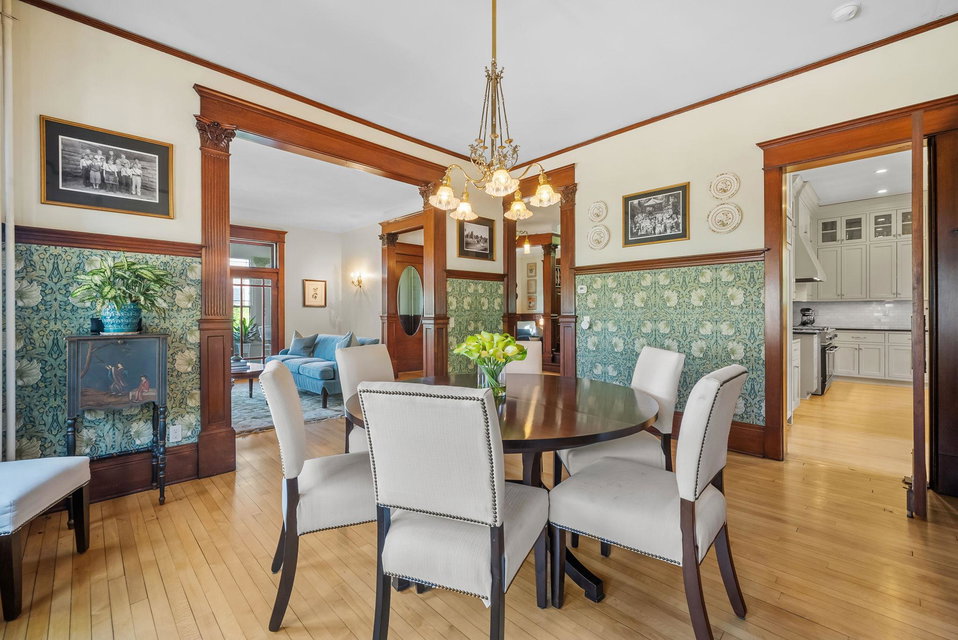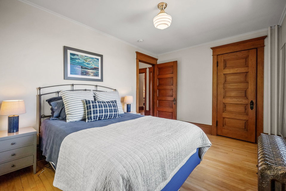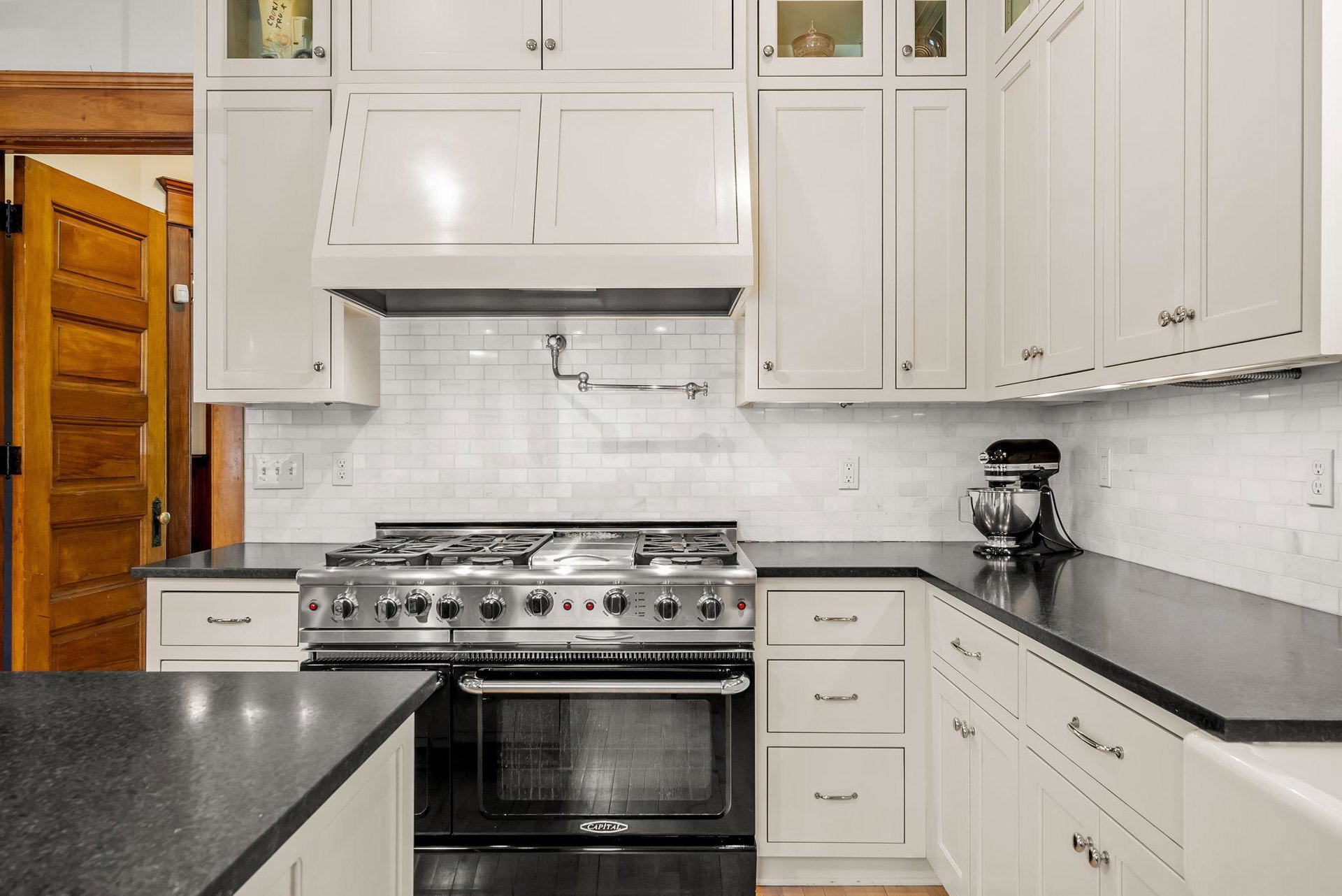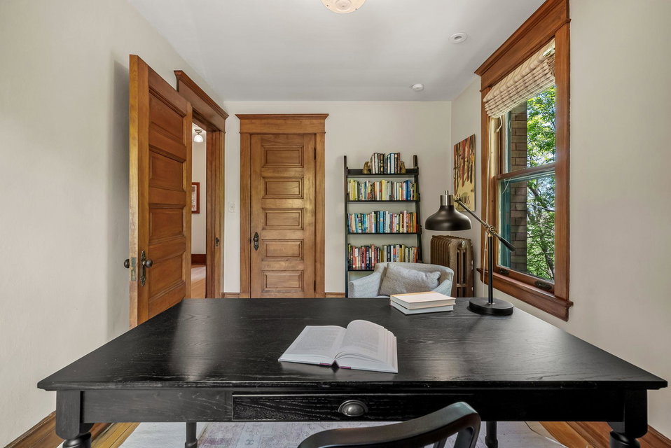 Designed with flexible spaces and great flow, it’s perfect for work-from-home setups, hosting gatherings, or everyday living. The custom kitchen highlights the home’s impressive full masonry construction, with exposed brick as a striking focal point, complemented by honed granite countertops, high-end appliances, and bespoke cabinetry.