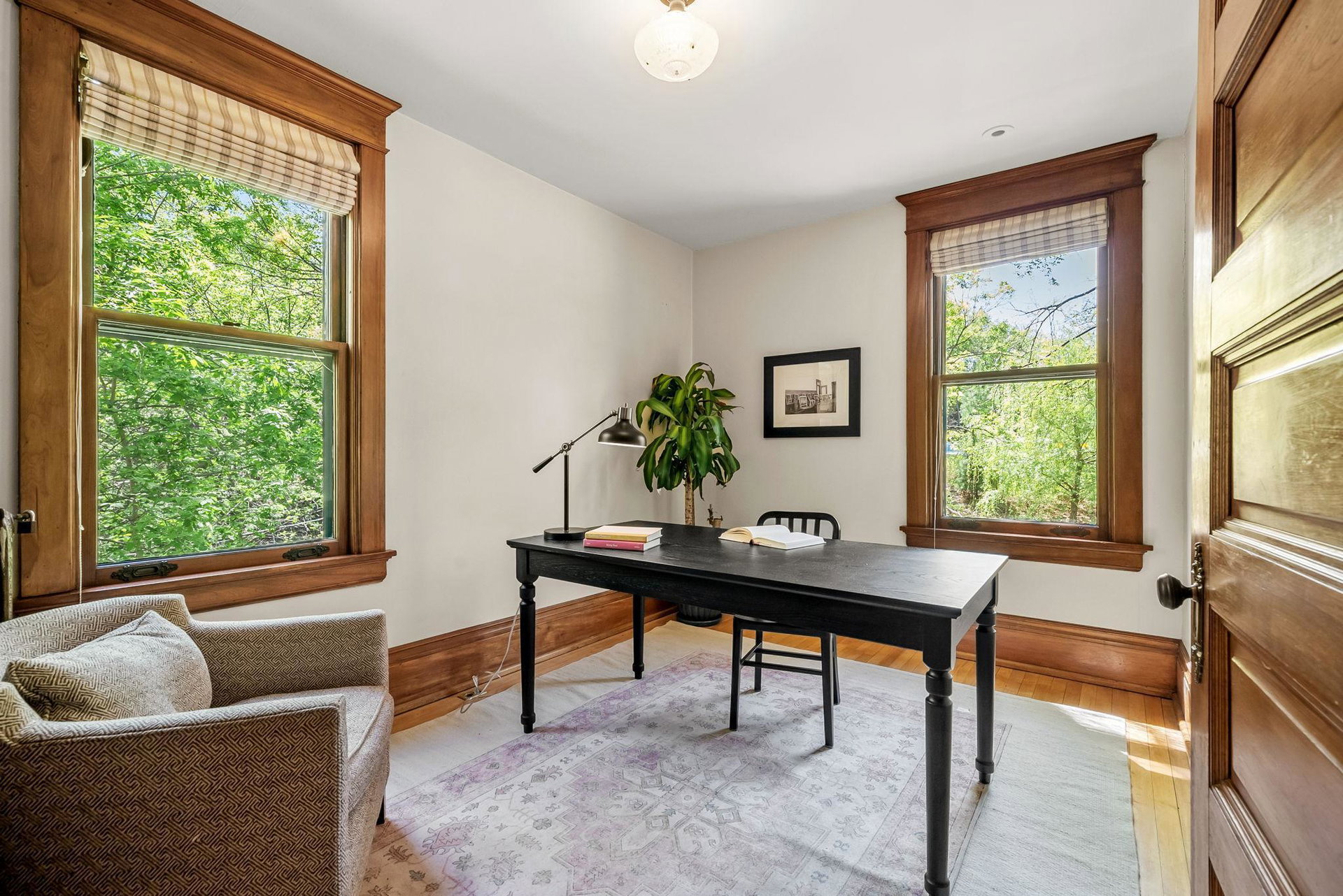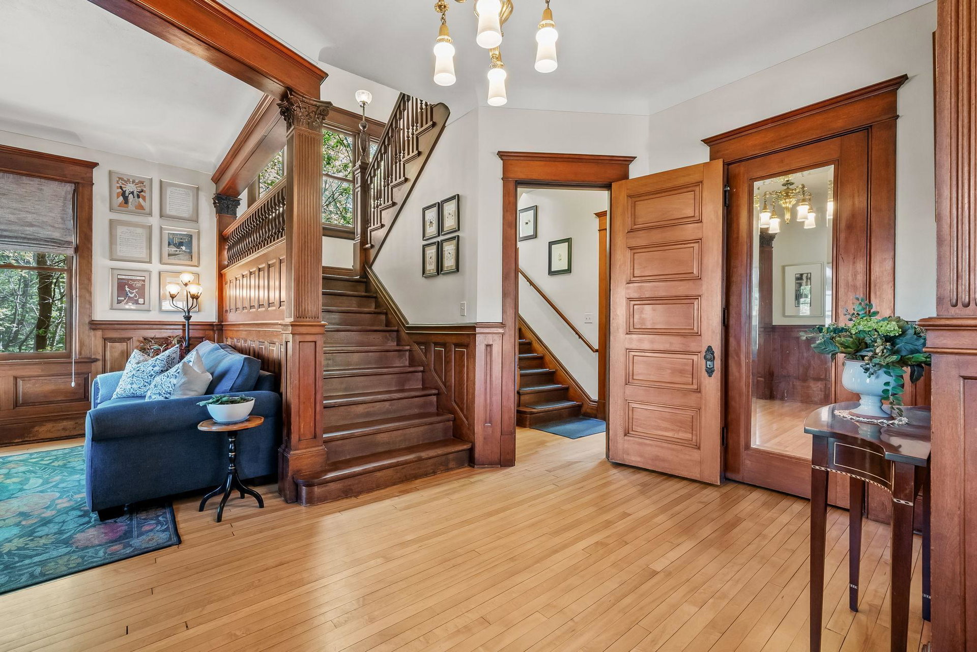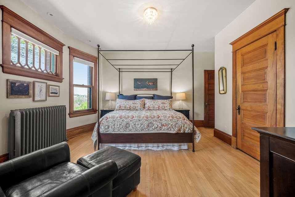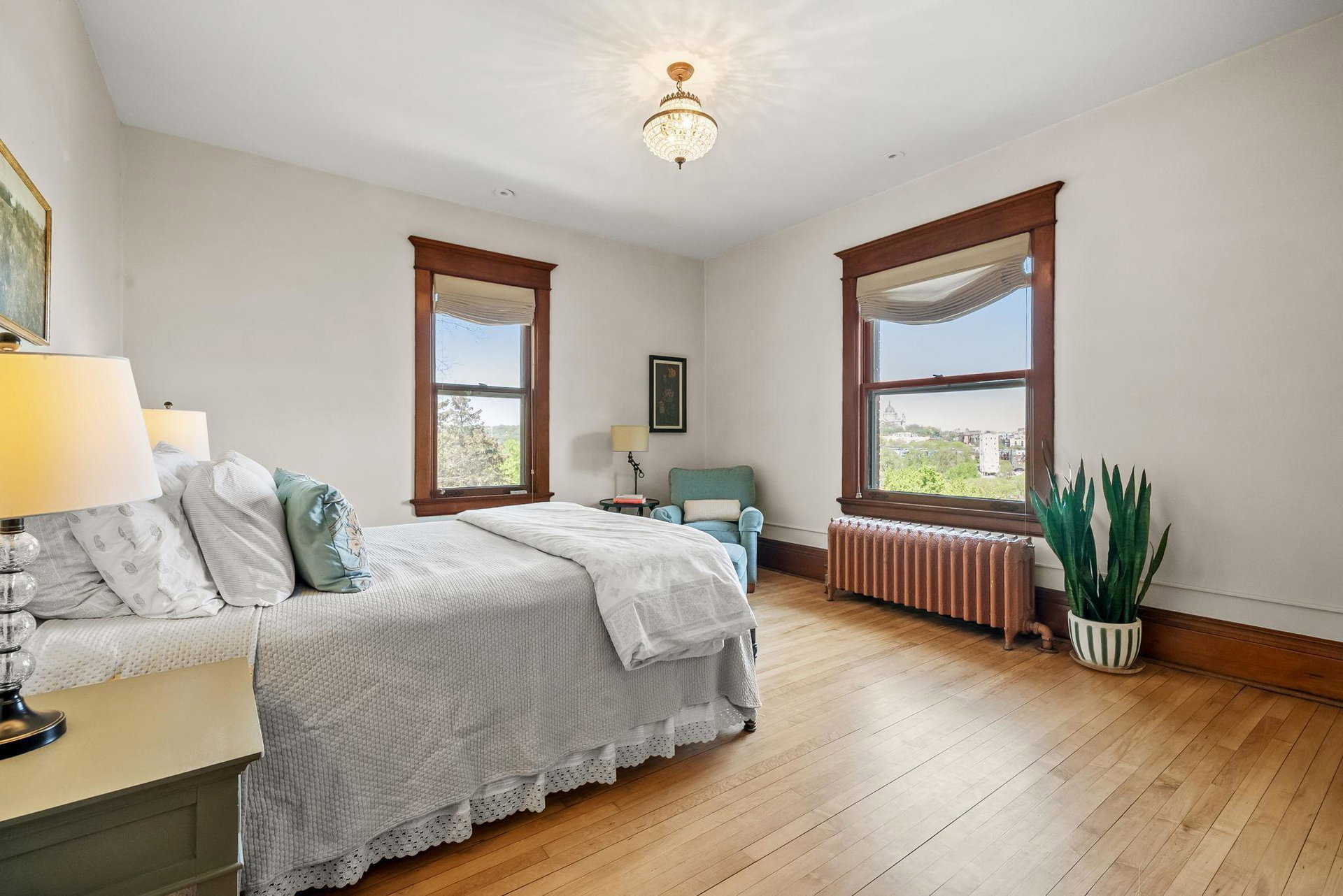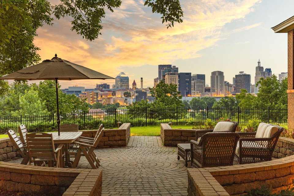 Perched high atop the bluff, this stunning American Foursquare-style brick manor offers sweeping views of the Mississippi River Valley, Downtown St. Paul, the Cathedral, and the Capitol. Set on an incredibly private, 1/2 acre+ lot with lush, professionally landscaped grounds, the home has been meticulously renovated to seamlessly blend historic charm with luxurious modern updates.