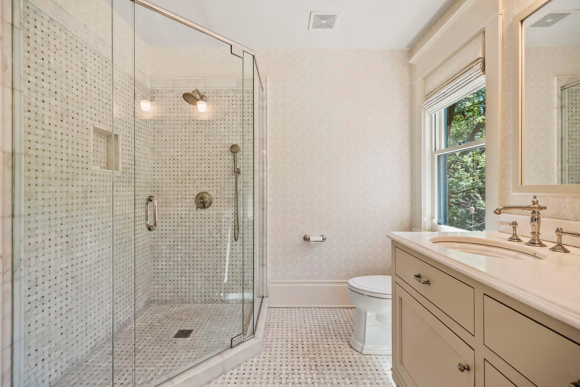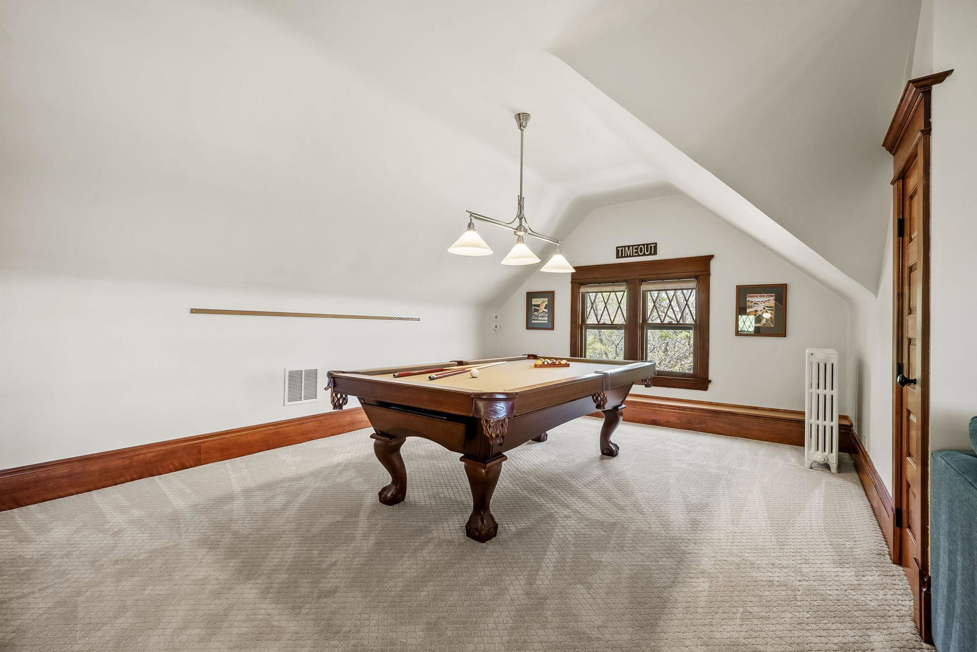 With 5 bedrooms and 5 bathrooms, the home features 4 bedrooms on the 2nd level and a guest suite on the 3rd floor. The spacious primary suite offers a walk-in closet and an ensuite bath with a microbubble massage tub and double marble vanity. The third-floor rec room, complete with a kitchenette, is ideal for entertaining or relaxing.