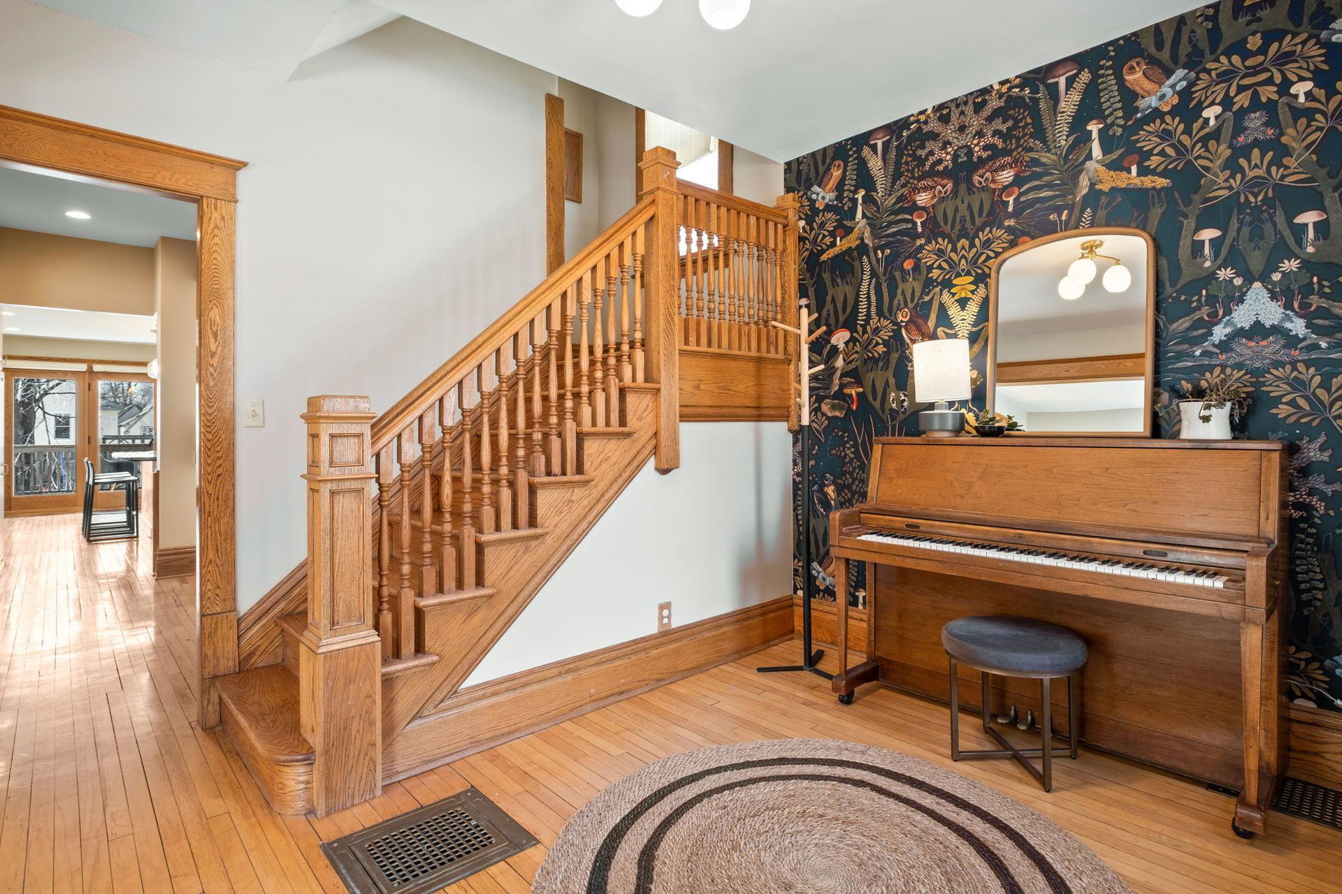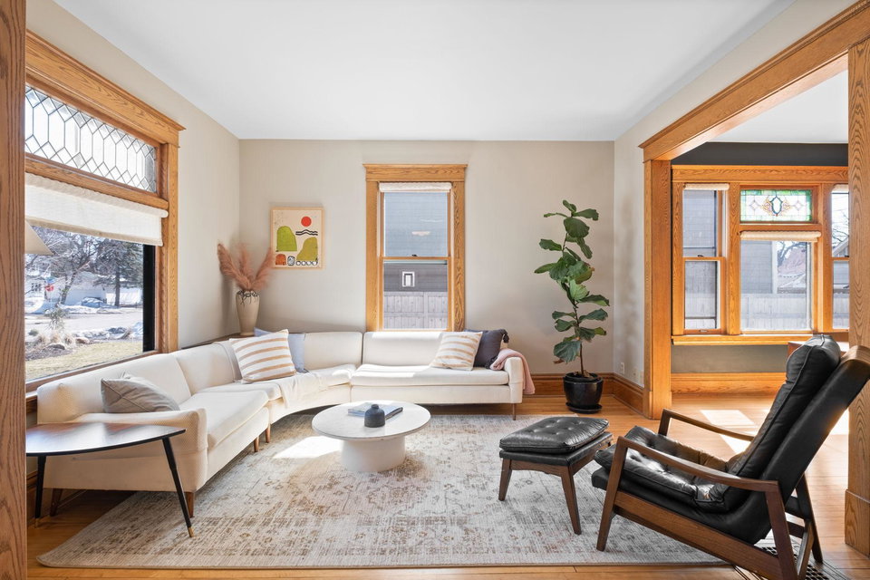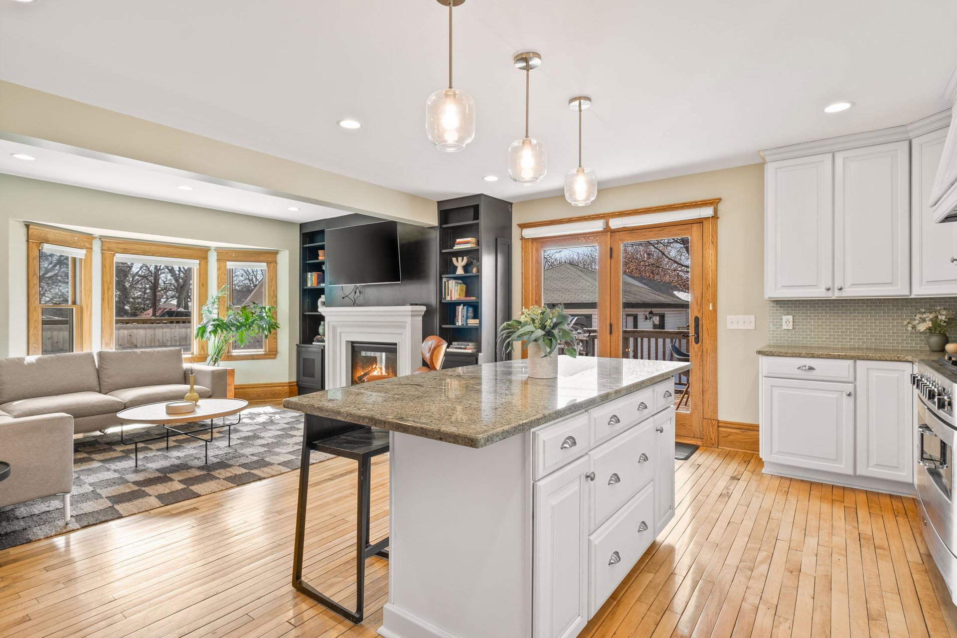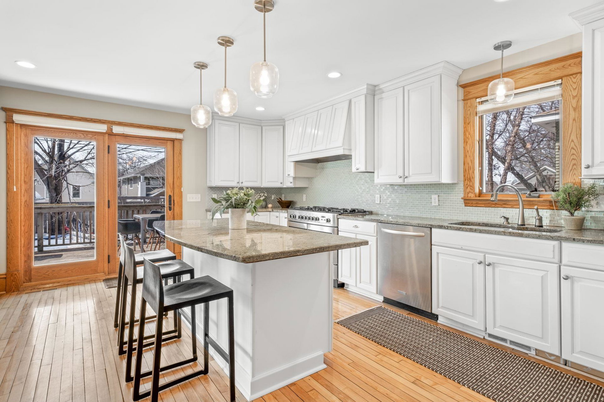 This large light-filled home located in highly desirable Linden Hills, with great access to the lakes, restaurants and shops, offers an amazing lifestyle! Move in ready, you will LOVE the handsome original woodwork & built-ins, leaded & stained glass windows, and custom modern finishes throughout. The main floor lives incredibly well, with its formal living & dining room, awesome updated eat-in kitchen with an open floor plan sparing space with a coveted informal family room! You will also find a generous foyer, powder room and butler’s pantry. The 2nd level contains 4 spacious bedrooms and a large full family bathroom. The private primary bedroom suite offers comfortable luxury with a fireplace, walk-in closets (with 2nd floor laundry hookups!) & a private bathroom with a walk-in shower & soaking tub, as well as a private western facing balcony, perfect for watching the sunsets. Additional flexible finished bonus space on the 3rd floor and in the basement. Hurry to see this one!