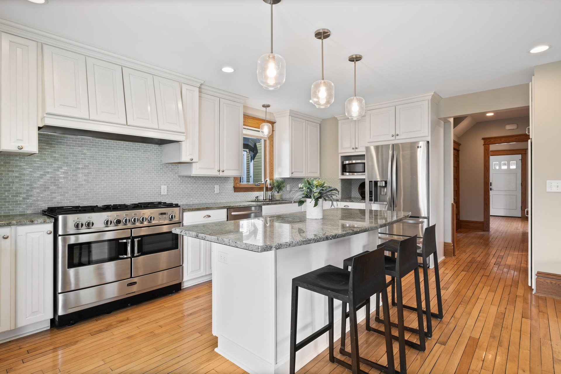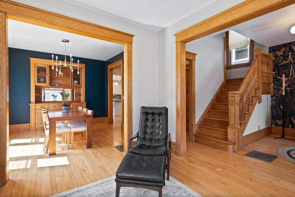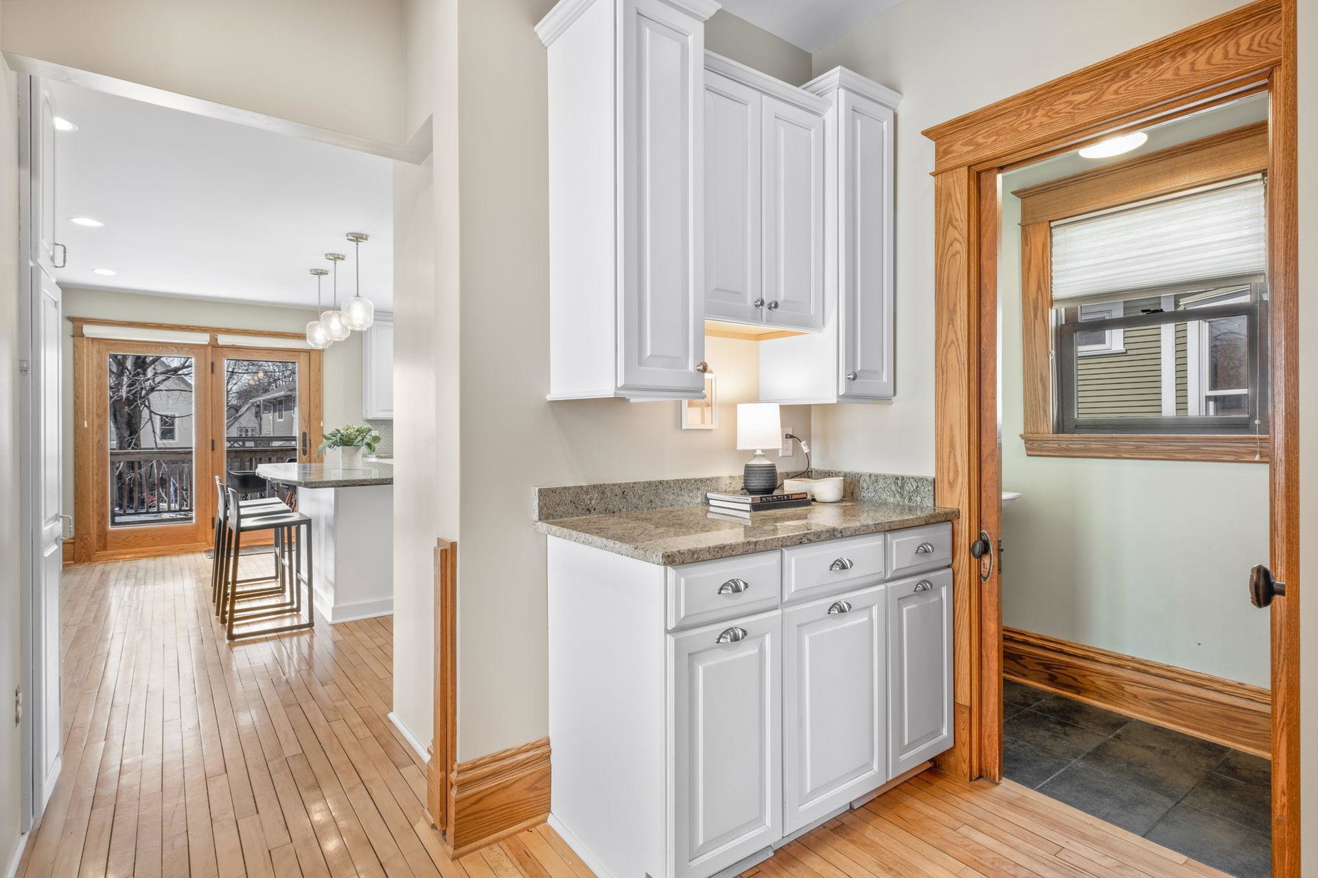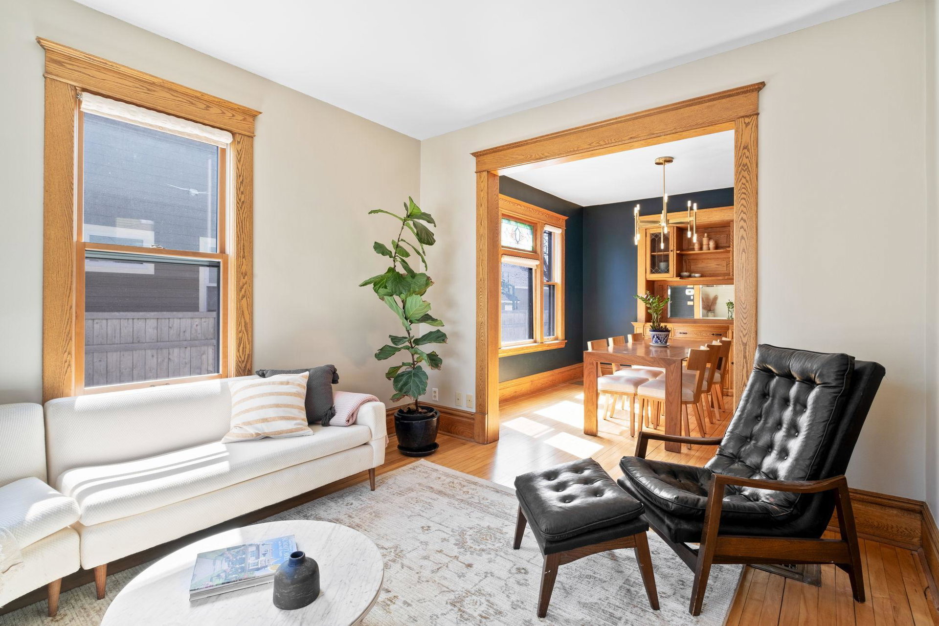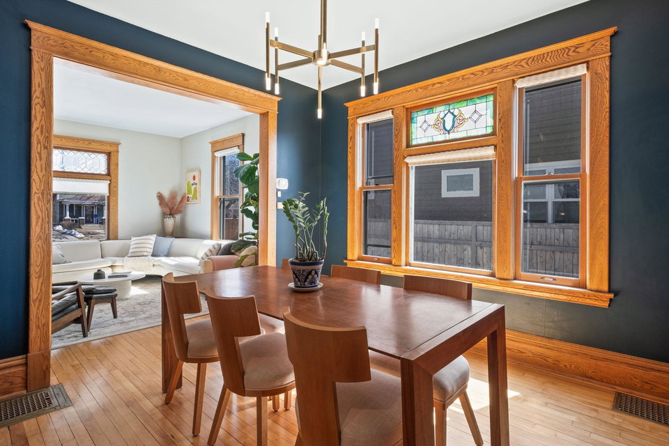 This large light-filled home located in highly desirable Linden Hills, with great access to the lakes, restaurants and shops, offers an amazing lifestyle! Move in ready, you will LOVE the handsome original woodwork & built-ins, leaded & stained glass windows, and custom modern finishes throughout. The main floor lives incredibly well, with its formal living & dining room, awesome updated eat-in kitchen with an open floor plan sparing space with a coveted informal family room! You will also find a generous foyer, powder room and butler’s pantry. The 2nd level contains 4 spacious bedrooms and a large full family bathroom. The private primary bedroom suite offers comfortable luxury with a fireplace, walk-in closets (with 2nd floor laundry hookups!) & a private bathroom with a walk-in shower & soaking tub, as well as a private western facing balcony, perfect for watching the sunsets. Additional flexible finished bonus space on the 3rd floor and in the basement. Hurry to see this one!