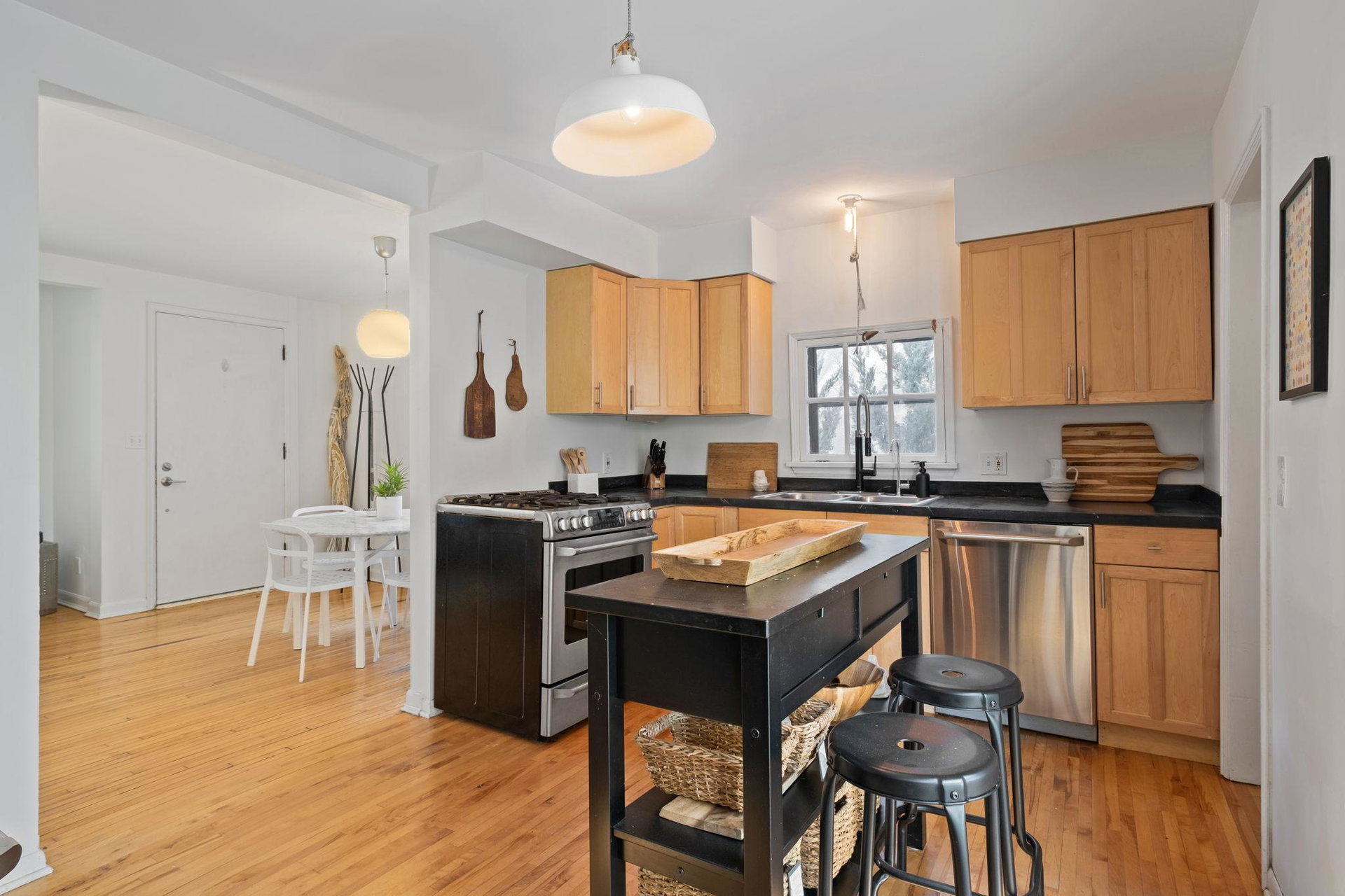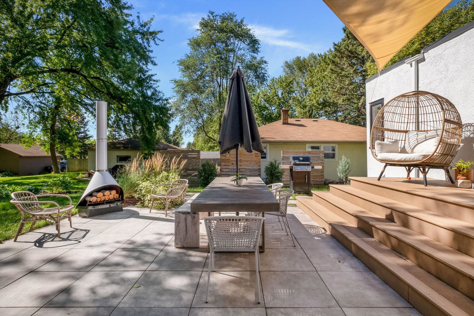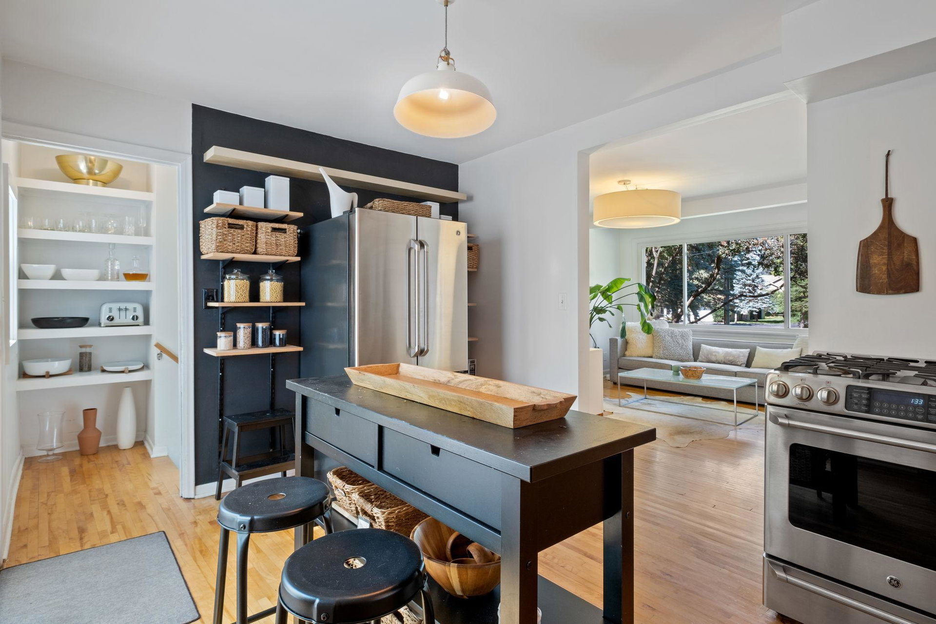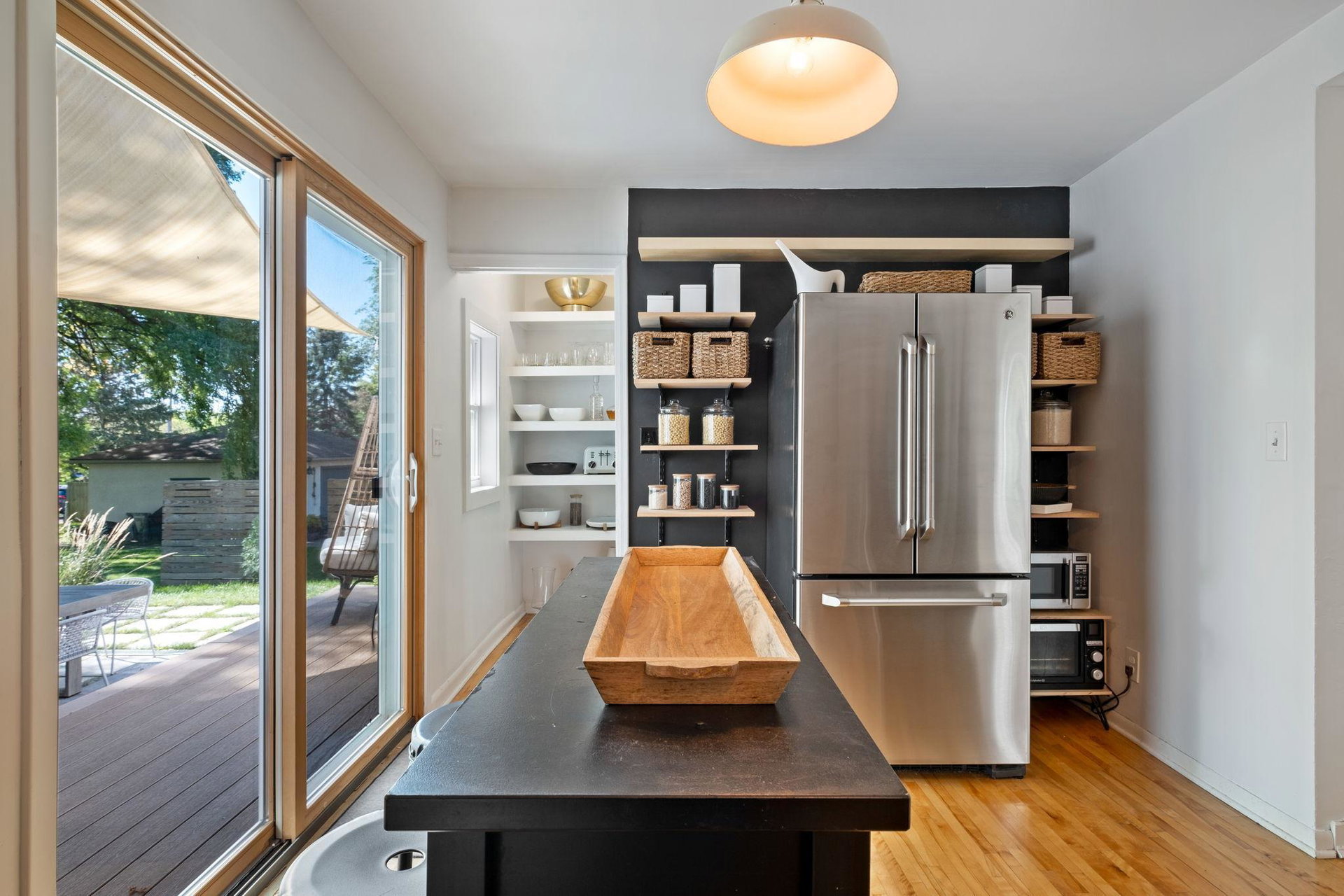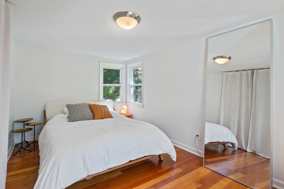 This rad midcentury modern home was designed and built by its original owners in 1952. Hardwood floors throughout with lots of natural light. 2 beds and a full bath on the main level. Primary bed and family room on the 2nd level. Basement features a modern 3/4 bath and a cozy tv room/office space. Backyard is your summertime patio dream!
