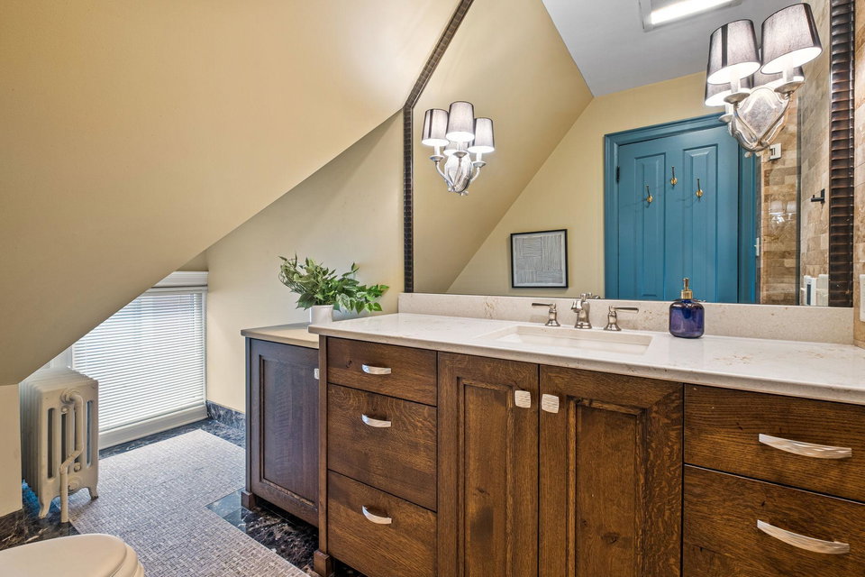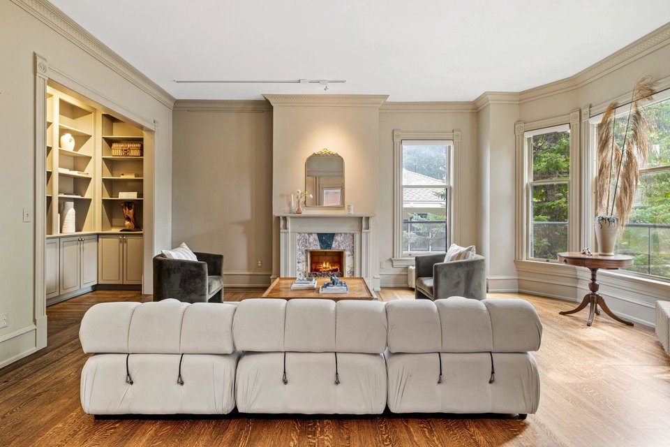 Greeted by a sophisticated gallery, this thoughtfully renovated home, featuring 10-foot ceilings, offers inspiring, light-filled spaces that flow gracefully from room to room. Enjoy living and entertaining in your wonderful open kitchen, ample dining room, formal living room, library alcove, laid back media lounge and breezy treetop balcony. With 4 bedrooms on the upper level, the spacious primary suite boasts an enviable walk-in closet, a cozy fireplace, and a luxurious private bathroom. Additional features include pristine quartersawn oak hardwood floors, exemplary millwork, delightful mature landscaping, ample storage, two heated garage spaces, and professionally updated mechanical systems. This home seamlessly blends historic charm with contemporary functionality.