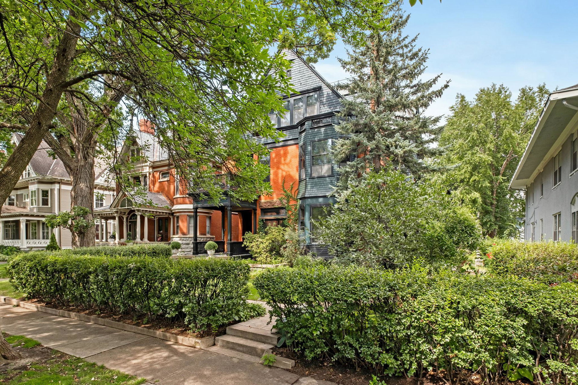 Historic Condo in the Heart of Ramsey Hill – Originally designed in 1882 by renowned architect Cass Gilbert, this exquisite converted mansion features an impressive pressed red brick facade in an eclectic Victorian style, enhanced by rich Romanesque stone details and dramatic Neo-Gothic gables.