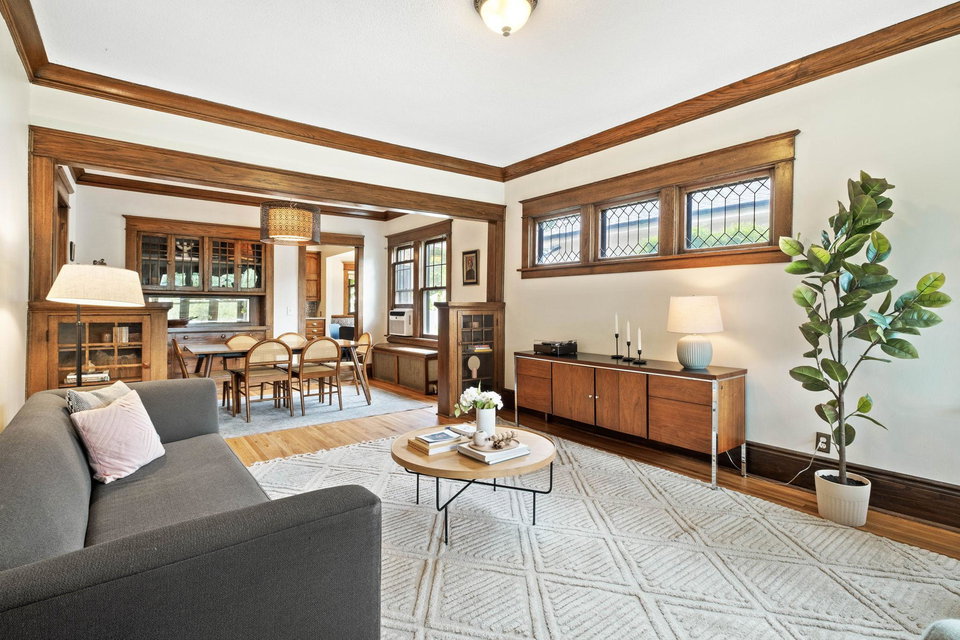 Nestled in the pocket of Mattock’s Park this charming 5 bedroom, 3 bathroom Craftsman home has been thoughtfully prepared for it’s next steward. Original oak hardwood floors & built ins artistically tell the rich history of this home. There is so much to love, including; open living/dining to eat in kitchen, updates throughout the home, work-from-home spaces as well as a finished lower level with theater room (wired for surround sound) and wet bar, game room with a wood-burning fireplace. The front sitting room provides an intimate spot for catching up with friends, unwinding with a book, or binge watching your favorite series. The 3 season porch expands the livability of this home & provides a great view of the heirloom raspberry patch in the backyard . Additionally, Cartoonist Charles Schultz is said to have drawn inspiration from this neighborhood for his comic strip as his first childhood home is located across the street.