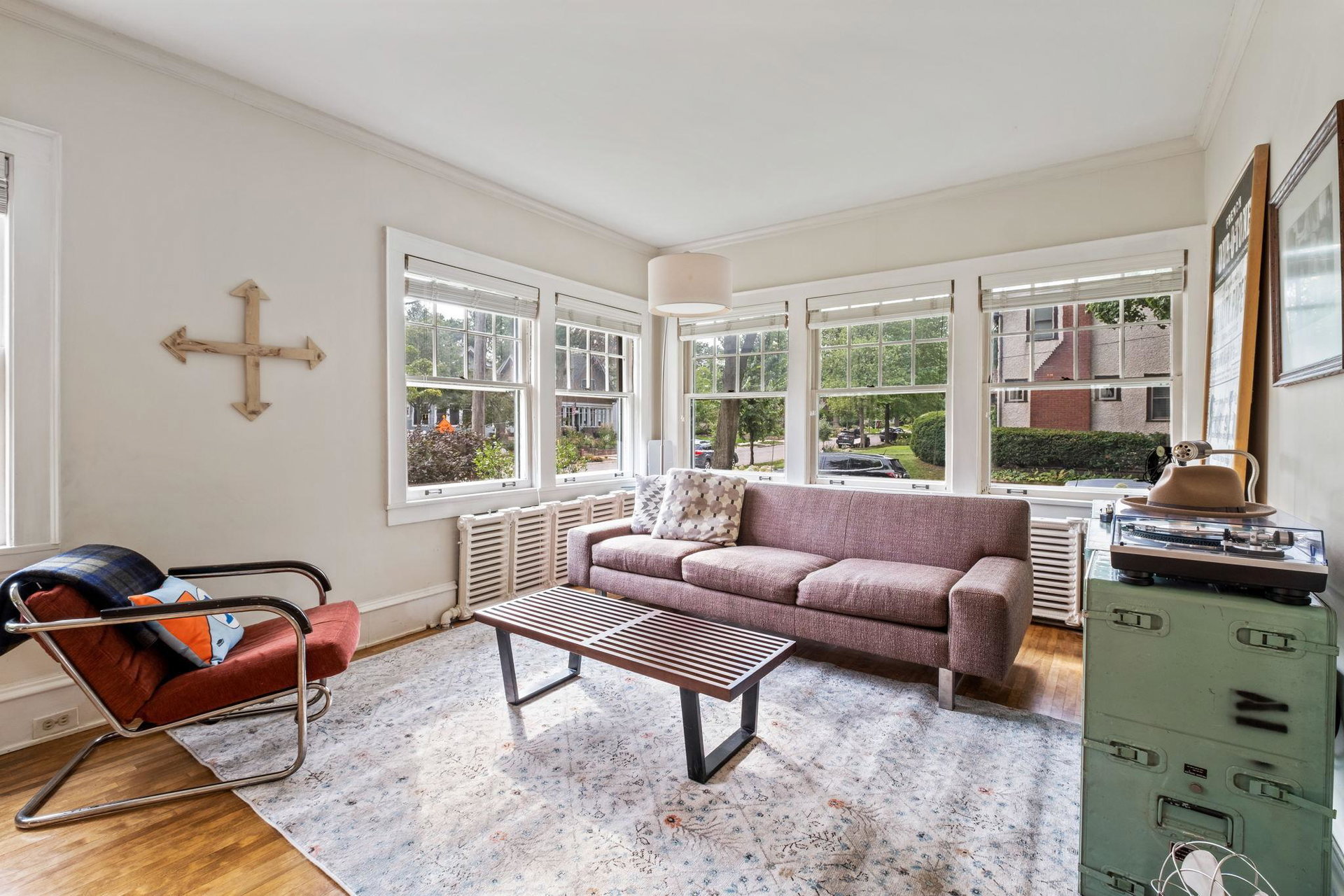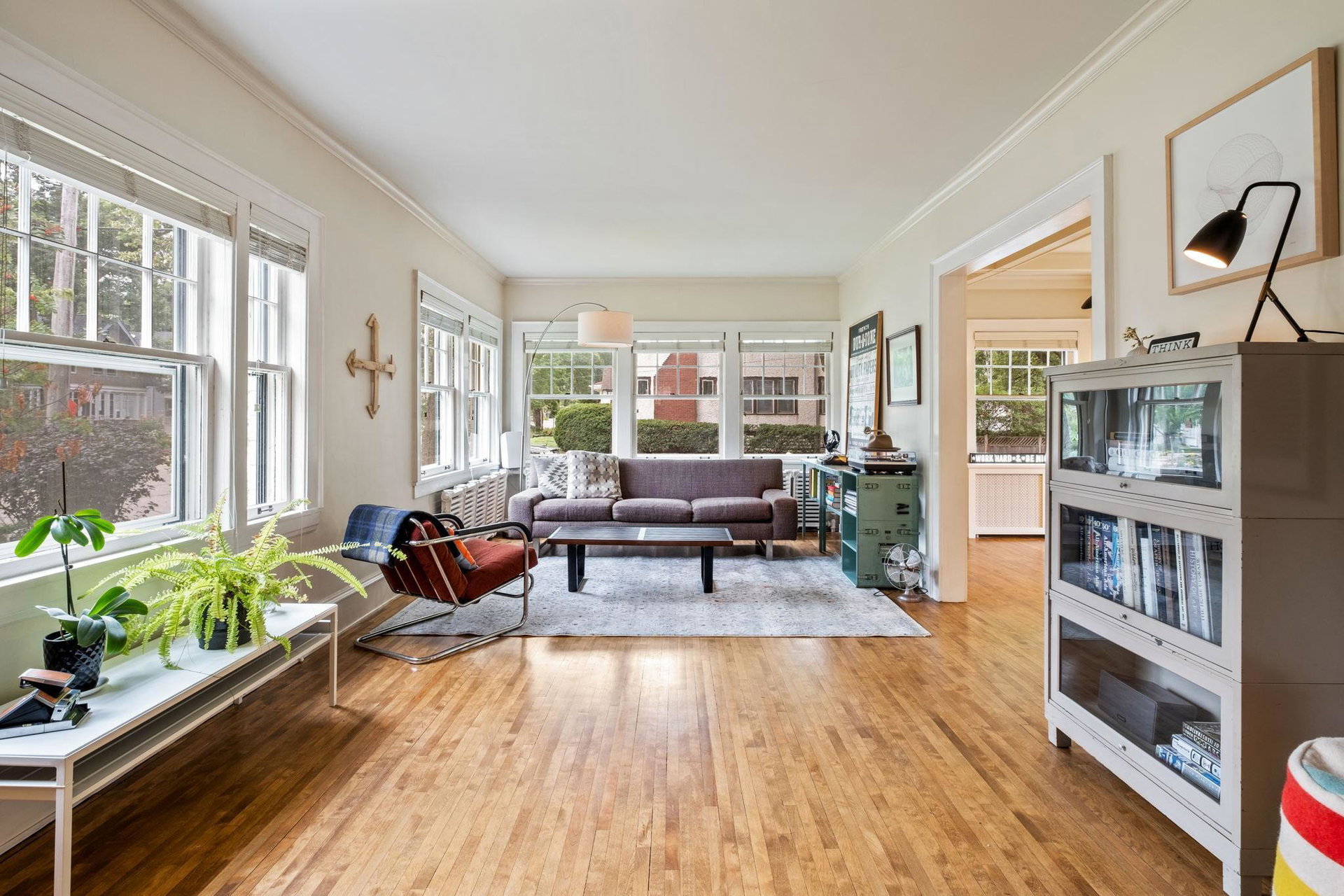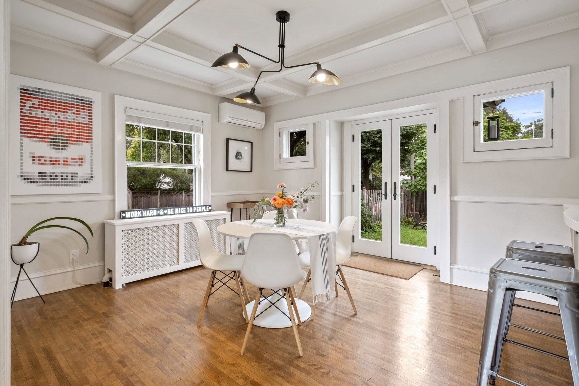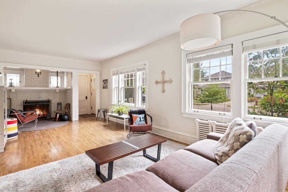 A short walk to Lake Harriet + Minnehaha Creek stands this two story, corner lot, light filled delight. An entertainers dream with open kitchen and spacious yard with patio, this well cared for home has charming details such as original craftsman built in converted to peninsula inviting conversation + connection in the flow of the first floor, coffered ceilings in the dining room, cozy fireplace nook, and vintage tile in the full bath. Two generously sized bedrooms on the upper level, with the primary bedroom including a private 3/4 bath + Sun Room currently being used as an office space. Often considered as the best of both worlds, this home has radiant heating with ductless mini splits to cool. The lower level includes a large room that could be simply converted to another family room/game room/office/bedroom. The walk, run, bike, eat, educate, play options are plentiful here – come see!