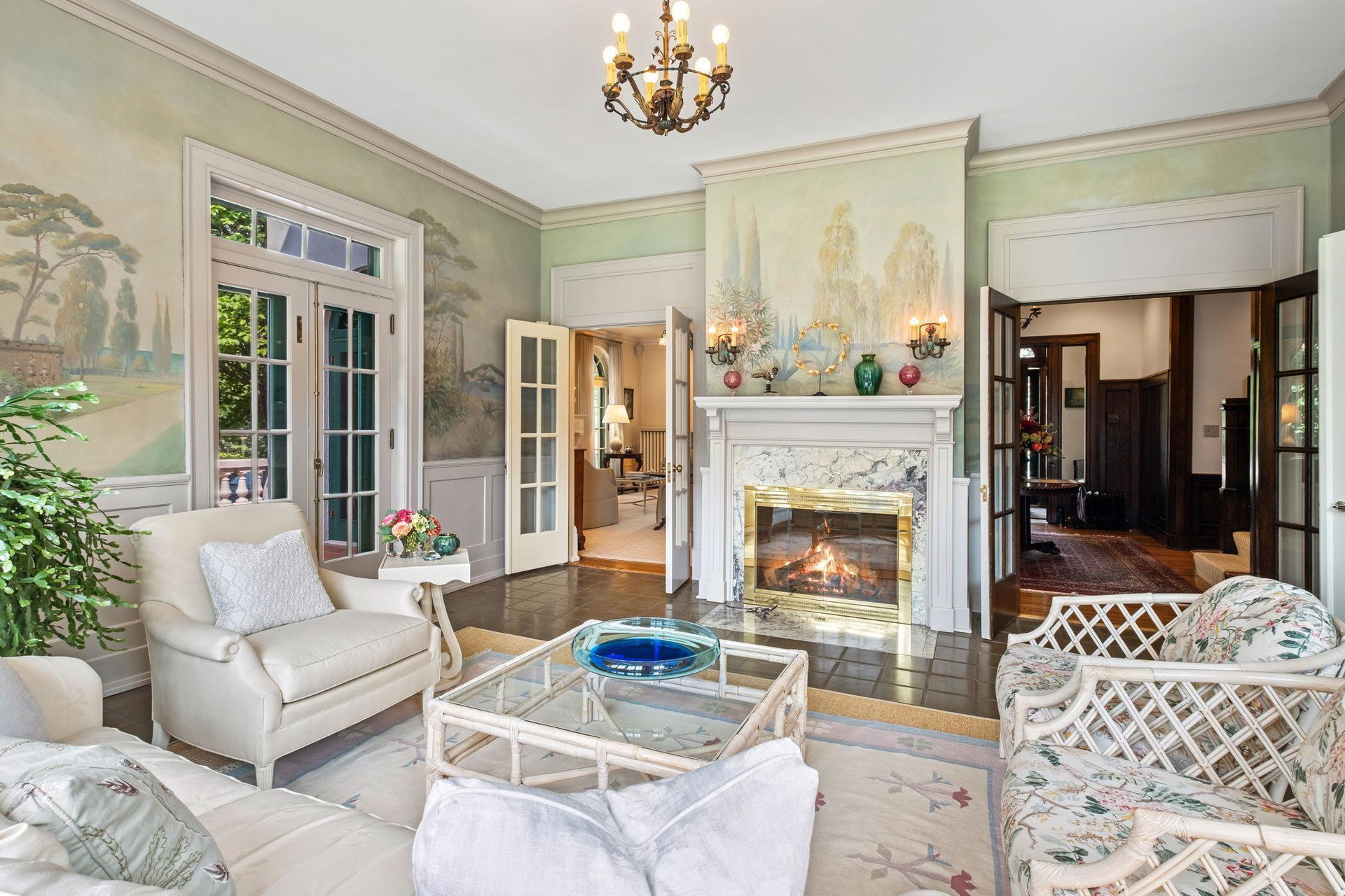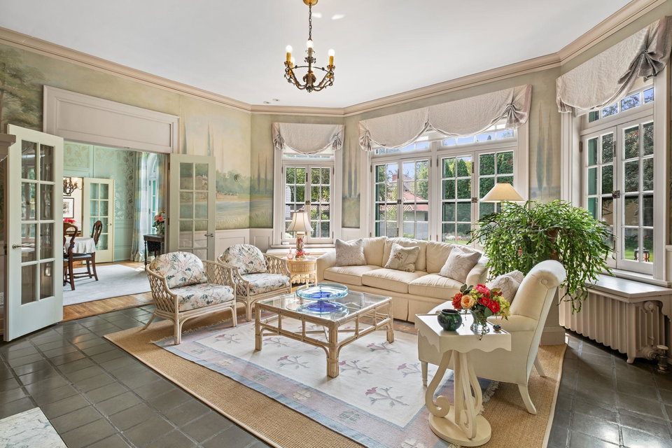 Built in 1920 at just over 7000 square feet, with Four Distinct Levels of Living, this Lovely Six Bedroom, Six Bath home with Tremendous Natural Light & a Compelling Indoor/Outdoor Connection seldom seen in homes of the era, contains many features and amenities such as; Terracotta Roof, Wrought Iron Balcony, Symmetrical Arched Windows, Seven Unique Fireplaces, Romantic Tiled Sunroom with an Original Frieze depicting tropical locale, Enchanting Murano Dining Room Chandelier, Renovated Designer Kitchen, Luxury Primary Bedroom Suite, Wine Cellar, Sauna, Game Room, Modern Updated Mechanicals and much more.