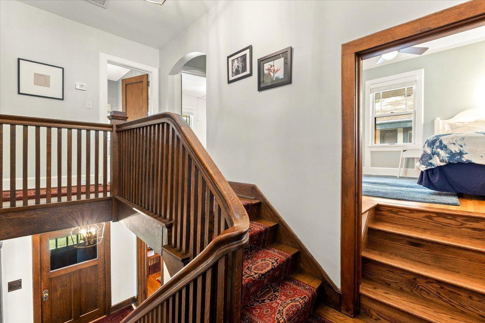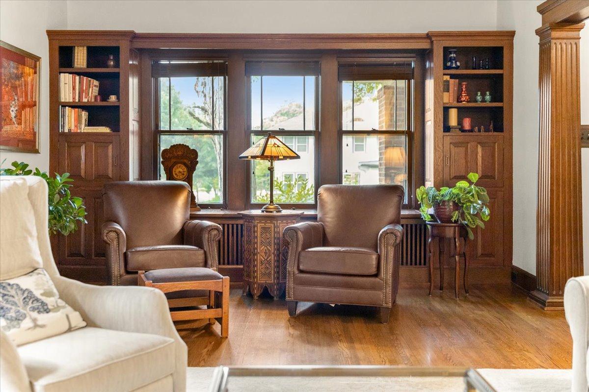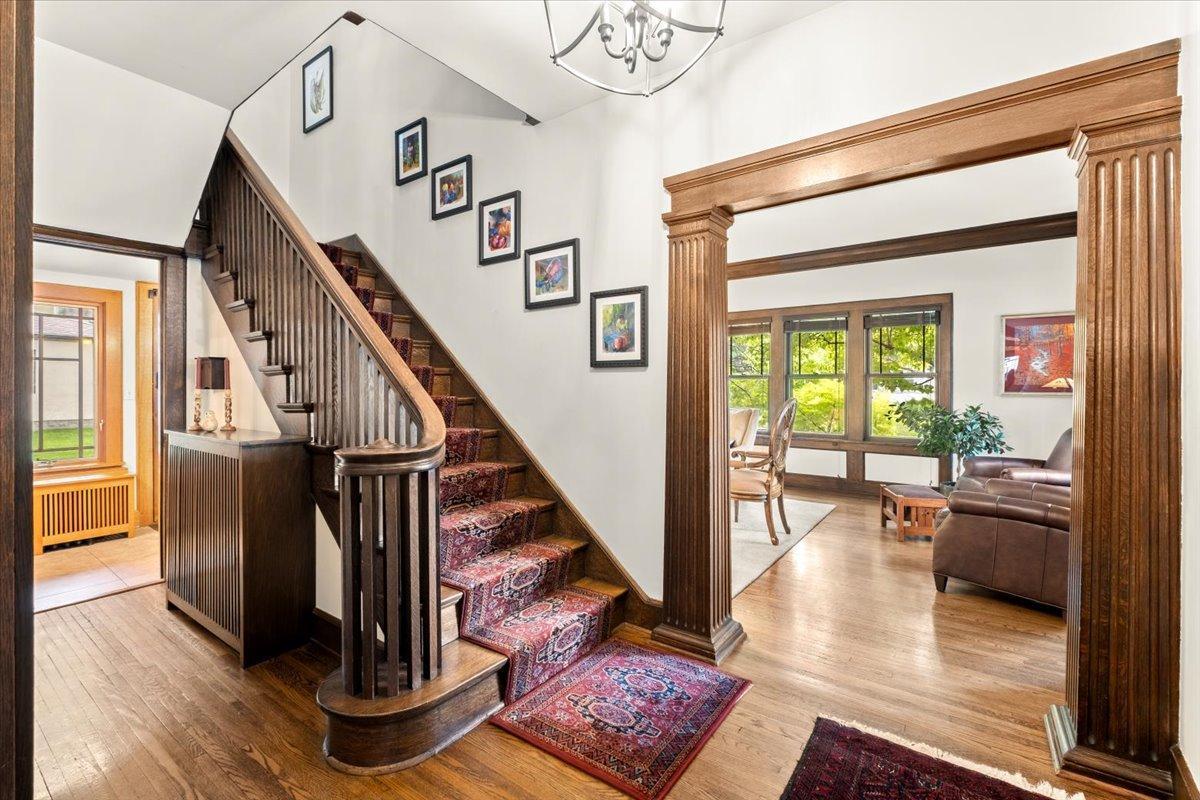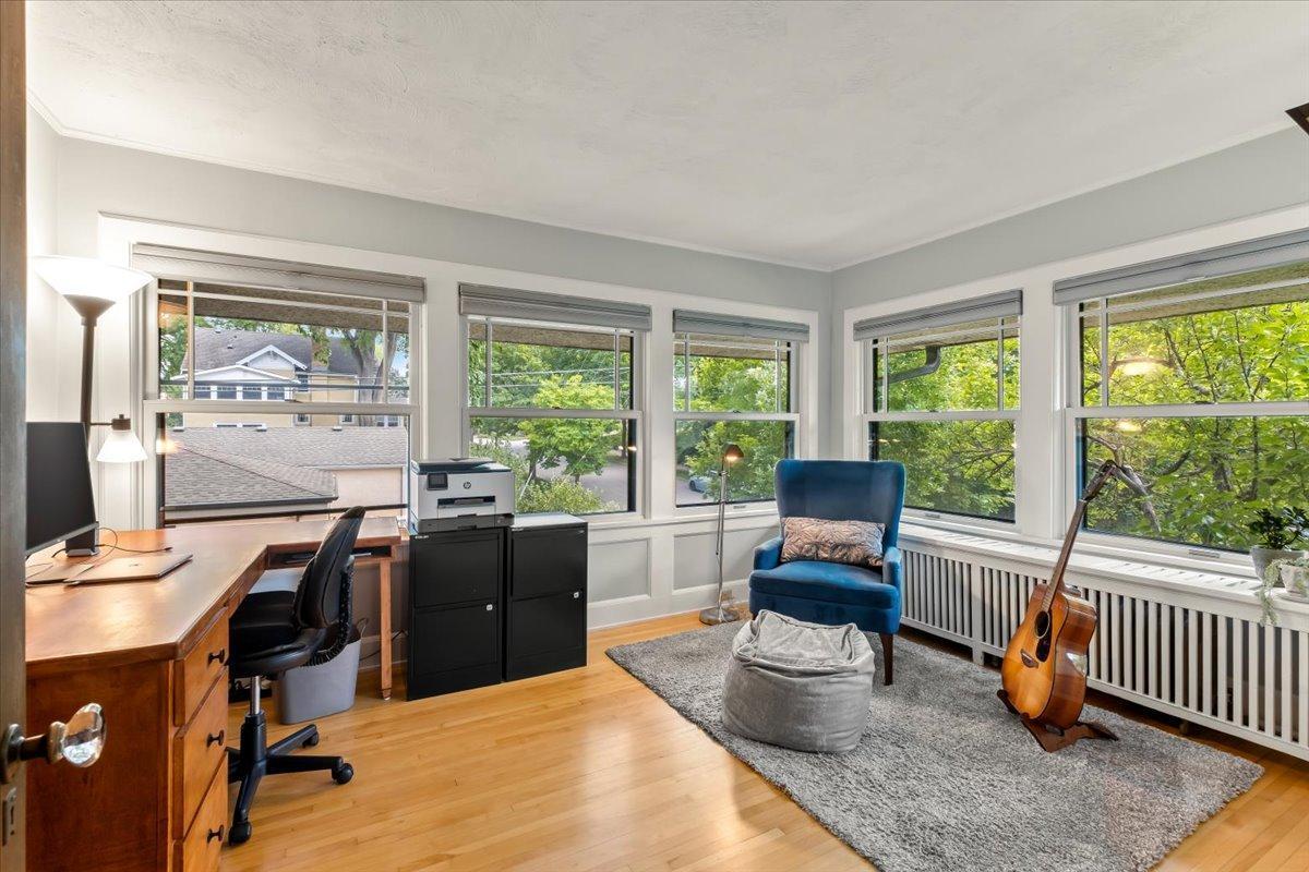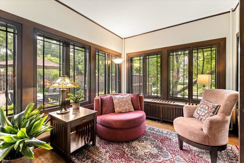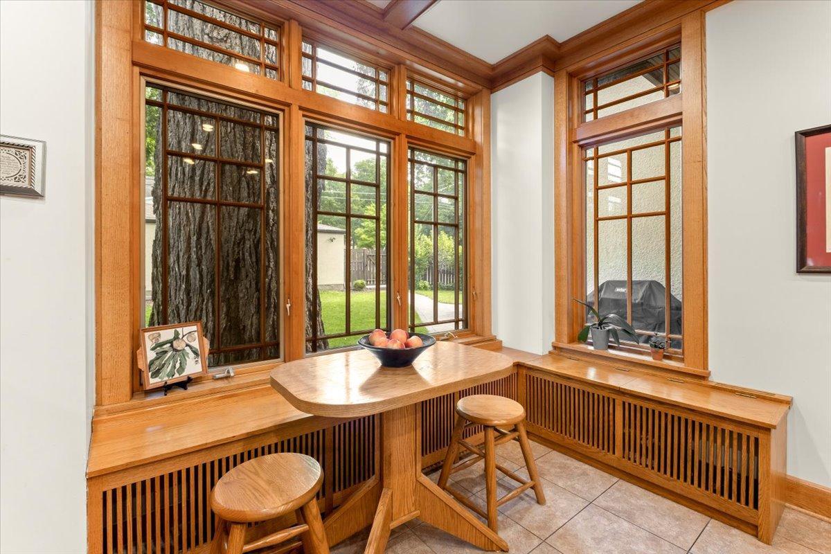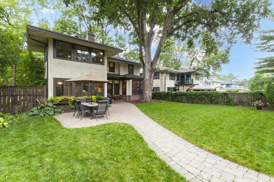 Stately Prairie-style two-story in the heart of Lynnhurst, just steps from Lake Harriet! Filled with charm, this home features quarter sawn oak woodwork, custom cabinetry, original hardwood floors, built-ins, and a wood-burning fireplace. The updated kitchen offers granite counters, stone backsplash, stainless appliances, and a sunny breakfast nook. Three floors of finished living space include two sunrooms, one off the living room and another as a private primary BR retreat. Enjoy a seamless indoor/outdoor connection with a wide front porch, large windows, fenced backyard, and an expertly landscaped oversized lot. Updates include refreshed bathrooms and lower level, newer roof, updated mechanicals with central A/C, and a new oversized two-car garage with EV charging and excellent storage. With walkability to the lake, creek, parks, restaurants, and shops, this home blends timeless character with modern updates. The sellers have truly loved it, and they know you will too!