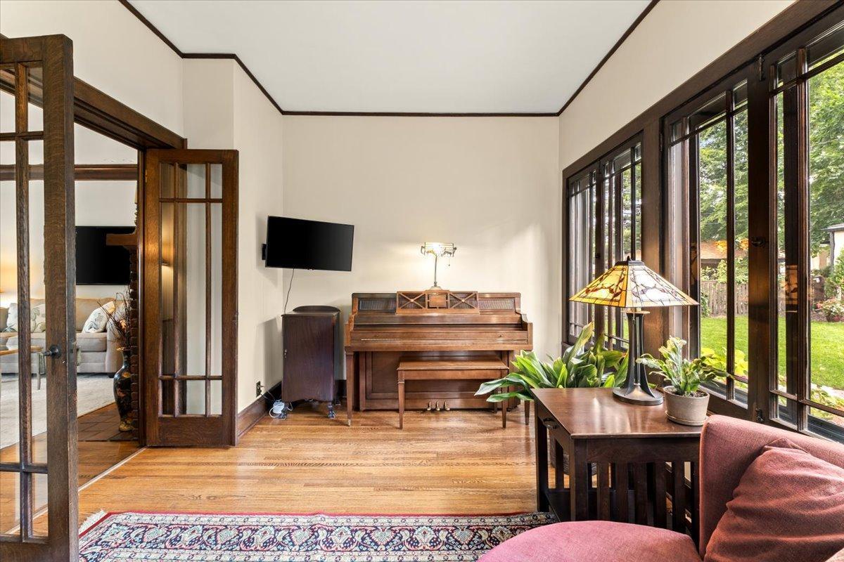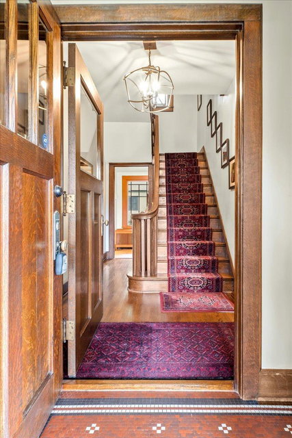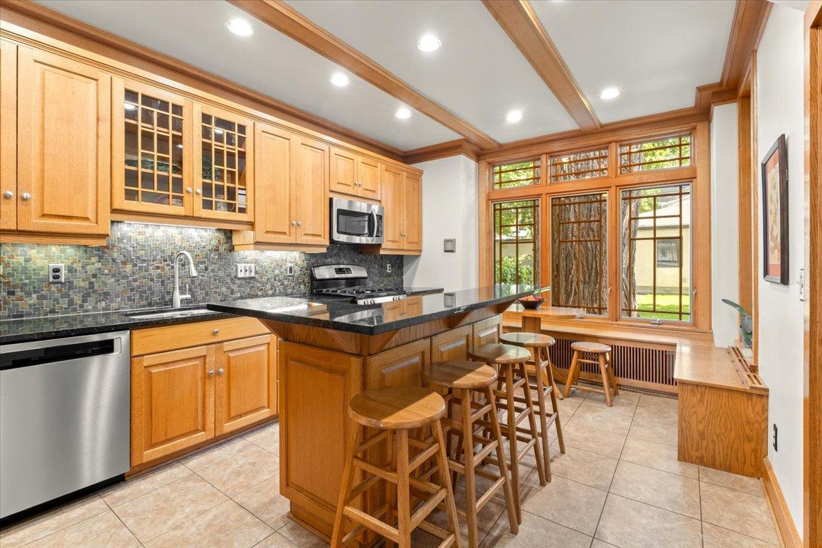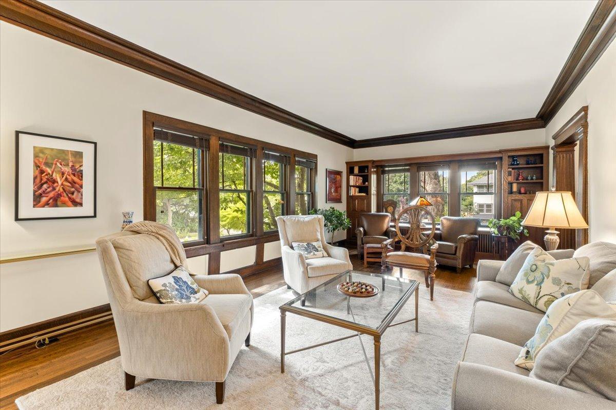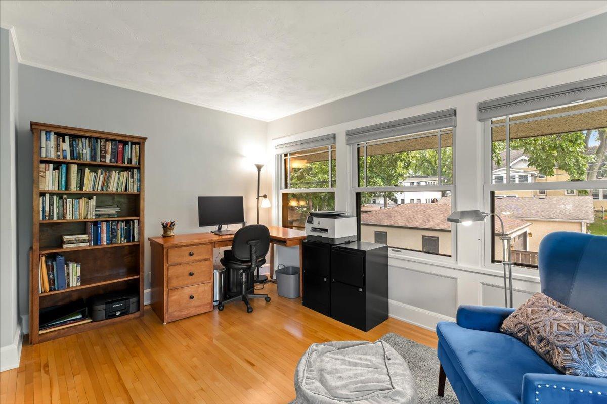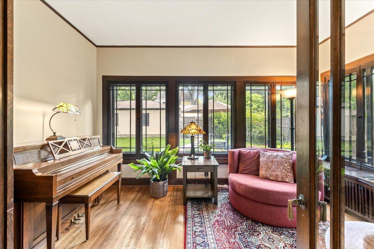 Stately Prairie-style two-story in the heart of Lynnhurst, just steps from Lake Harriet! Filled with charm, this home features quarter sawn oak woodwork, custom cabinetry, original hardwood floors, built-ins, and a wood-burning fireplace. The updated kitchen offers granite counters, stone backsplash, stainless appliances, and a sunny breakfast nook. Three floors of finished living space include two sunrooms, one off the living room and another as a private primary BR retreat. Enjoy a seamless indoor/outdoor connection with a wide front porch, large windows, fenced backyard, and an expertly landscaped oversized lot. Updates include refreshed bathrooms and lower level, newer roof, updated mechanicals with central A/C, and a new oversized two-car garage with EV charging and excellent storage. With walkability to the lake, creek, parks, restaurants, and shops, this home blends timeless character with modern updates. The sellers have truly loved it, and they know you will too!