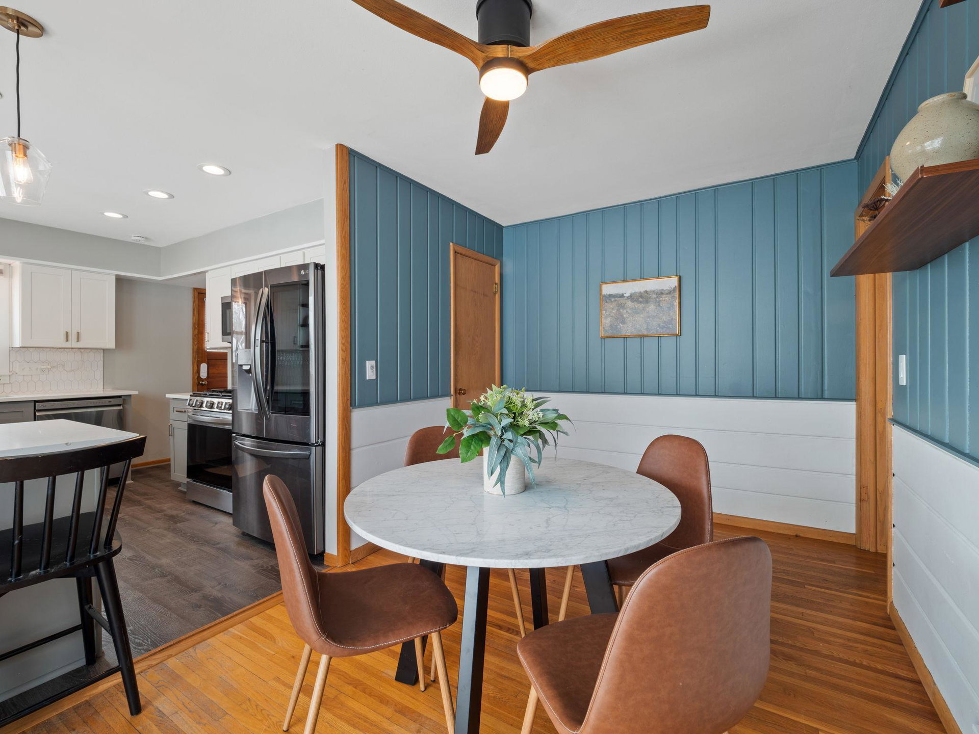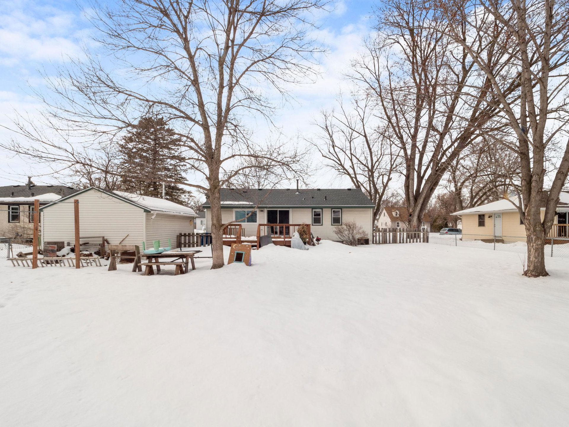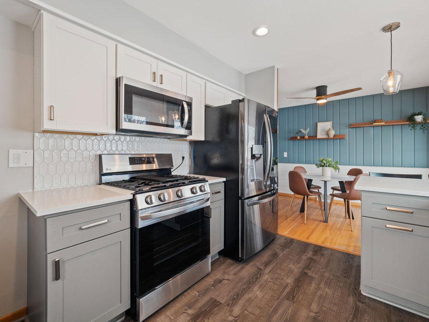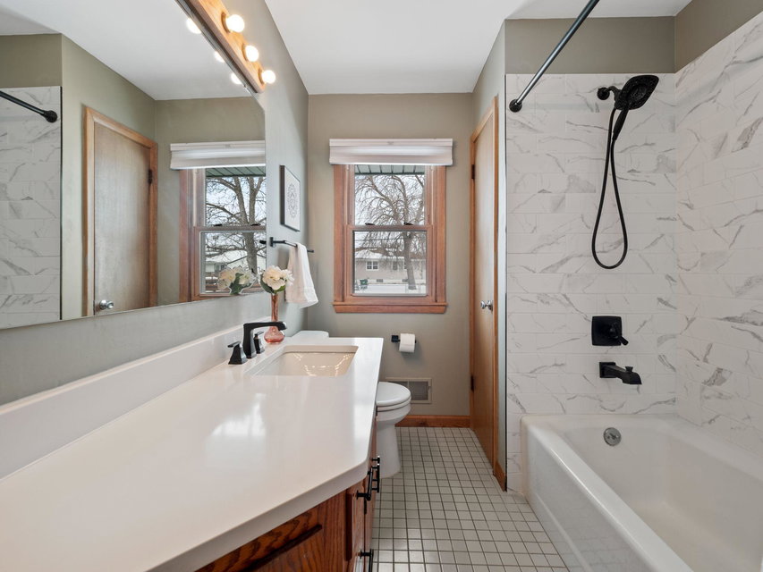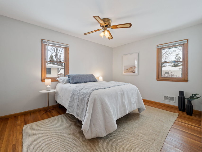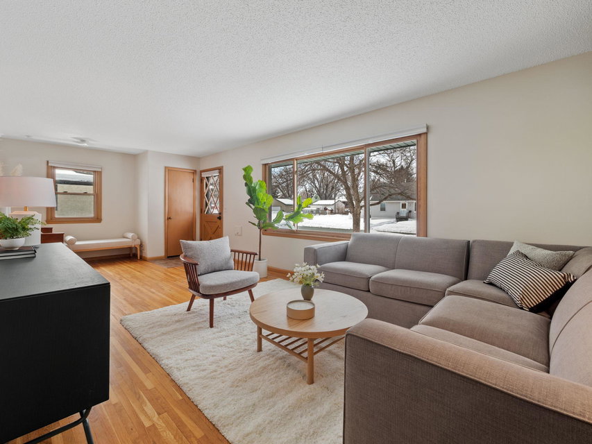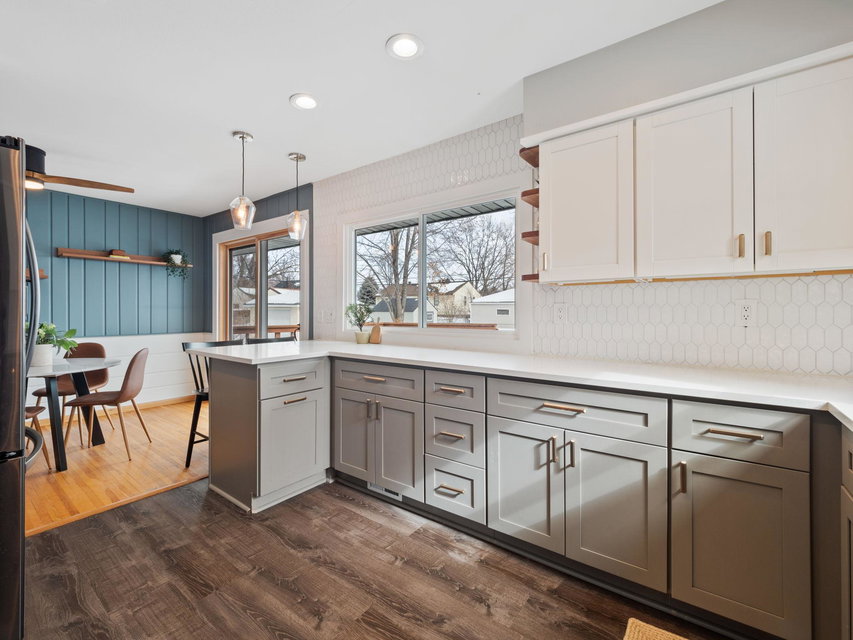 Do not miss this fully remodeled home in friendly Fridley!! This classic rambler has 3 beds, 2 updated bathrooms and a fully remodeled kitchen. Some of the features include new stainless steel LG Smart ThinQ appliances, gorgeous hardwood floors, brand new roof, newer windows, a breakfast bar with quartz countertops, bathrooms also updated with quartz countertops, new tile, fixtures, and the cutest wallpaper in the lower bathroom! Freshly finished basement with a built-in media center, heated flooring throughout family room and 3rd bedroom and a new egress window. Plenty of room for a den, office space and tons of storage. Large fully fenced in back yard with new landscaping and a shed. This home is a must see!