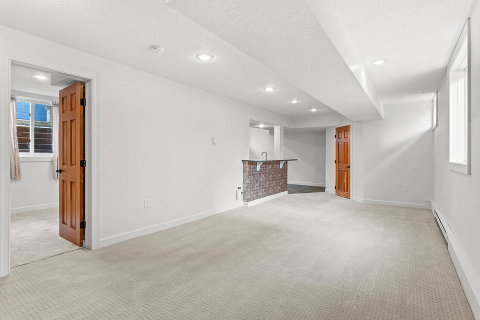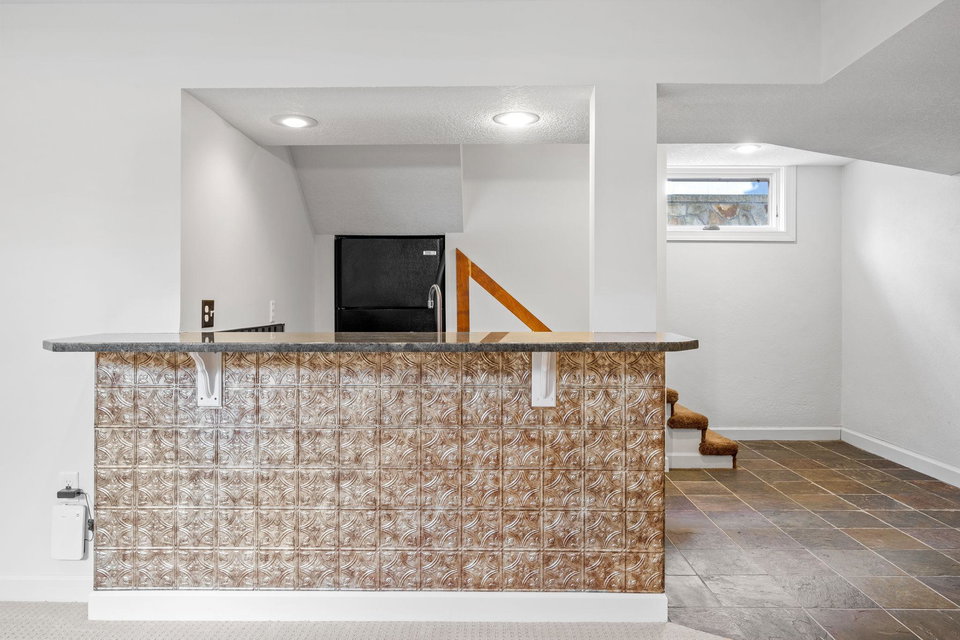 The finished lower level is an entertainer’s paradise, with a wet bar and a private guest suite. Outside, enjoy the charm of a spacious front porch with welcoming vertical grain fir floors. The serene backyard retreat features a fully fenced yard, a beautiful flagstone patio, and mature landscaping—perfect for relaxation or entertaining.