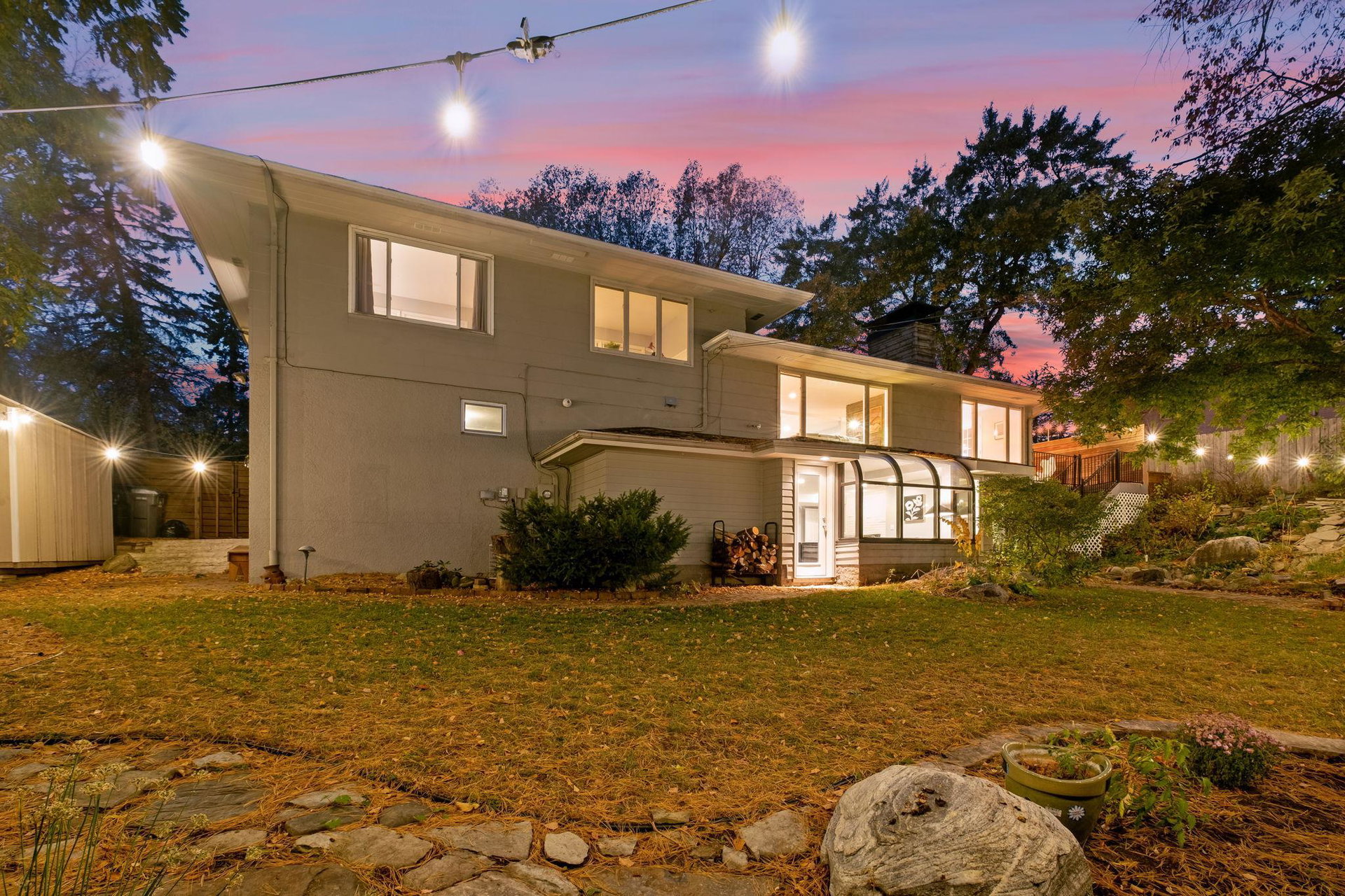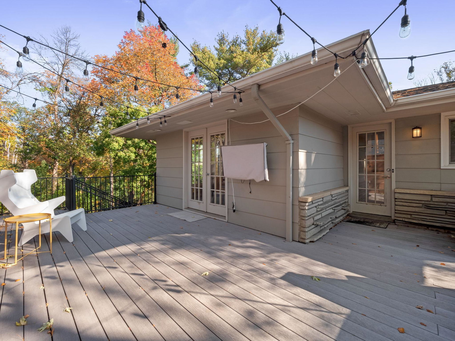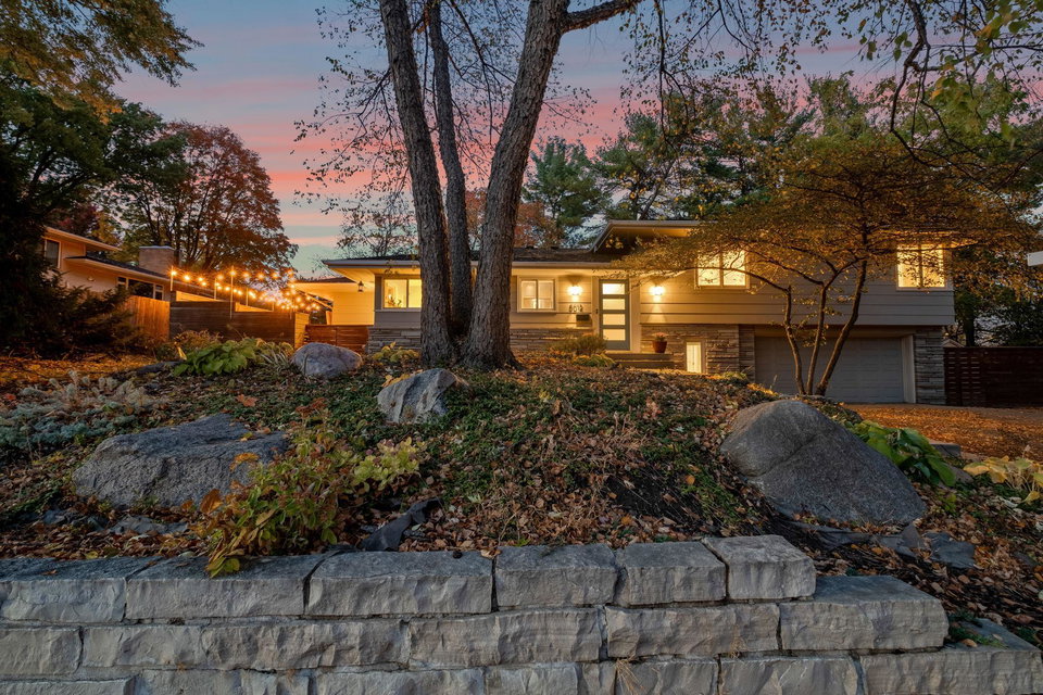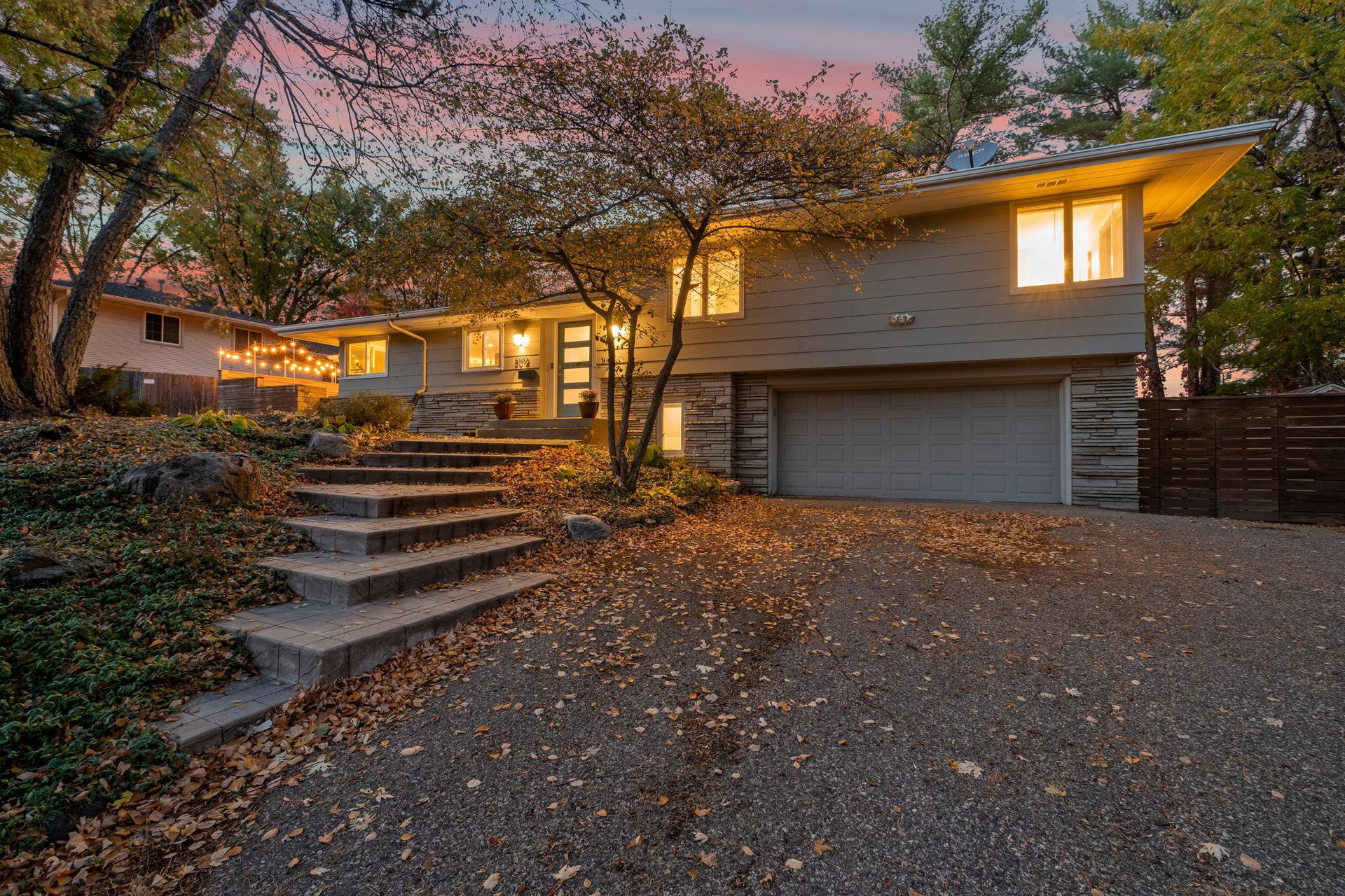 Serenity Now! This Mid-Century Multi-Level Home is a must-see! Surrounded by mature trees on a large elevated lot above Melody Lake, you will enjoy bonfires, bird watching and the occasional deer, while being at the center of everything Edina has to offer. Updated spacious gourmet kitchen overlooking the 2-way stone fireplace into the living room and dining room. Your deck is perfect for entertaining or watching the game (or the the Real Housewives!) with outdoor television, built-in couch and plenty of space for table or additional seating. 3 big bedrooms on upper level with a stylish full bath and plenty of storage. The lower level walk-out with atrium to view your gorgeous backyard has an additional 2-way stone fireplace, another bedroom and bathroom, along with laundry room, walk-in storage closet and more. Bonus – powder room right as you walk-in from your attached garage! This home checks all the boxes and more. Come check it out!