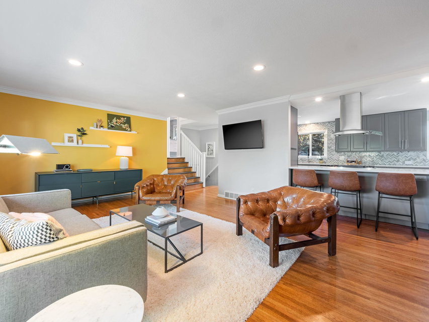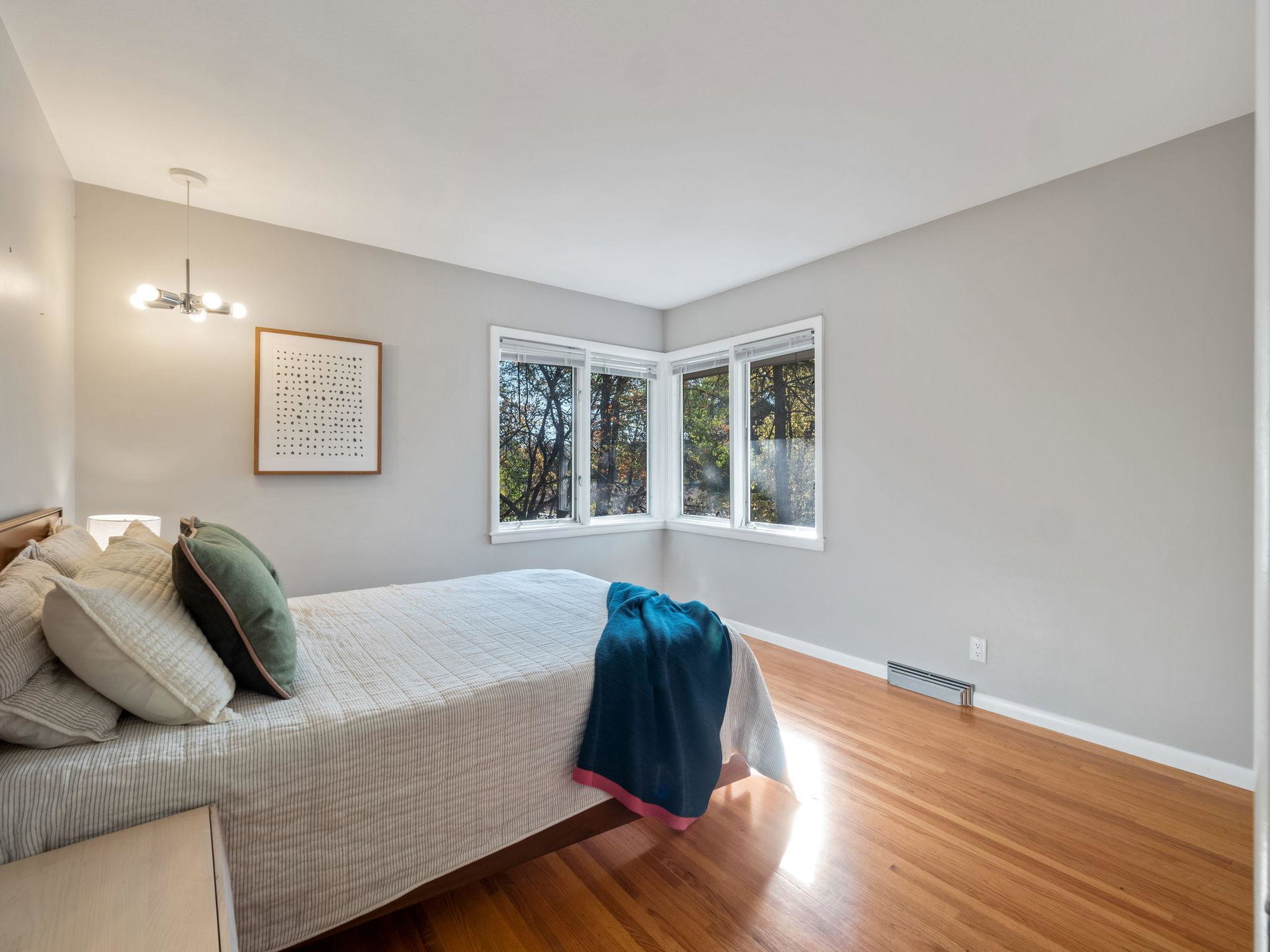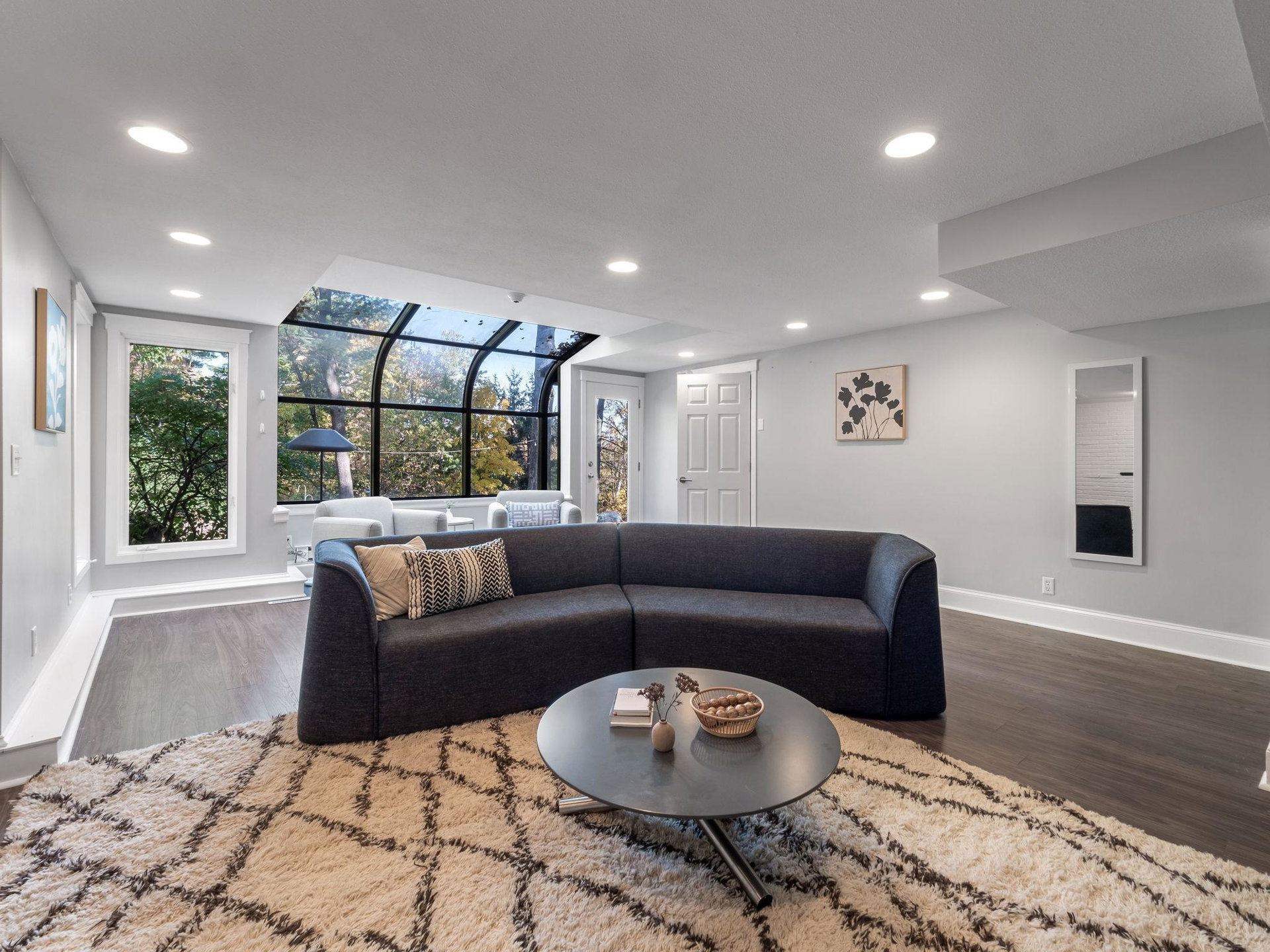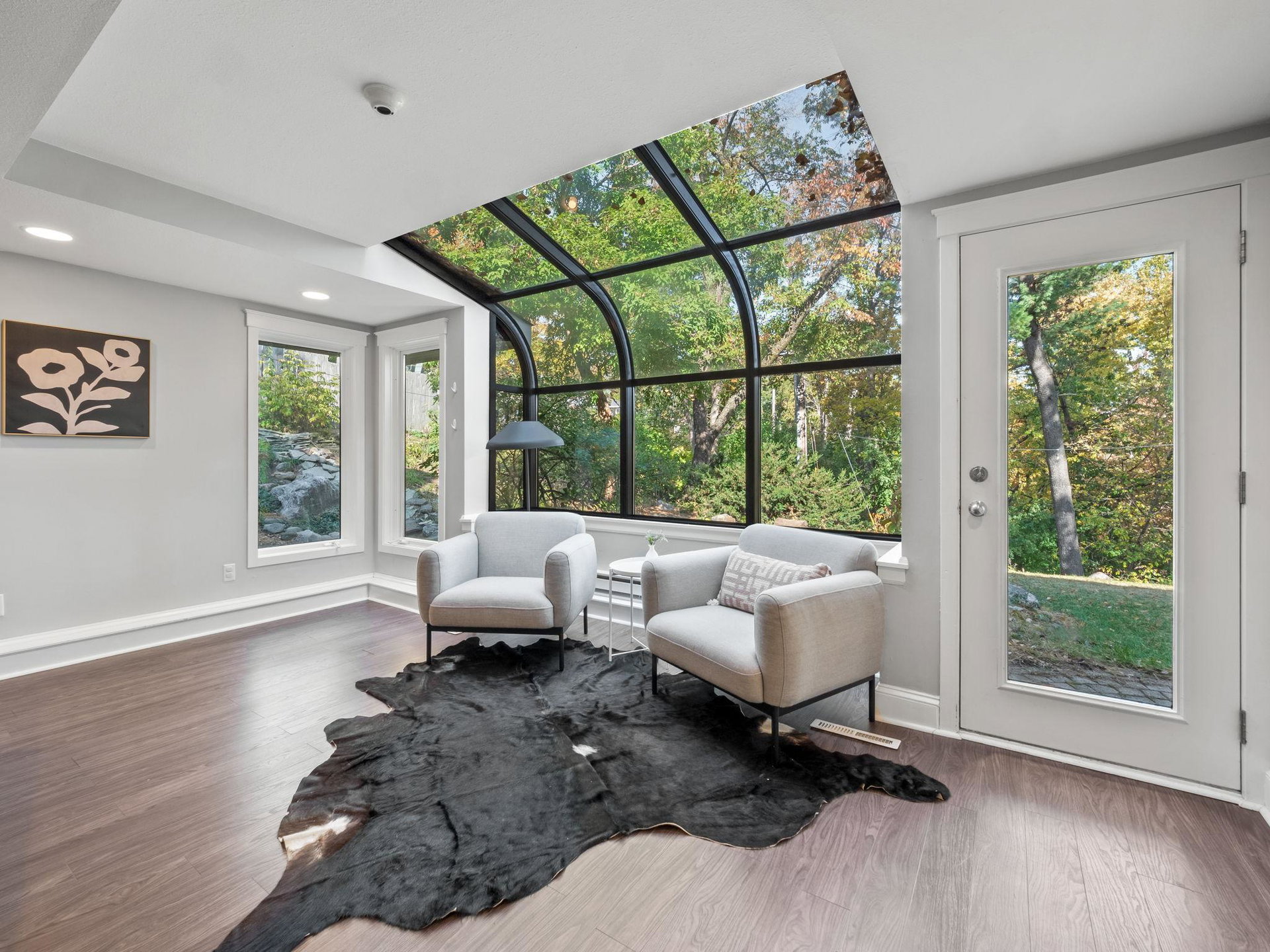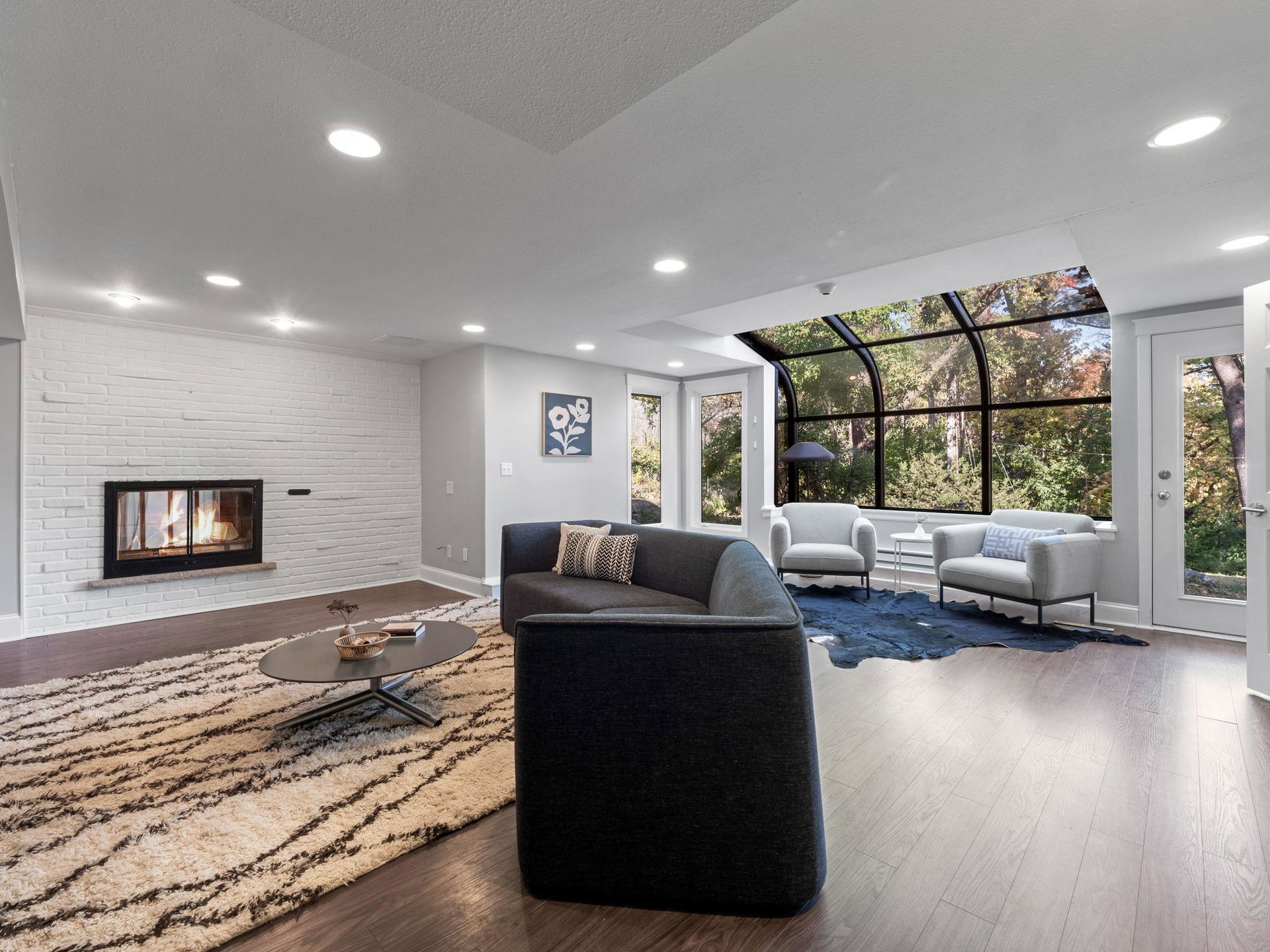 Serenity Now! This Mid-Century Multi-Level Home is a must-see! Surrounded by mature trees on a large elevated lot above Melody Lake, you will enjoy bonfires, bird watching and the occasional deer, while being at the center of everything Edina has to offer. Updated spacious gourmet kitchen overlooking the 2-way stone fireplace into the living room and dining room. Your deck is perfect for entertaining or watching the game (or the the Real Housewives!) with outdoor television, built-in couch and plenty of space for table or additional seating. 3 big bedrooms on upper level with a stylish full bath and plenty of storage. The lower level walk-out with atrium to view your gorgeous backyard has an additional 2-way stone fireplace, another bedroom and bathroom, along with laundry room, walk-in storage closet and more. Bonus – powder room right as you walk-in from your attached garage! This home checks all the boxes and more. Come check it out!