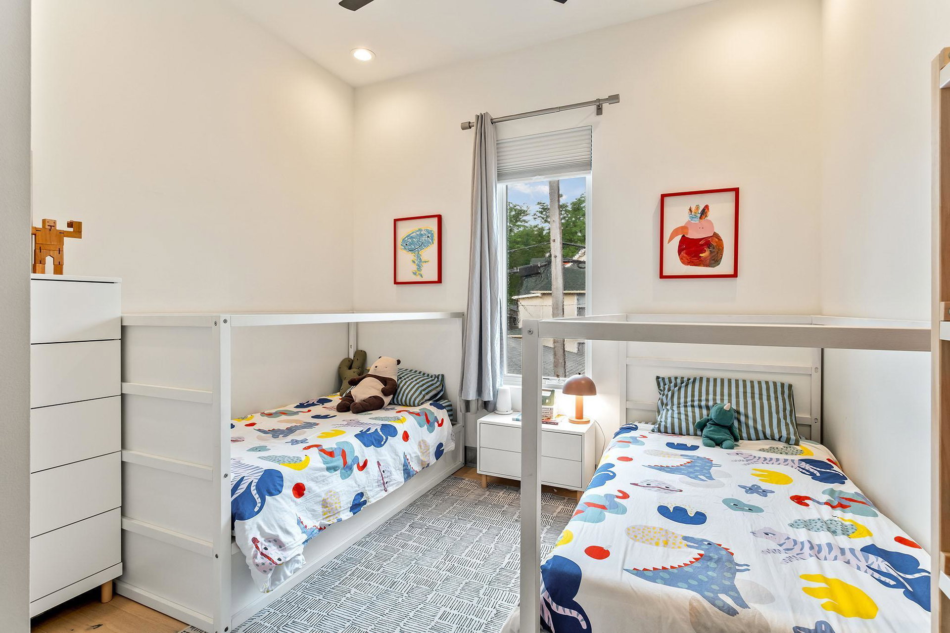 Outside, the oversized lot features a new deck, custom playhouse echoing the home’s roofline, large two car garage, and ample off street parking.