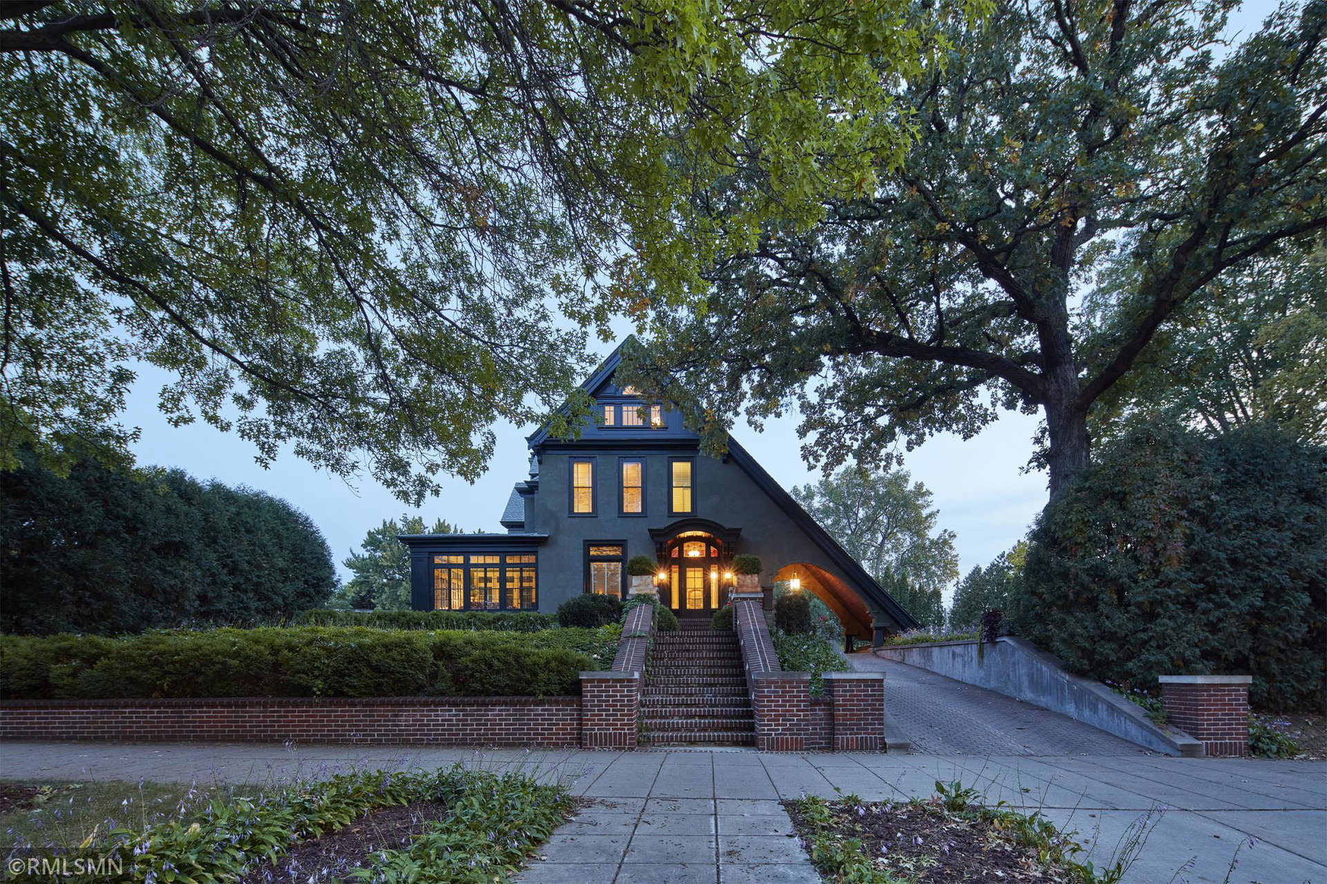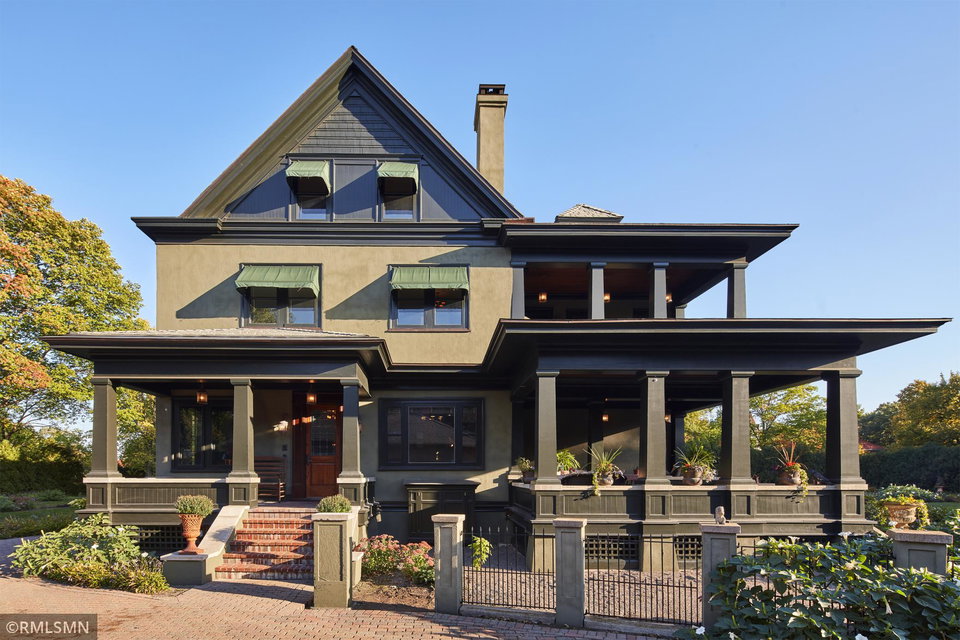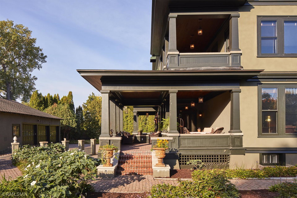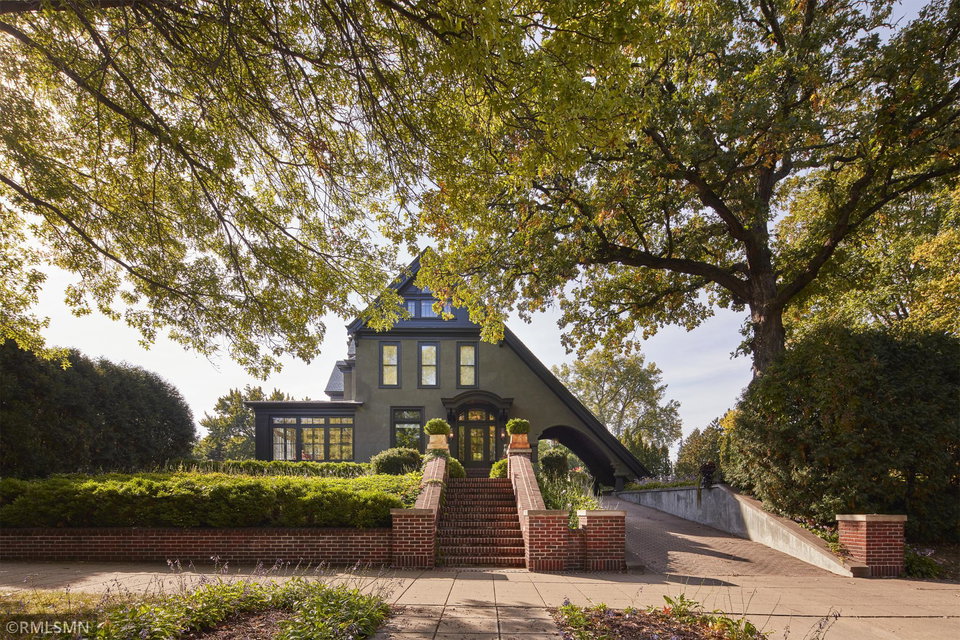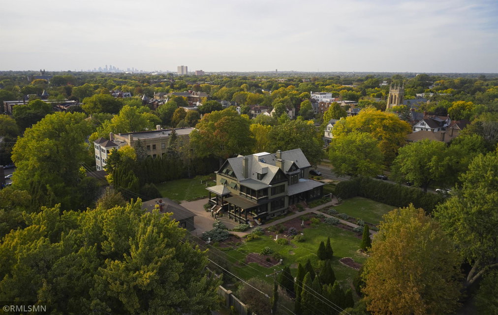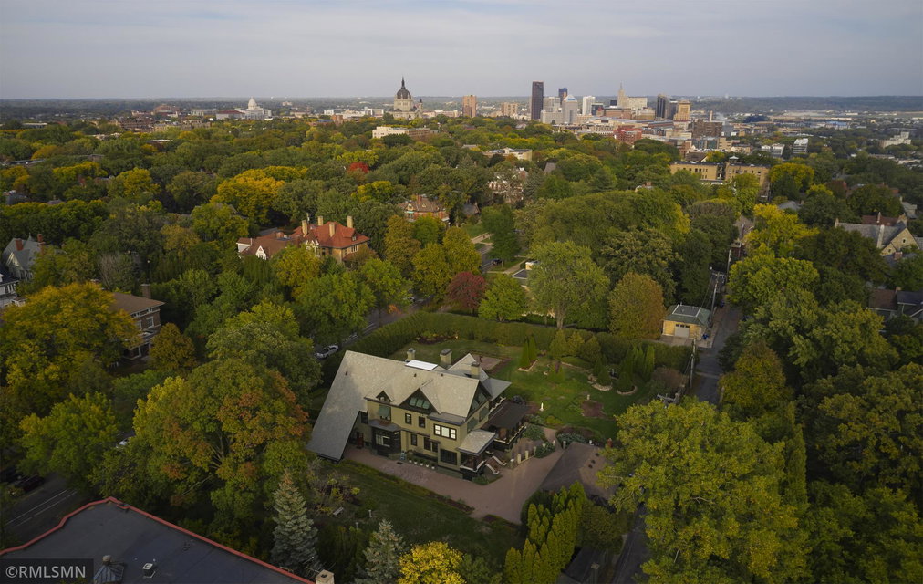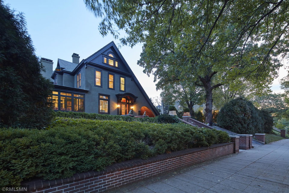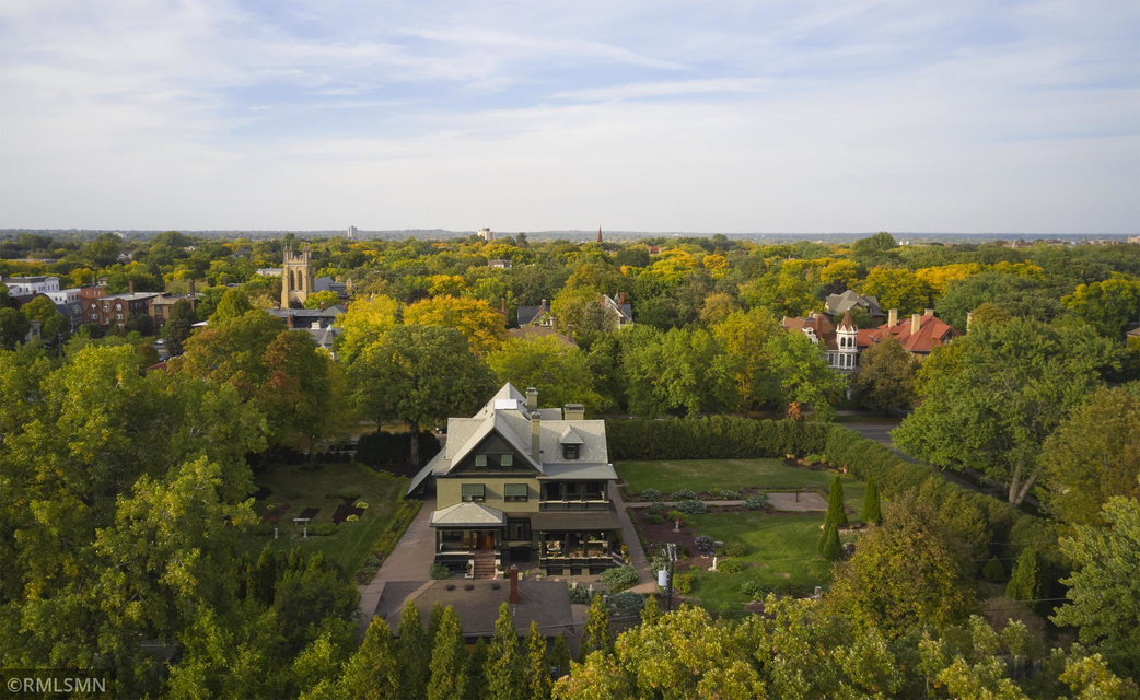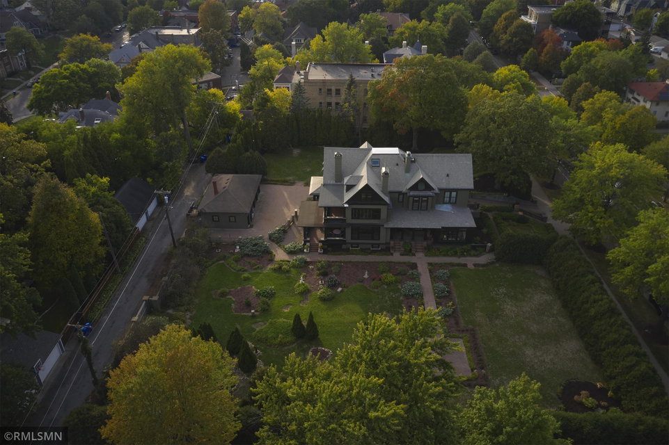 An Eclectic English Country Manor house, with architectural influences spanning the Arts & Crafts, Storybook and Victorian styles. Featuring its prominent “cat-slide” porte cochere, this remarkable estate remains one of St Paul’s most recognizable homes. Sitting on just over an acre and comprised of 5 lots on top of Historic Ramsey Hill this romantic home, originally built in 1882, has been expanded, preserved and cherished over the years. At approximately 8,500 finished square feet this 7 bedroom 8 bathroom home is both grand and comfortable. With 10 foot ceilings and abundant natural light, the layout is compelling and full of delights such as built-in cabinets, bay windows, ornamental carved plaster ceilings, six fireplaces, and numerous porches looking out upon the surrounding formal gardens. The third floor has 2 apartments, perfect for guests or tenants. The garden level contains a gym, a cedar sauna and steam shower and yet another apartment.