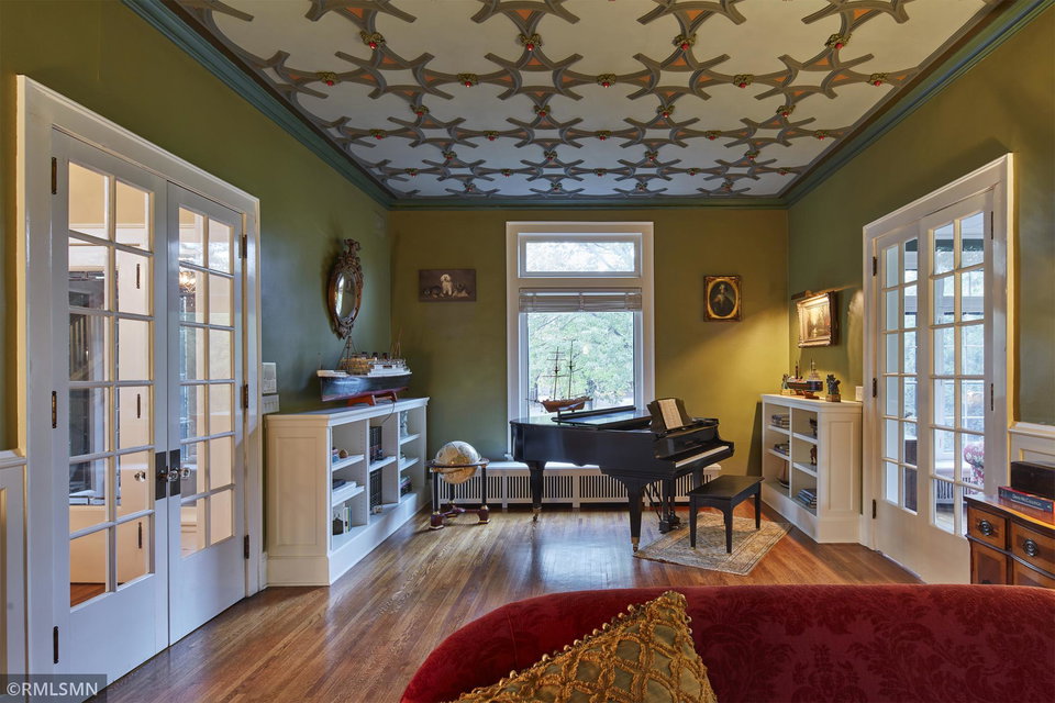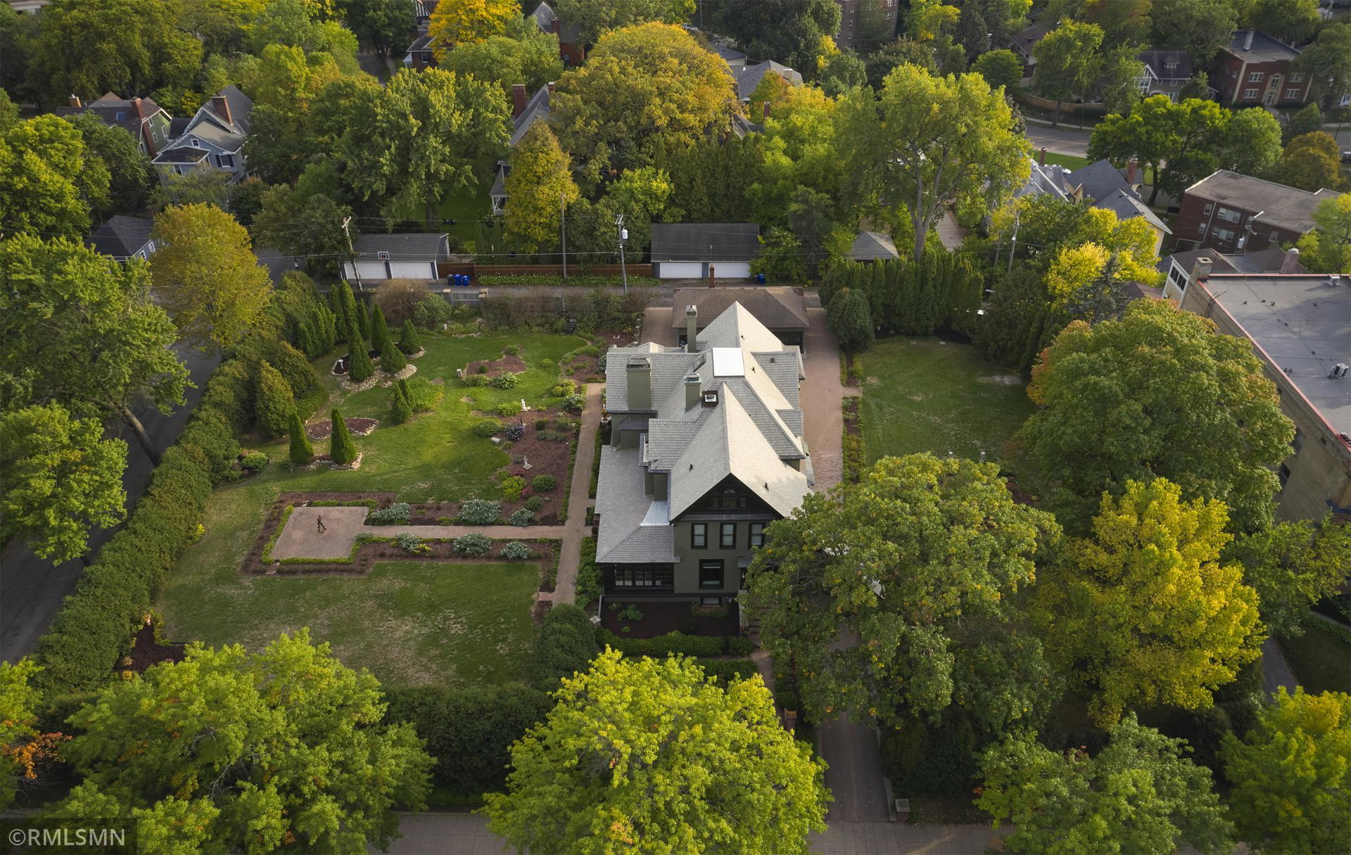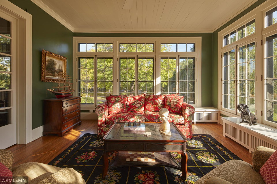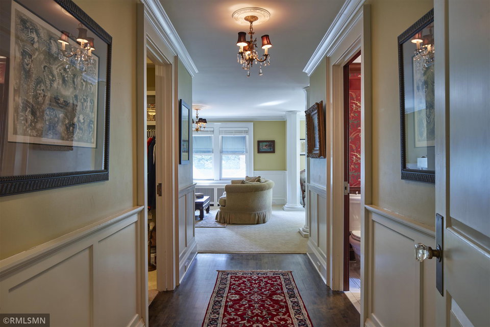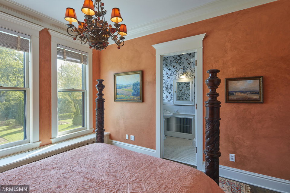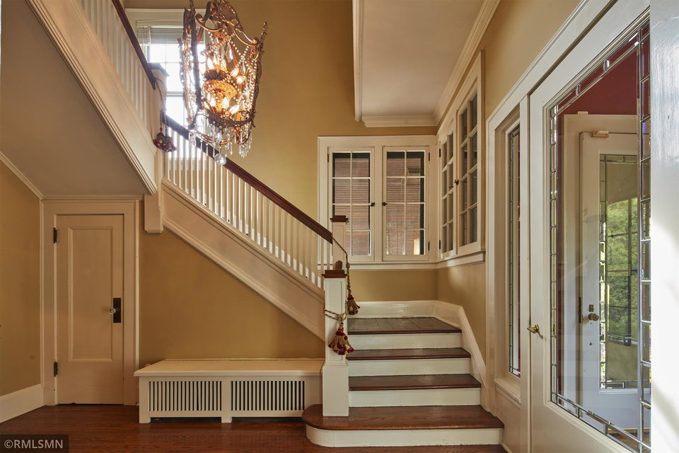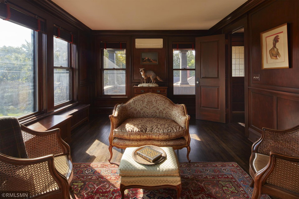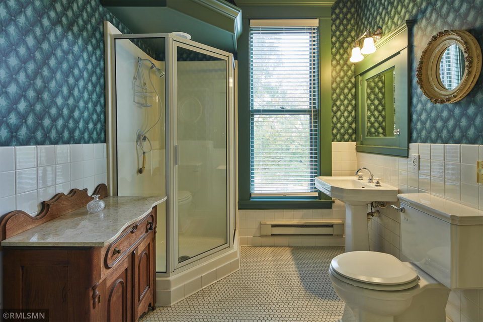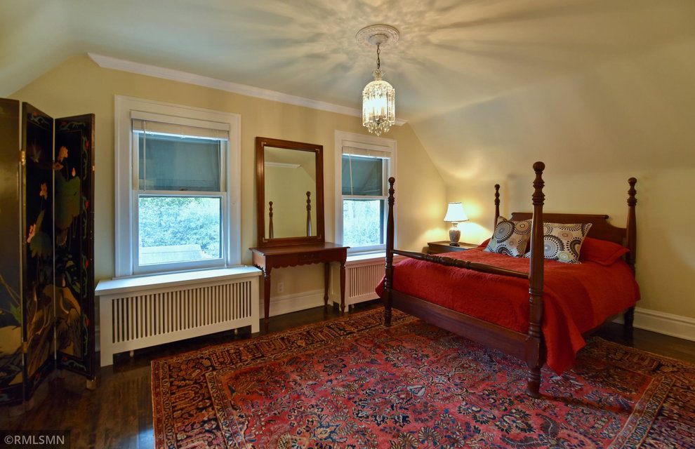 An Eclectic English Country Manor house, with architectural influences spanning the Arts & Crafts, Storybook and Victorian styles. Featuring its prominent “cat-slide” porte cochere, this remarkable estate remains one of St Paul’s most recognizable homes. Sitting on just over an acre and comprised of 5 lots on top of Historic Ramsey Hill this romantic home, originally built in 1882, has been expanded, preserved and cherished over the years. At approximately 8,500 finished square feet this 7 bedroom 8 bathroom home is both grand and comfortable. With 10 foot ceilings and abundant natural light, the layout is compelling and full of delights such as built-in cabinets, bay windows, ornamental carved plaster ceilings, six fireplaces, and numerous porches looking out upon the surrounding formal gardens. The third floor has 2 apartments, perfect for guests or tenants. The garden level contains a gym, a cedar sauna and steam shower and yet another apartment.