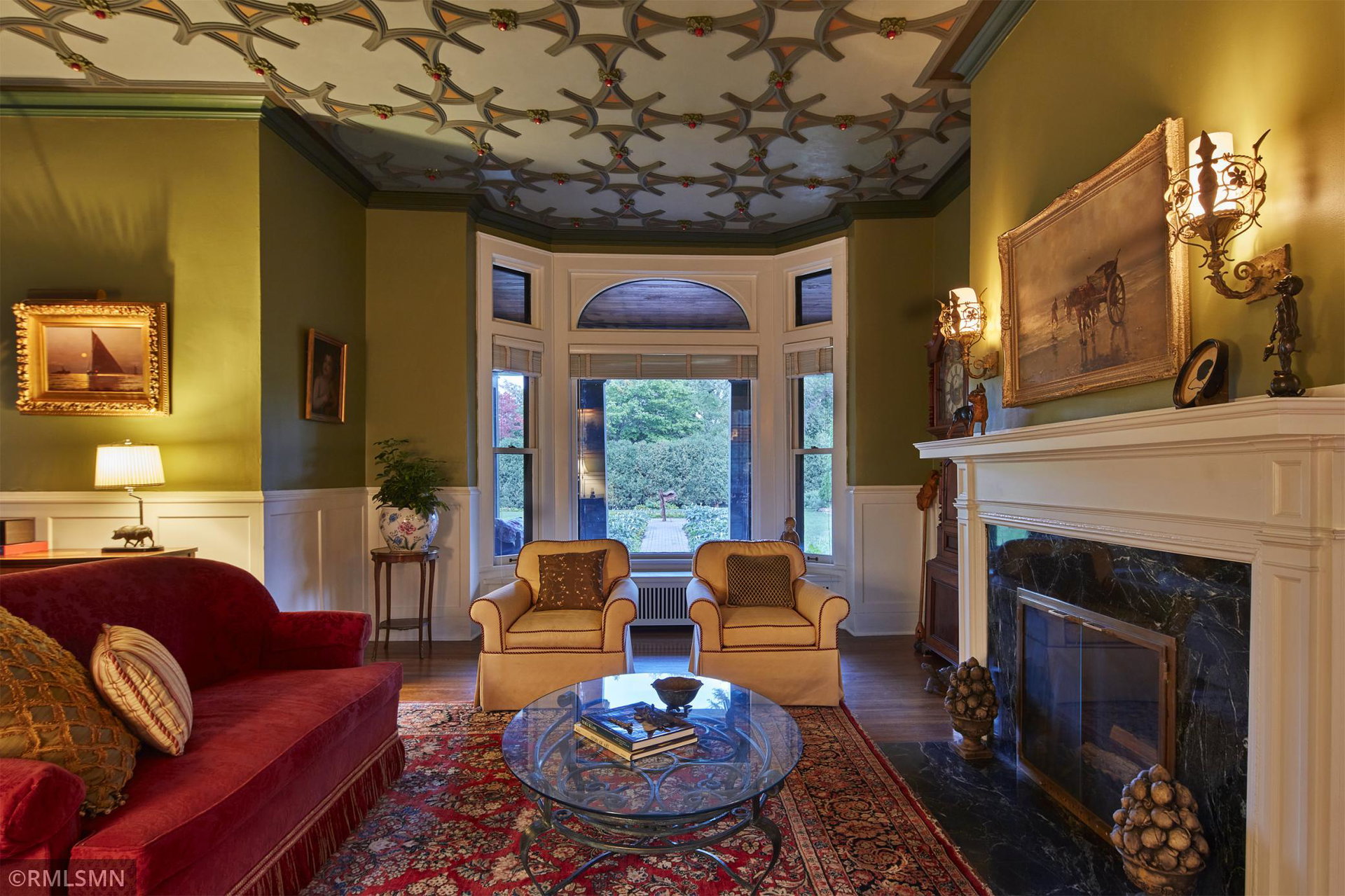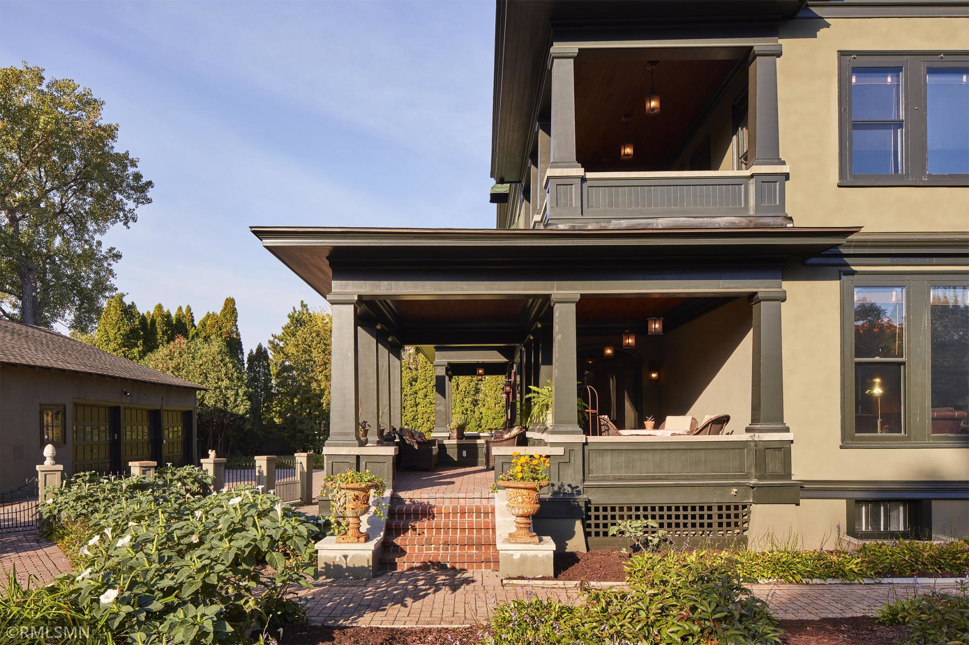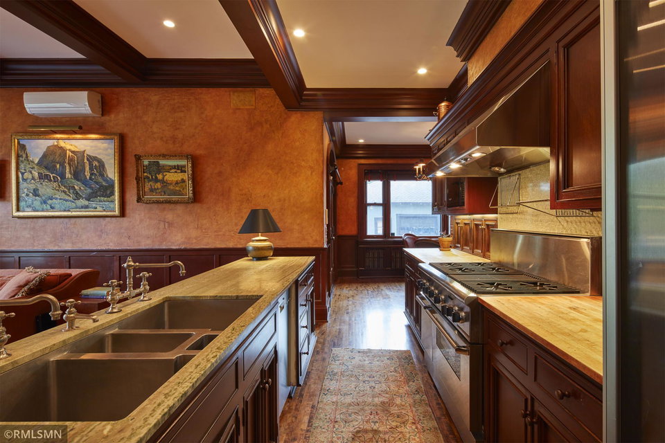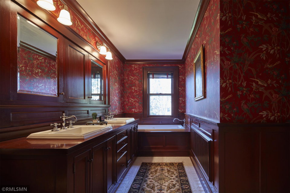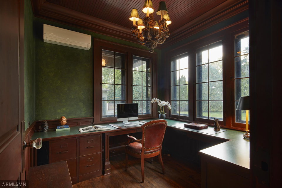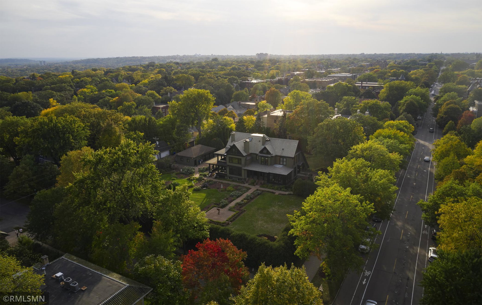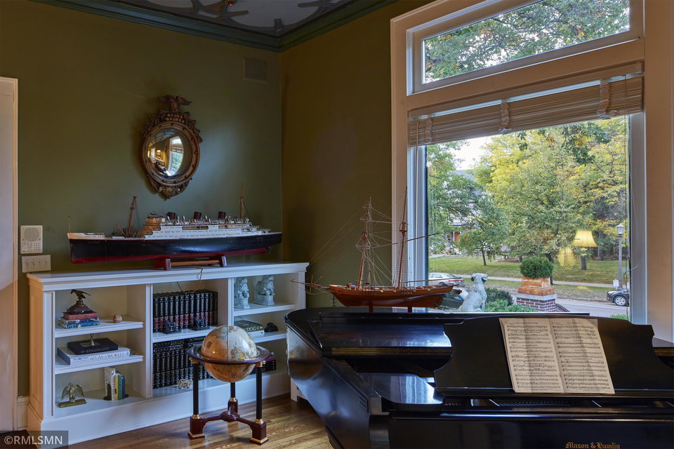 An Eclectic English Country Manor house, with architectural influences spanning the Arts & Crafts, Storybook and Victorian styles. Featuring its prominent “cat-slide” porte cochere, this remarkable estate remains one of St Paul’s most recognizable homes. Sitting on just over an acre and comprised of 5 lots on top of Historic Ramsey Hill this romantic home, originally built in 1882, has been expanded, preserved and cherished over the years. At approximately 8,500 finished square feet this 7 bedroom 8 bathroom home is both grand and comfortable. With 10 foot ceilings and abundant natural light, the layout is compelling and full of delights such as built-in cabinets, bay windows, ornamental carved plaster ceilings, six fireplaces, and numerous porches looking out upon the surrounding formal gardens. The third floor has 2 apartments, perfect for guests or tenants. The garden level contains a gym, a cedar sauna and steam shower and yet another apartment.