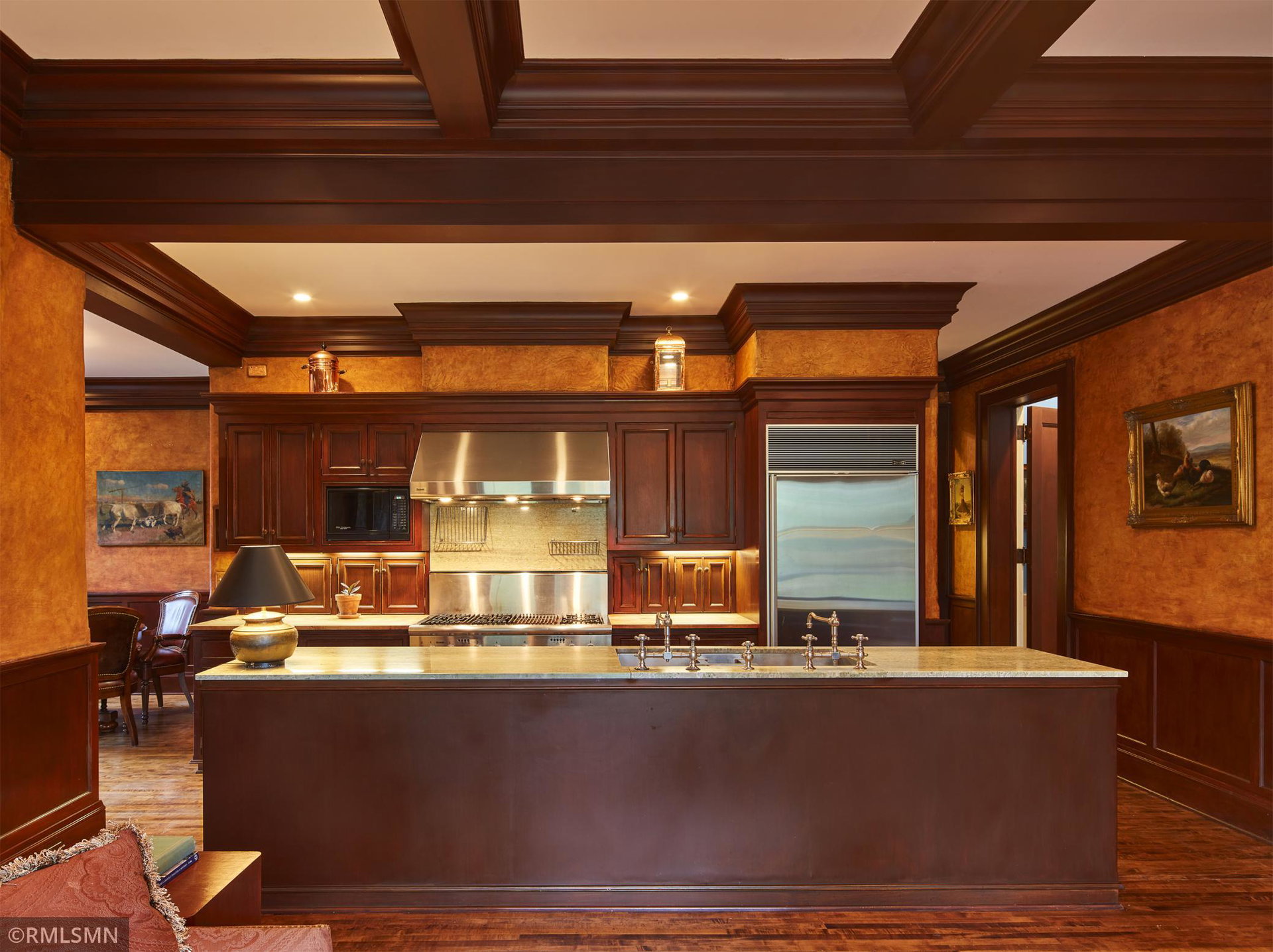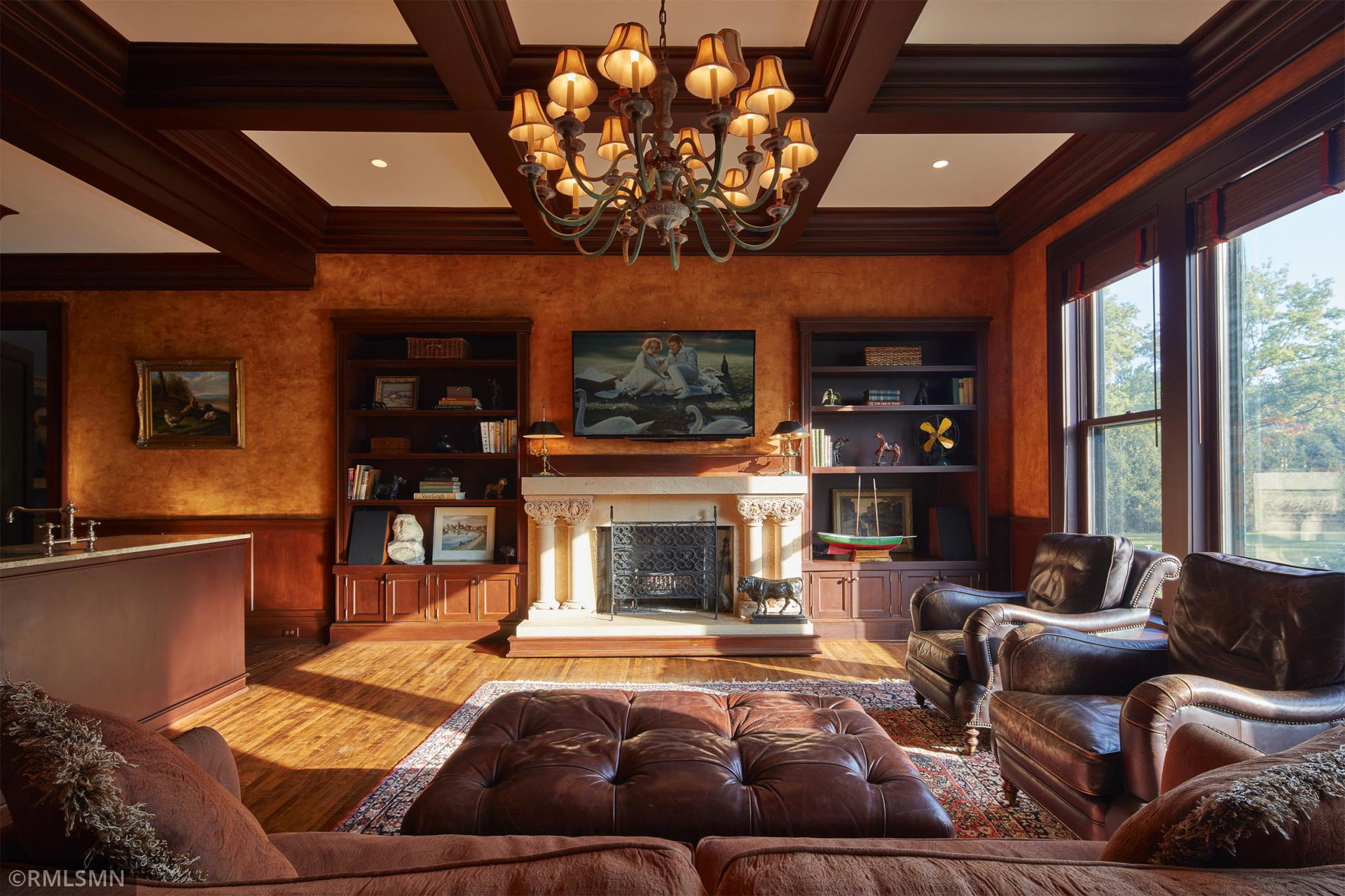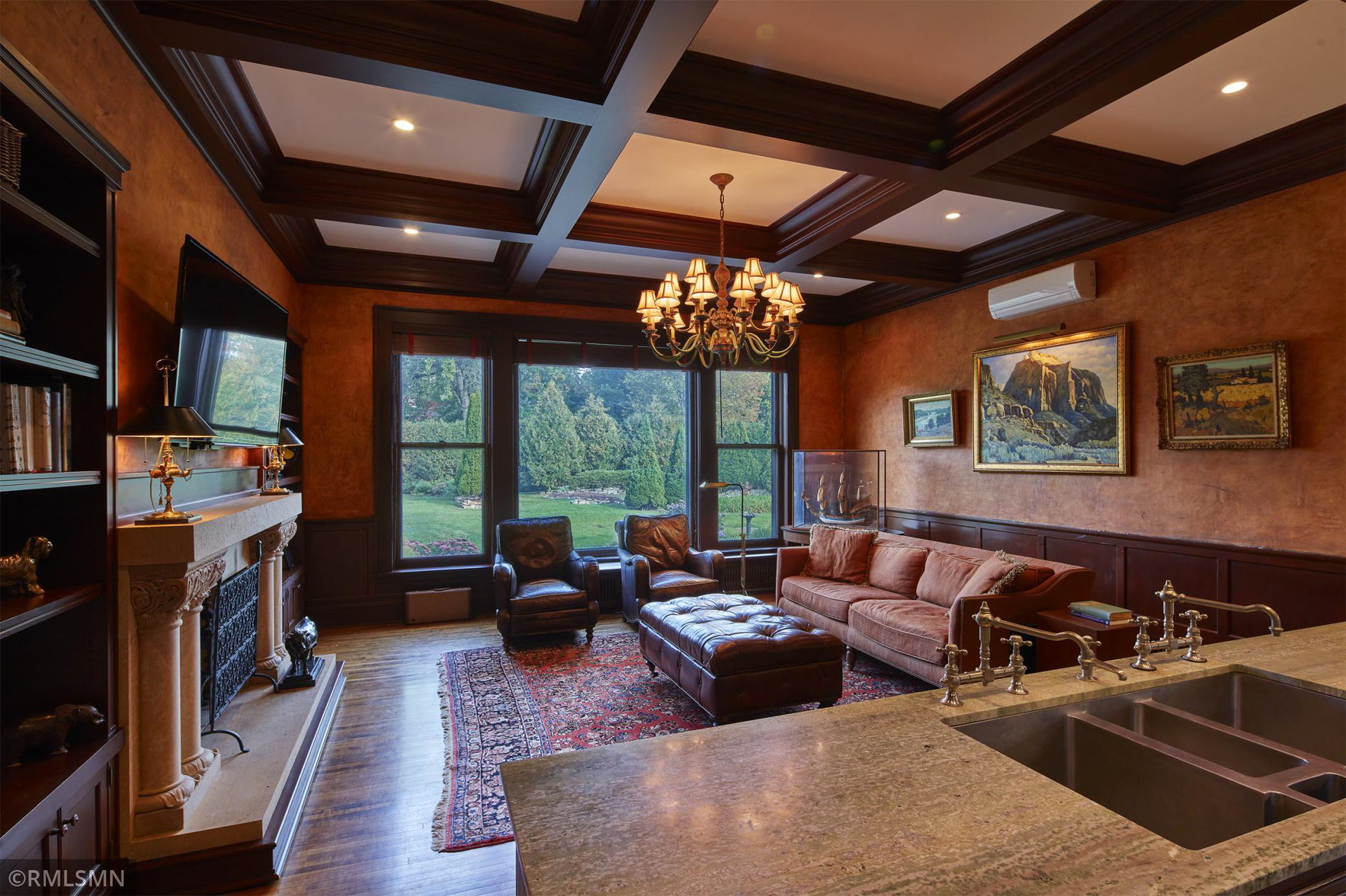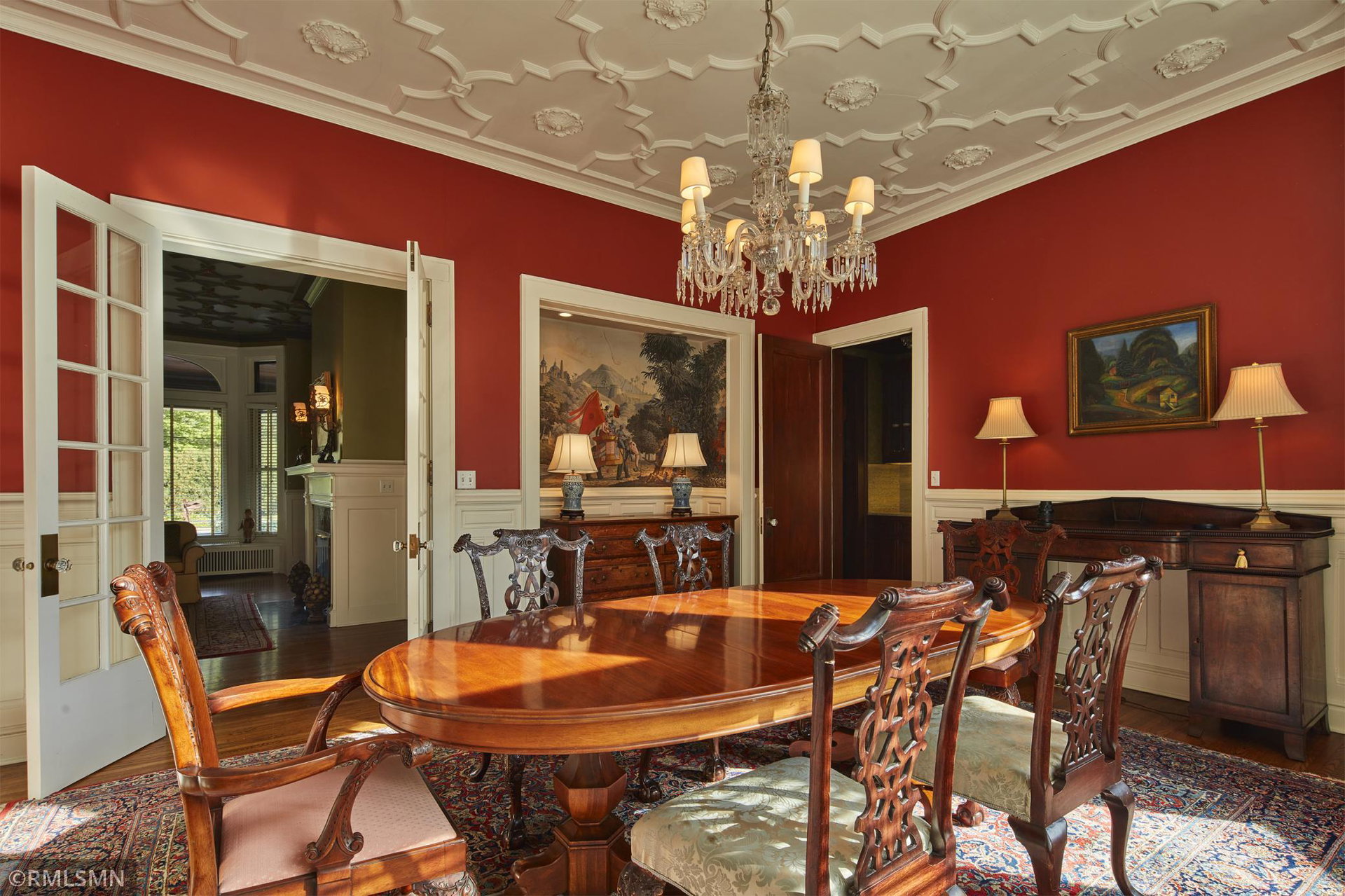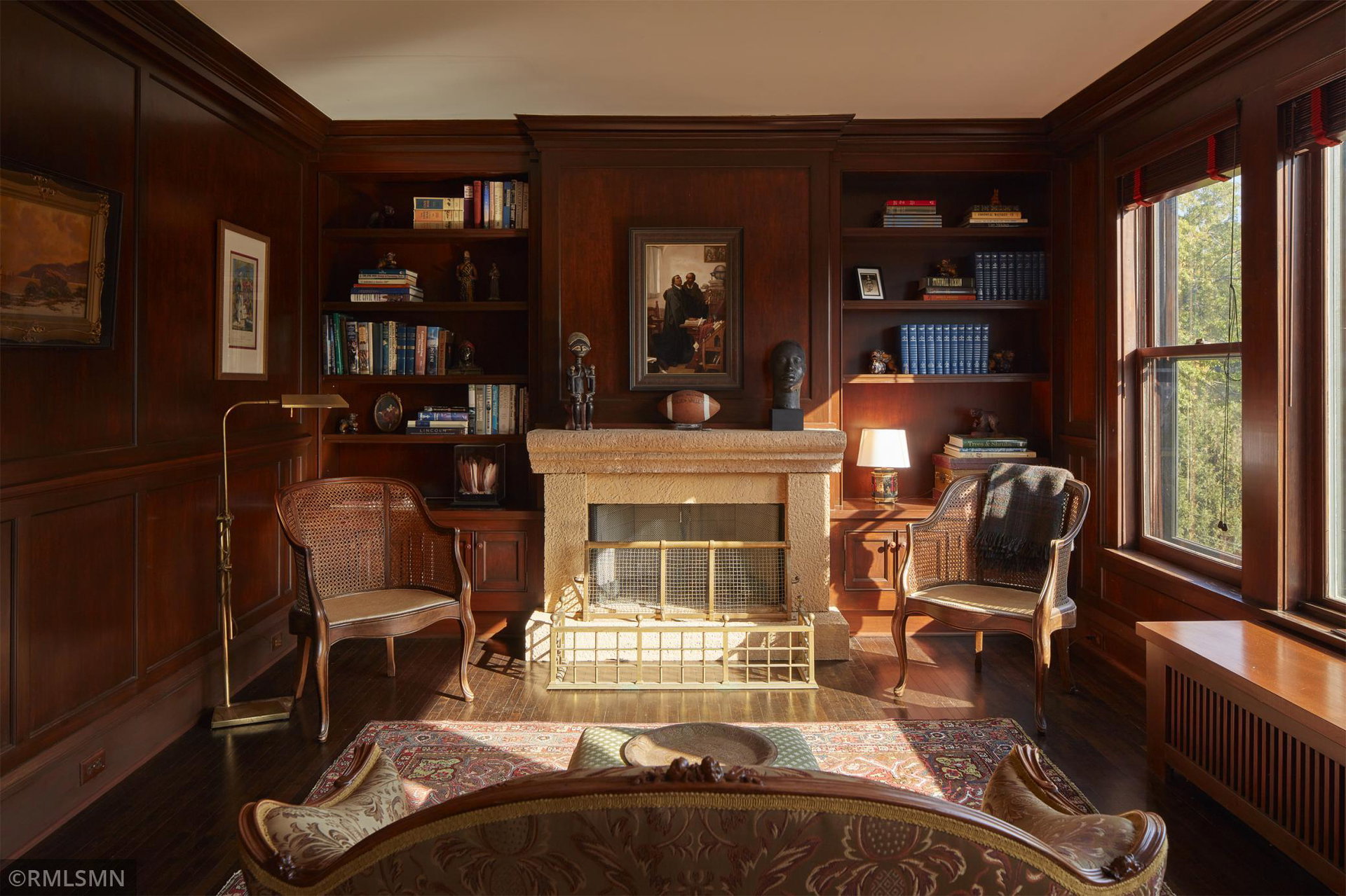 An Eclectic English Country Manor house, with architectural influences spanning the Arts & Crafts, Storybook and Victorian styles. Featuring its prominent “cat-slide” porte cochere, this remarkable estate remains one of St Paul’s most recognizable homes. Sitting on just over an acre and comprised of 5 lots on top of Historic Ramsey Hill this romantic home, originally built in 1882, has been expanded, preserved and cherished over the years. At approximately 8,500 finished square feet this 7 bedroom 8 bathroom home is both grand and comfortable. With 10 foot ceilings and abundant natural light, the layout is compelling and full of delights such as built-in cabinets, bay windows, ornamental carved plaster ceilings, six fireplaces, and numerous porches looking out upon the surrounding formal gardens. The third floor has 2 apartments, perfect for guests or tenants. The garden level contains a gym, a cedar sauna and steam shower and yet another apartment.