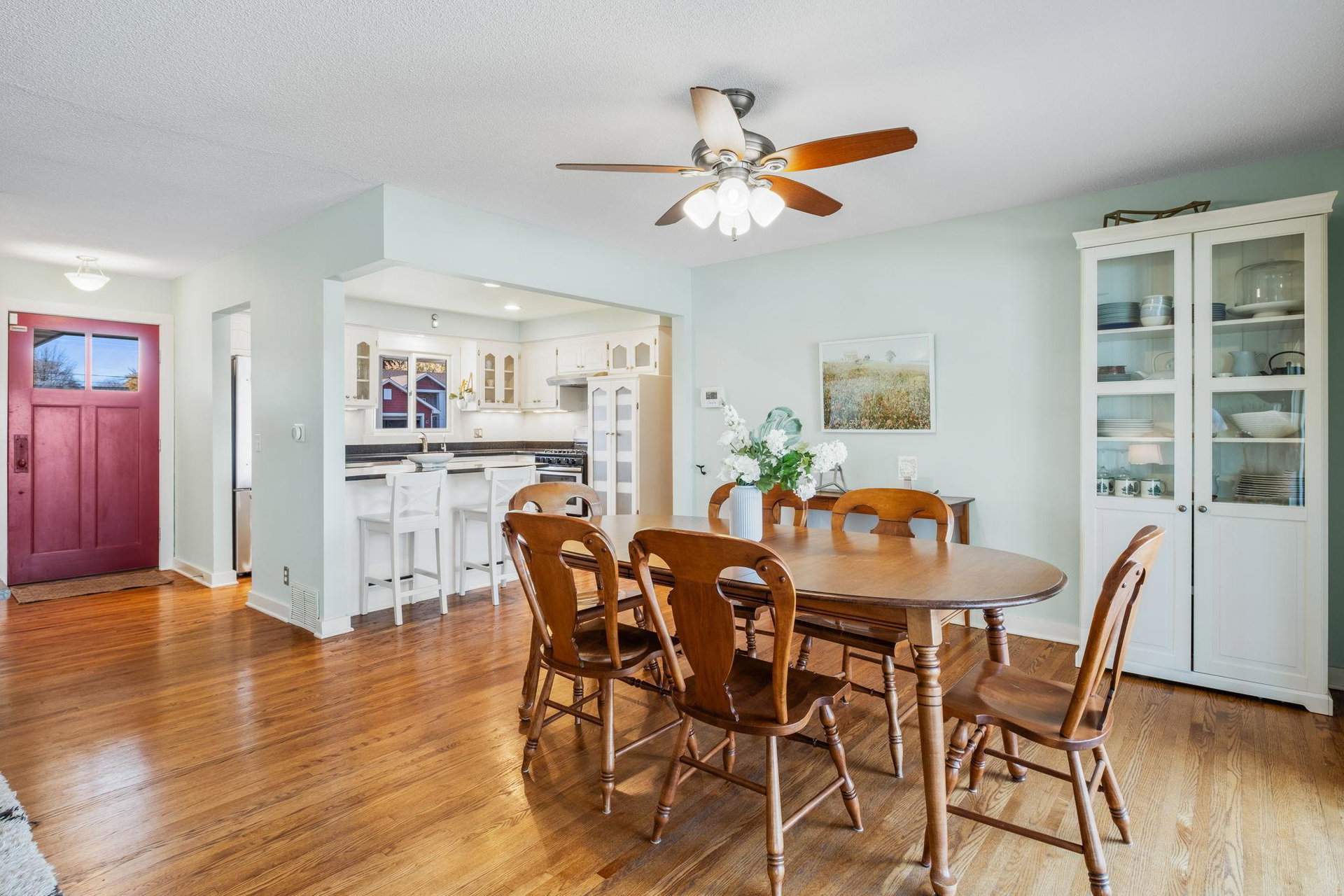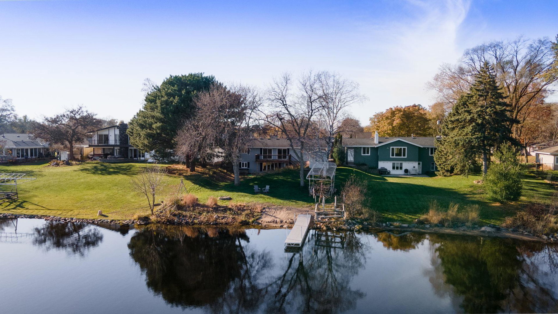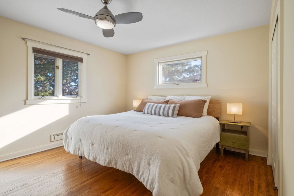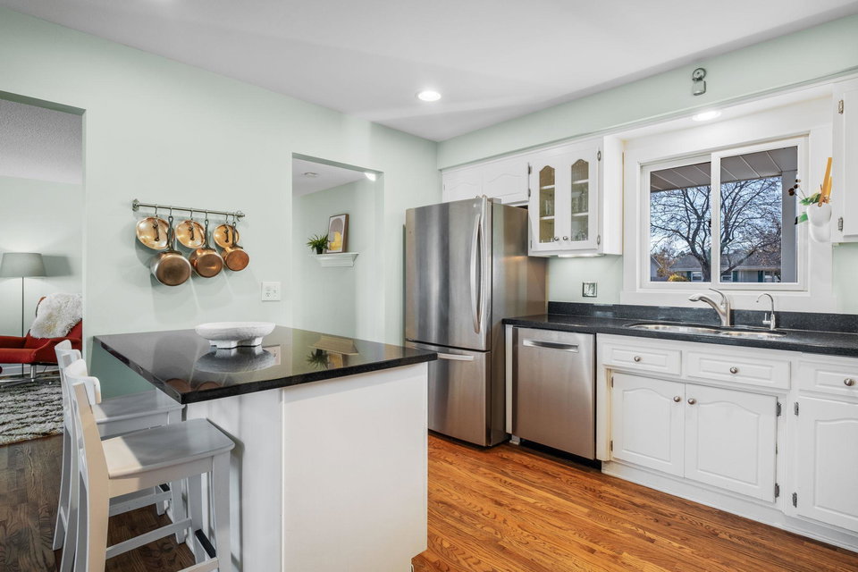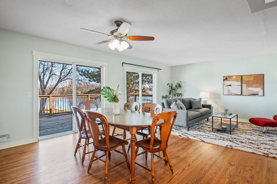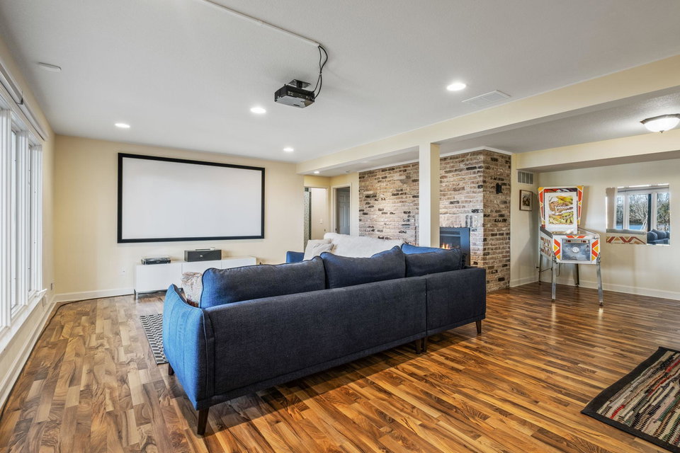Inspire your lifestyle with lake living conveniently located to the metro. Upper Twin Lake is a fully recreational sandy bottom lake offering swimming + fishing off the dock/personal beach or nearby island, prime water skiing, connection to Middle and Lower Twin Lake spanning 240 acres of a delightful dose of water or winter activities. This one story walkout 1960’s rambler boasts hardwood floors, three bedrooms on the main floor including a primary bedroom with private full bath and another 3/4 bath. Enjoy a functional eat-in kitchen, dining room and woodburning fireplace accompanying the living room with views of the lake. The lower level has a spacious walkout family room with projector, gas fireplace, light filled fourth bedroom and another 3/4 bath. Expansive view to a nature preserve across the lake, you will enjoy community and privacy here. 220 volt power available in the garage for level 2 EV charging, beautiful gardens welcome pollinators, furnace + A/C installed 2020.
