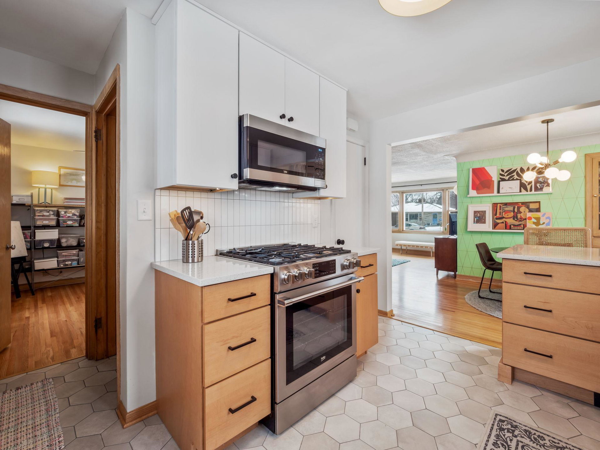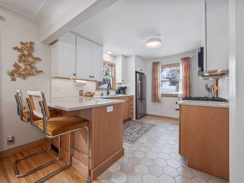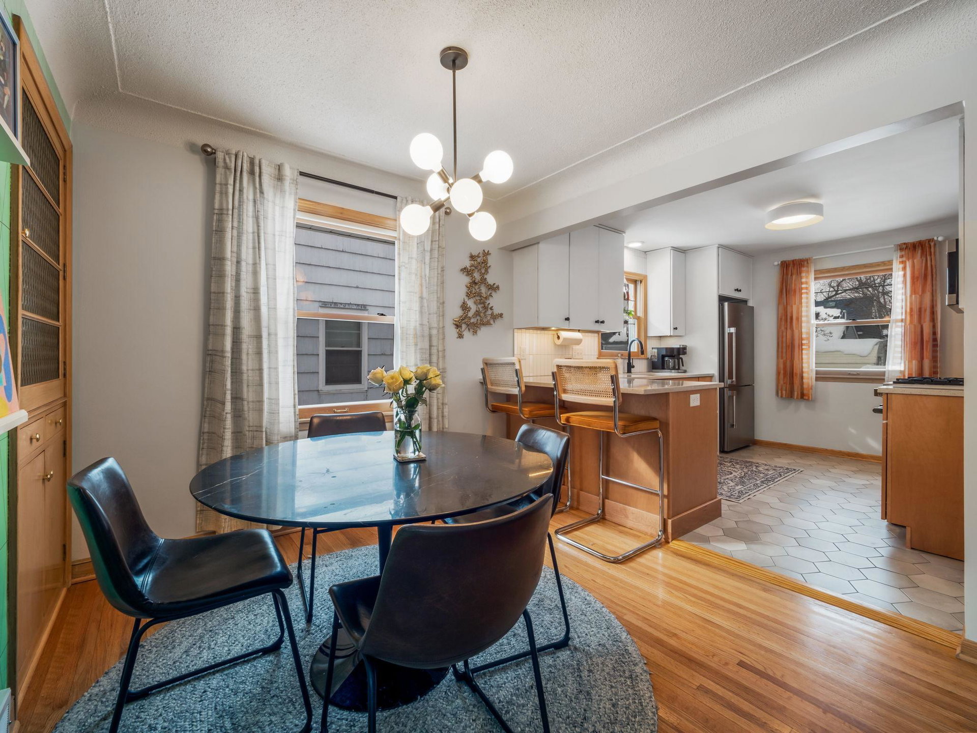 **Multiple offers Highest & Best 6pm 3/12. You will LOVE this Bodacious Brick Rambler! Located just a few blocks from Diamond Lake! With thoughtful updates that maintain the authentic Mid-Century charm, this open and airy 4 Bed 2 Bath home has great living and entertaining space. The stylishly renovated eat-in kitchen with quartz countertops, stainless steel appliances, opens nicely to the dining and living rooms. With beautiful oak floors and great natural light throughout, the main level has 3 bedrooms with a passthrough room that works perfectly for a home office. The main bathroom is a Vintage Dream featuring original salmon & cranberry tile. The finished lower level is a VIBE! You will love the paneled pine walls with scalloped trim, swanky bar, rec/family room with a 2nd wood burning fireplace, large 4th bedroom, and another perfectly preserved vintage bathroom. Your 3-season porch overlooks the concrete patio, fenced yard, & oversized 2-car garage. Check this one out right away!