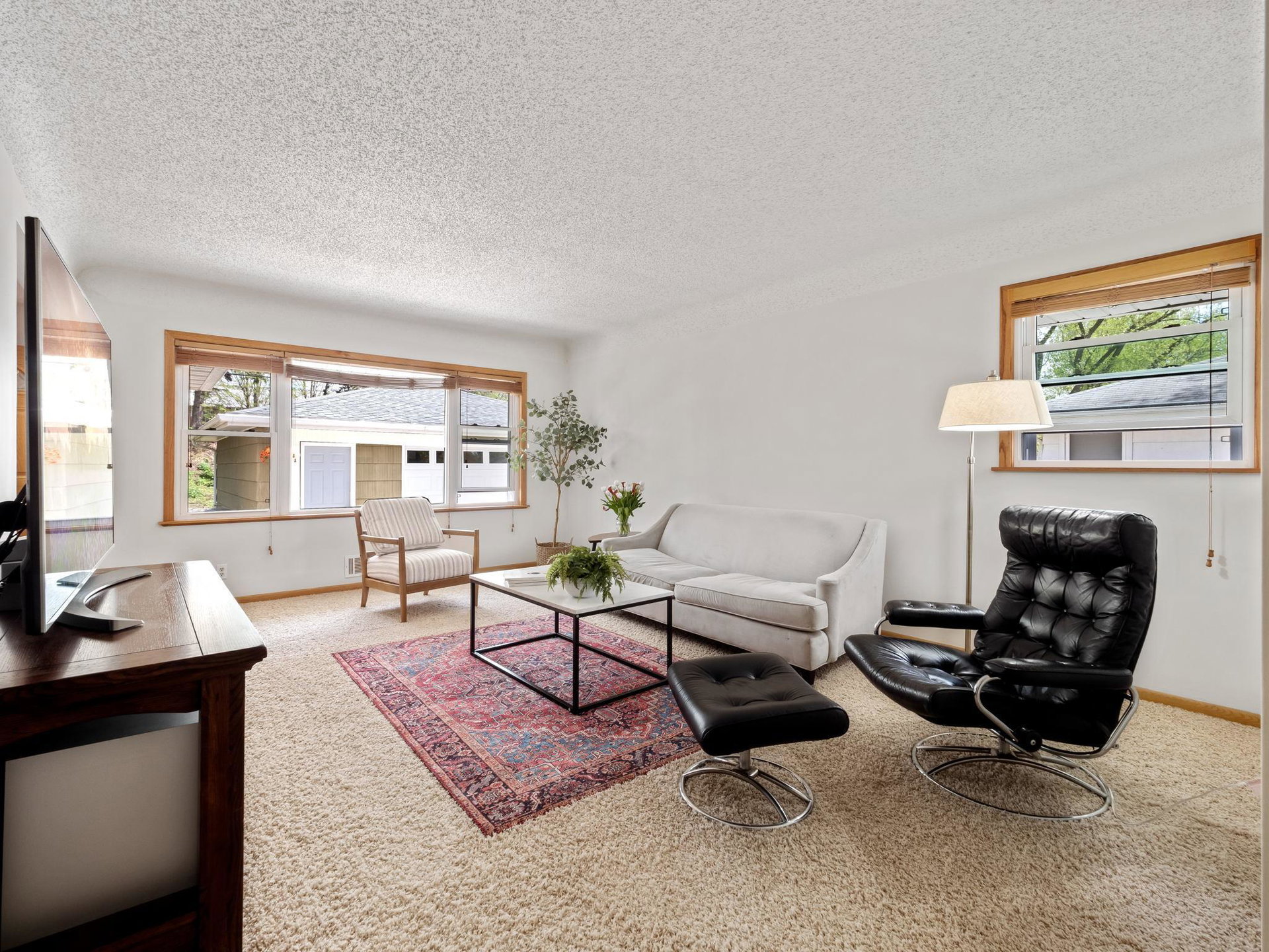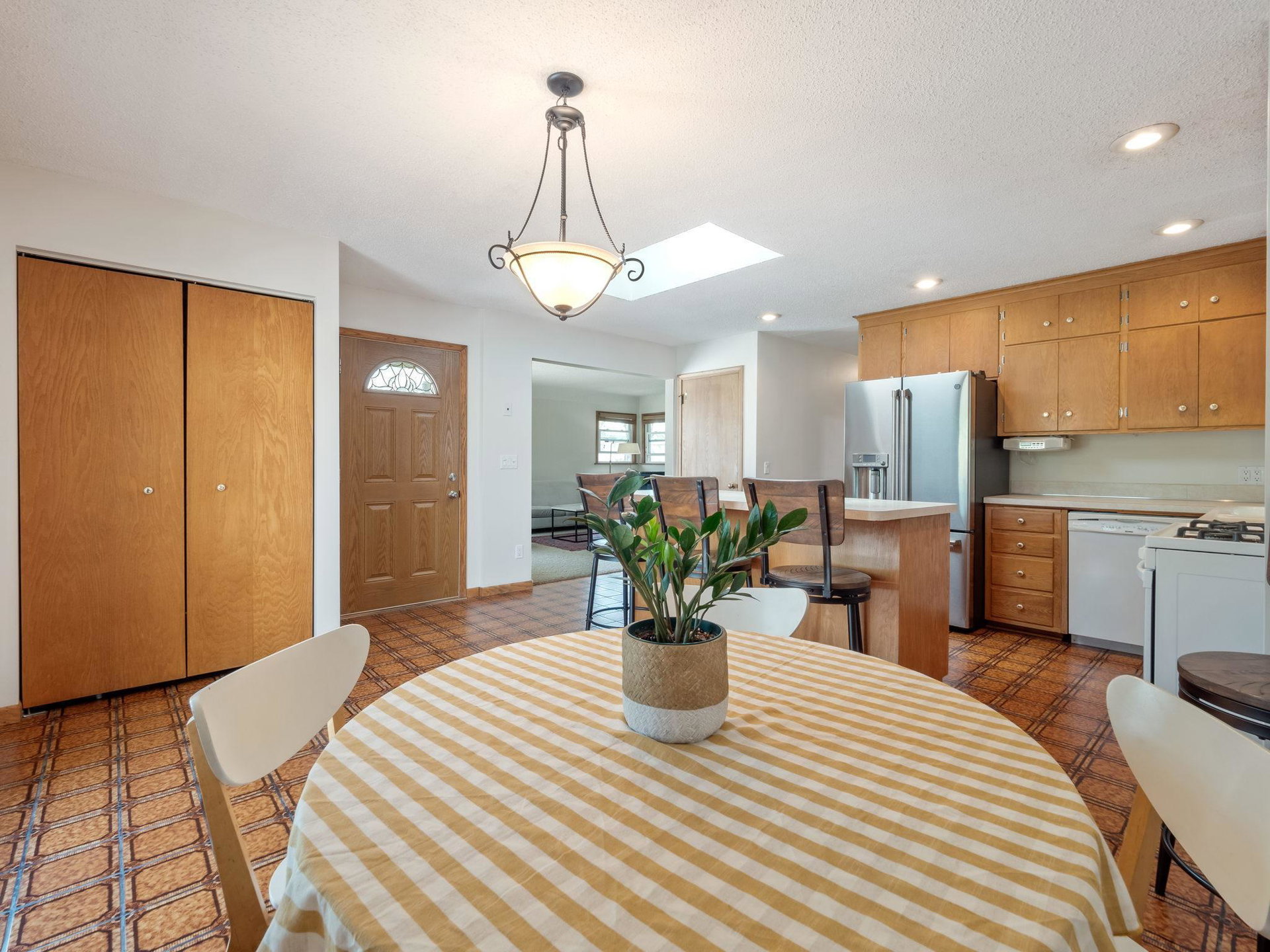 **MULTIPLE OFFERS RECEIVED. Highest and Best by 8p 5/20*** This stylish mid-century rambler with a great floor plan is ready for its new owners! Great flow from the spacious living room to the open eat in kitchen with large patio doors connecting to the deck and private back yard – this home lives well! Fresh paint, new flooring and great storage throughout! Finished flexible lower level – great for family room, rumpus room, exercise room, or work from home space and a clean finished laundry room. Nicely updated mechanicals include a new AC unit with Heat Pump that makes for very low heating bills! Come check it out!