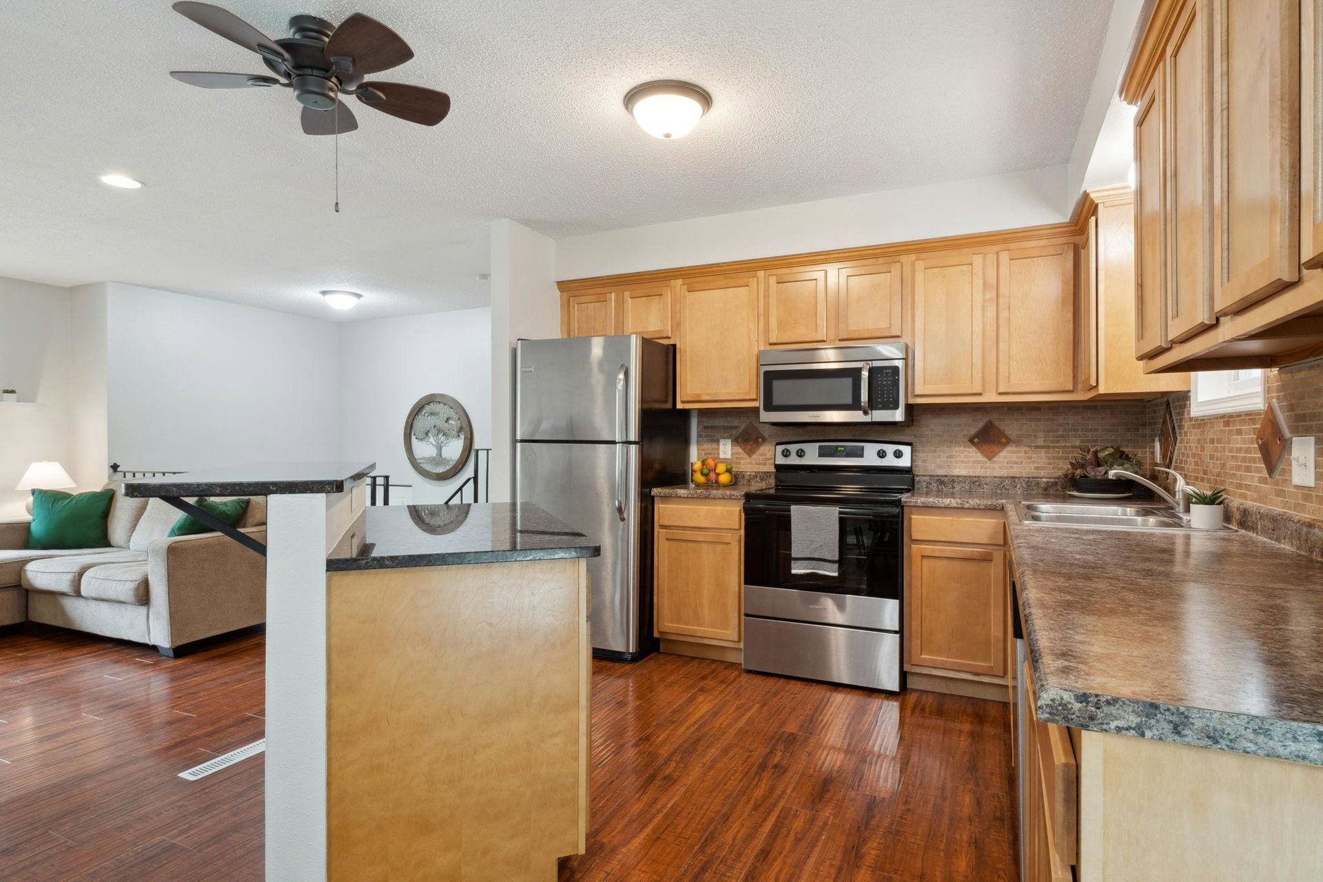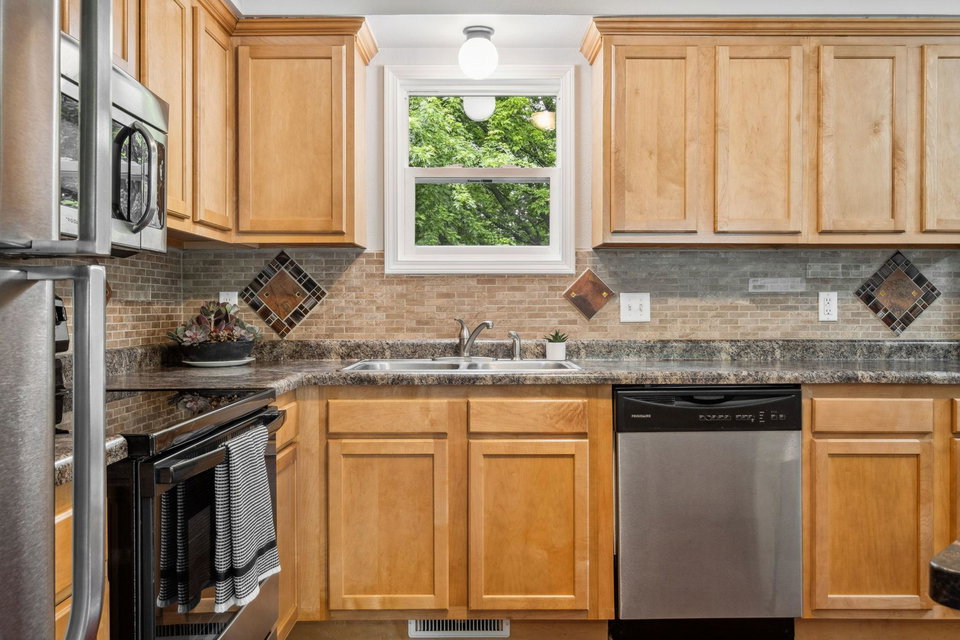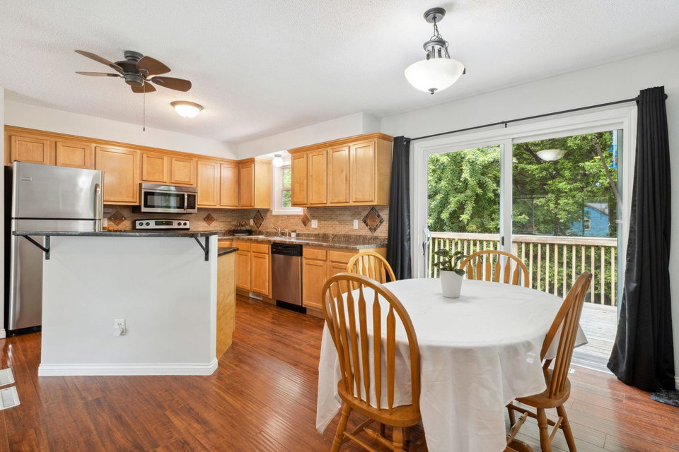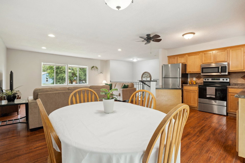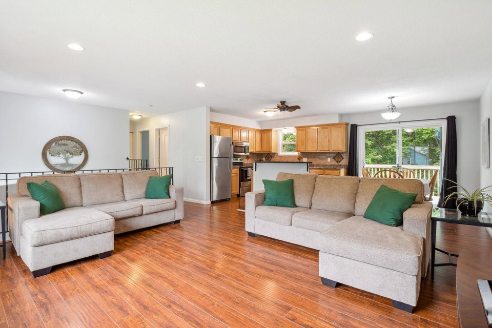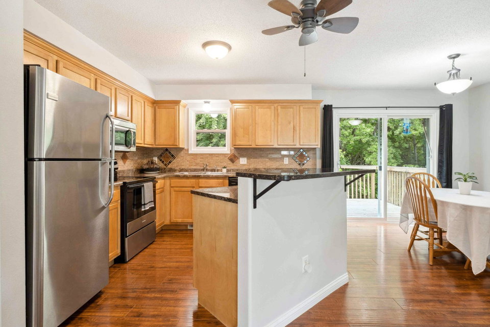 This immaculately maintained split-entry home in Brooklyn Park is ready for you! You will love this classic 4 bed, 2 bathroom layout featuring an open floor plan with bright sun-filled space! The updated kitchen features SS appliances, maple cabinets, center island with granite counter and informal dining room opening up to a large deck ready for hosting. There are two large bedrooms and a full bathroom upstairs with two more sun-filled bedrooms and a 3/4 bathroom downstairs. The spacious lower level family room offers ample flex space for hanging out or for using as a home office. Walk-out of the basement to the fenced-in, tree lined back yard with fire pit and plenty of space for recreational activities! – Other updates include newer roof (2016), new water heater (2019), exterior paint (2021), new oven and LVP flooring in 2023 and new carpet and interior paint in 2024. Come check this one out today!