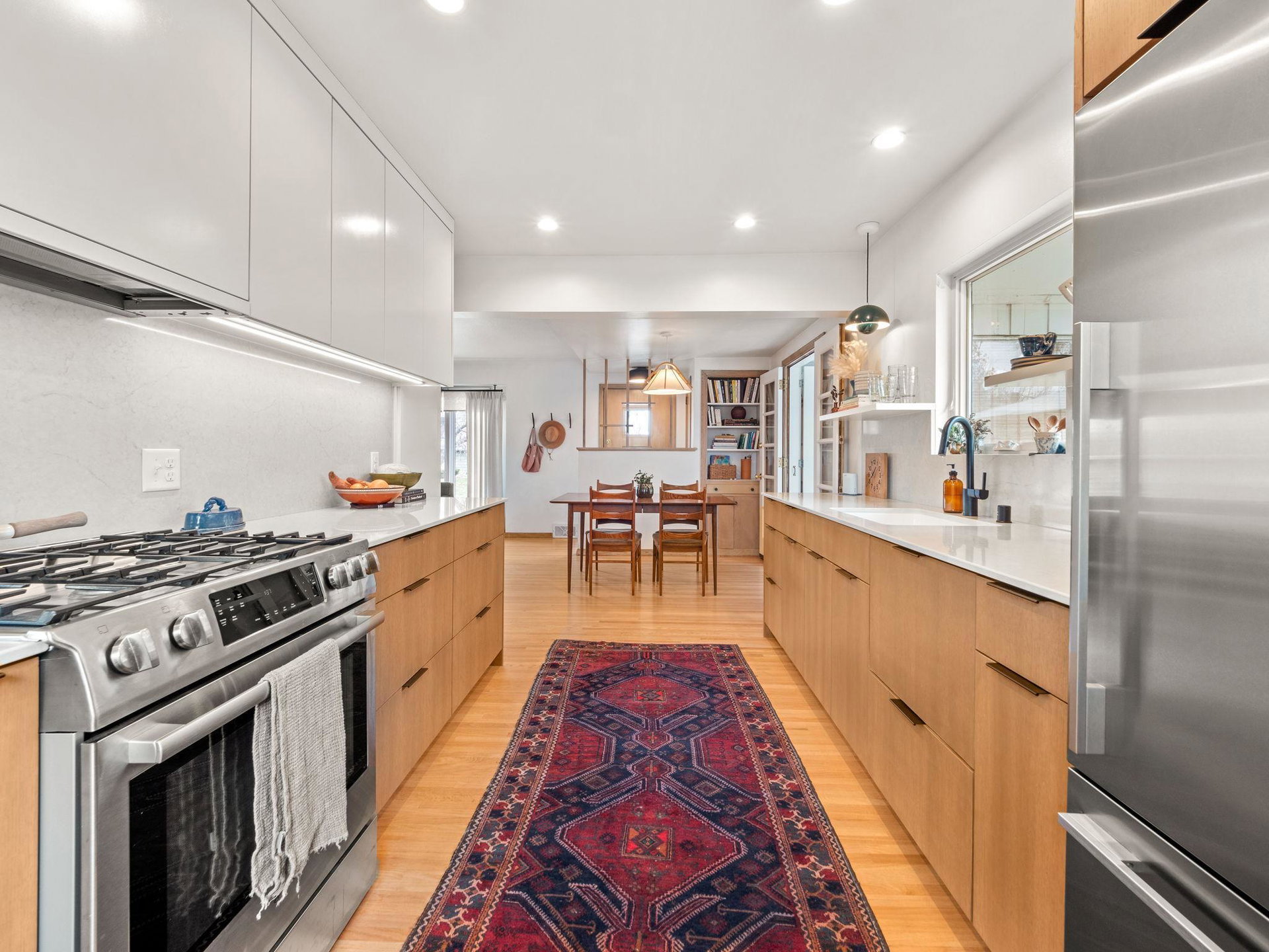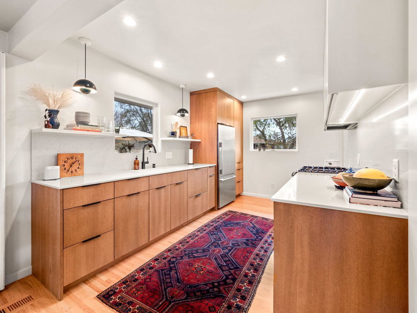 Multiple Offers / Offer Deadline 8PM Sunday! Stylish Mid-Century Rambler with Chic Modern Designer Finishes! You will SWOON over the Fully Renovated Open Kitchen with its Sleek Rift Sawn White Oak Cabinetry, Clean Solid Surface Countertops and Stainless Steel Appliances. The Main level of the home Flows Effortlessly, with Beautiful Refinished Hardwood Floors, Abundant Natural Light, A Perfect Vintage Bathroom and Inspired Decor with Fresh Paint Throughout. The sunny 3 season side porch leads you to the HUGE Landscaped backyard with Sunny Cedar Deck, Chic Concrete Paver Patio, which are great for entertaining. The Cozy Lower Level is a Great Flexible Space, where you can Relax with Family and Friends, Watch TV, Work From Home, or Exercise! Additional updates include; New Windows, New Furnace, 2 New Gas Fireplaces, New Gutters… Hurry to see this one!