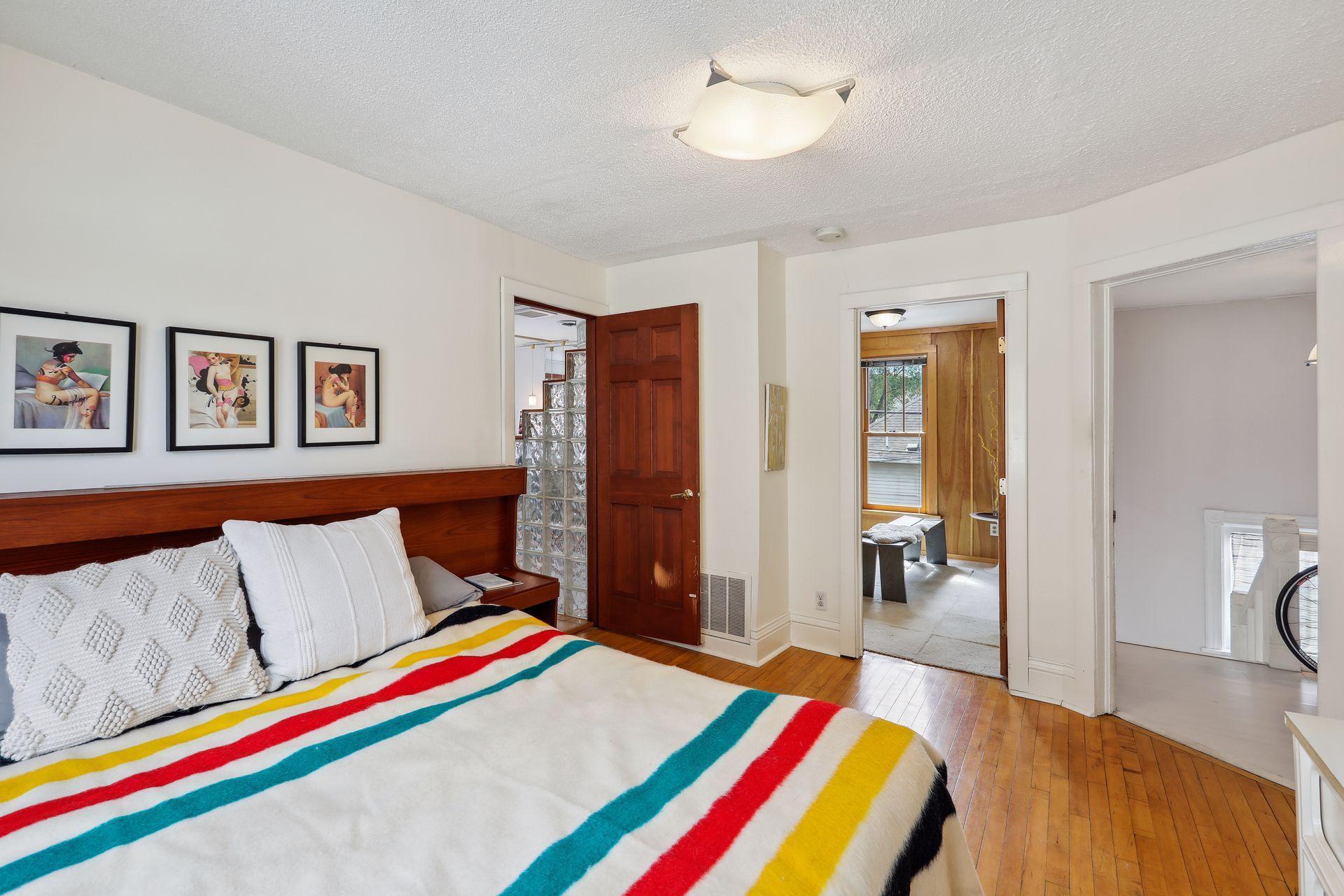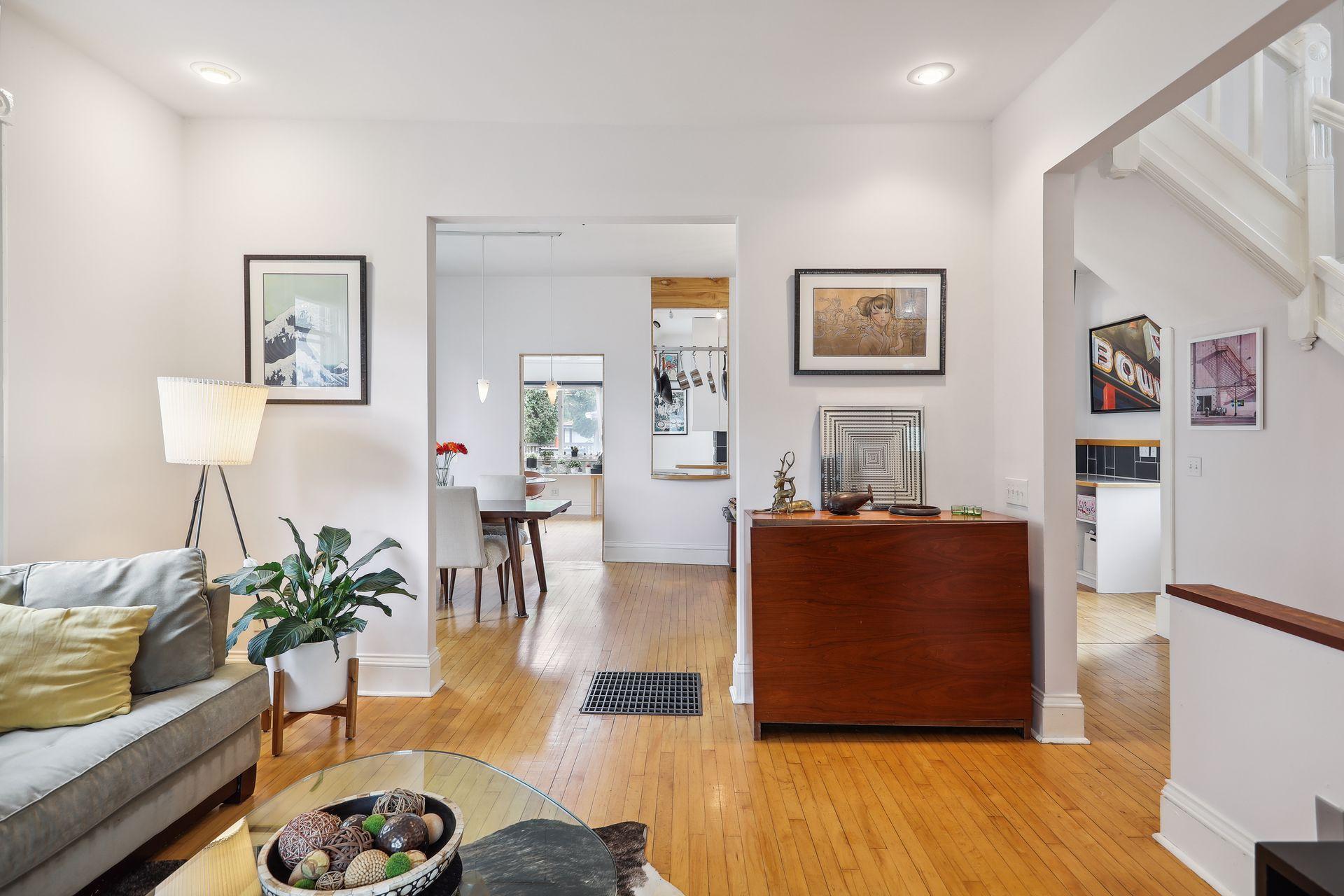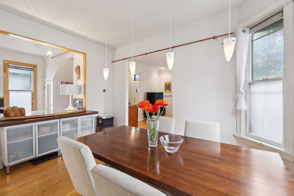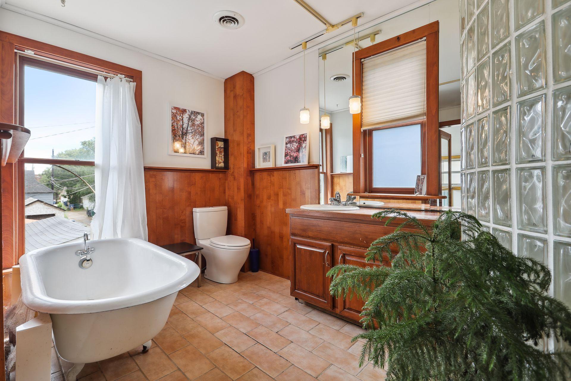 Converted from a duplex to a single family home, this New York Loft meets Victorian is very unique. The light-filled main level offers a spacious living + dining room featuring high ceilings + period moldings, with sightlines to the generous chef’s kitchen and breakfast room. A marble clad three-quarter bathroom completes this level. Upstairs one enters a wood-paneled vestibule leading to a large bedroom. The primary bedroom suite boasts a paneled dressing room, bathroom with walk-in shower, clawfoot tub, and large vanity, in addition to the lofted office space. A fenced yard with deck + patio, 2 car garage, and full basement with laundry round out this wonderful house. You won’t want to miss this truly special home!