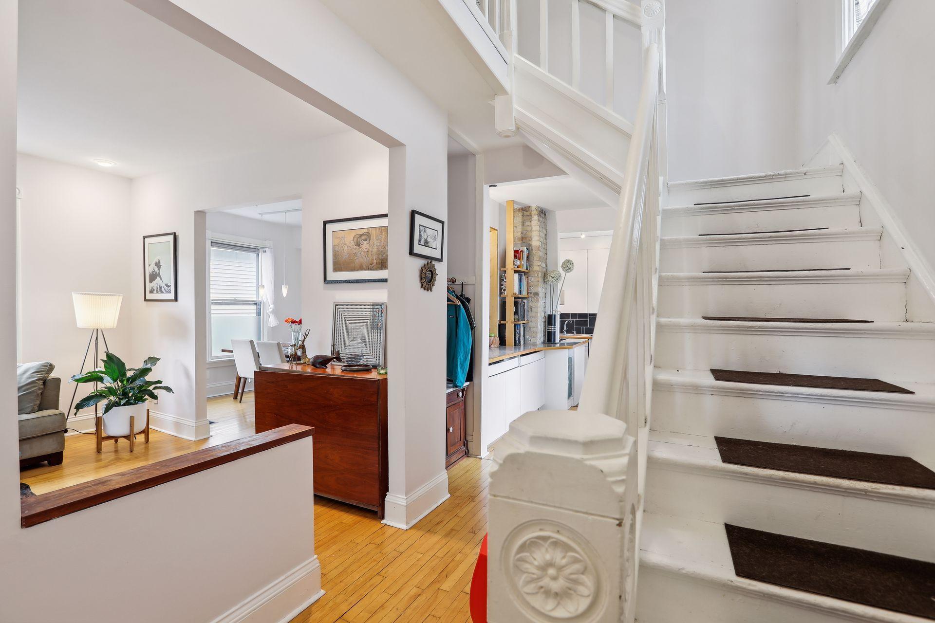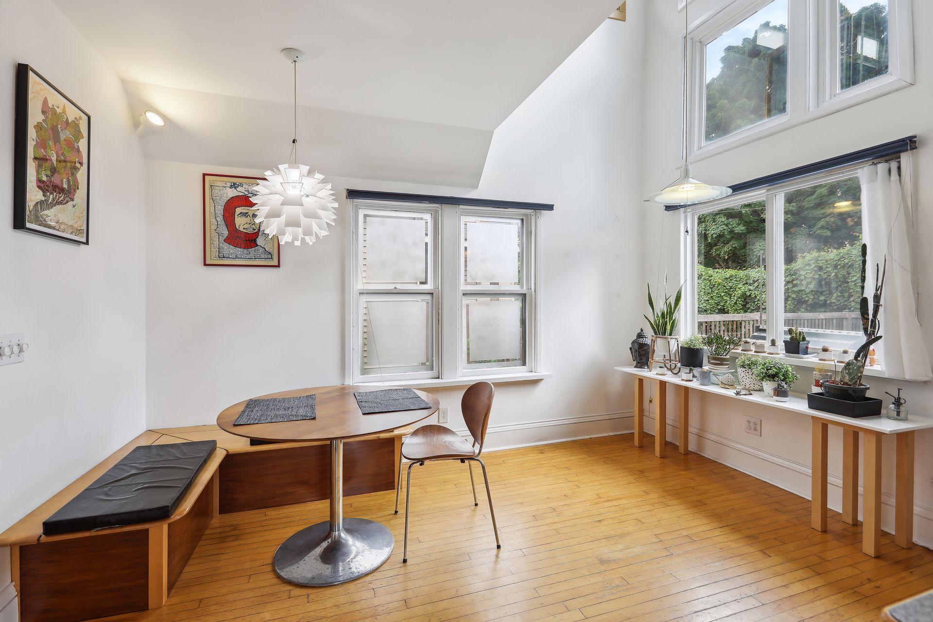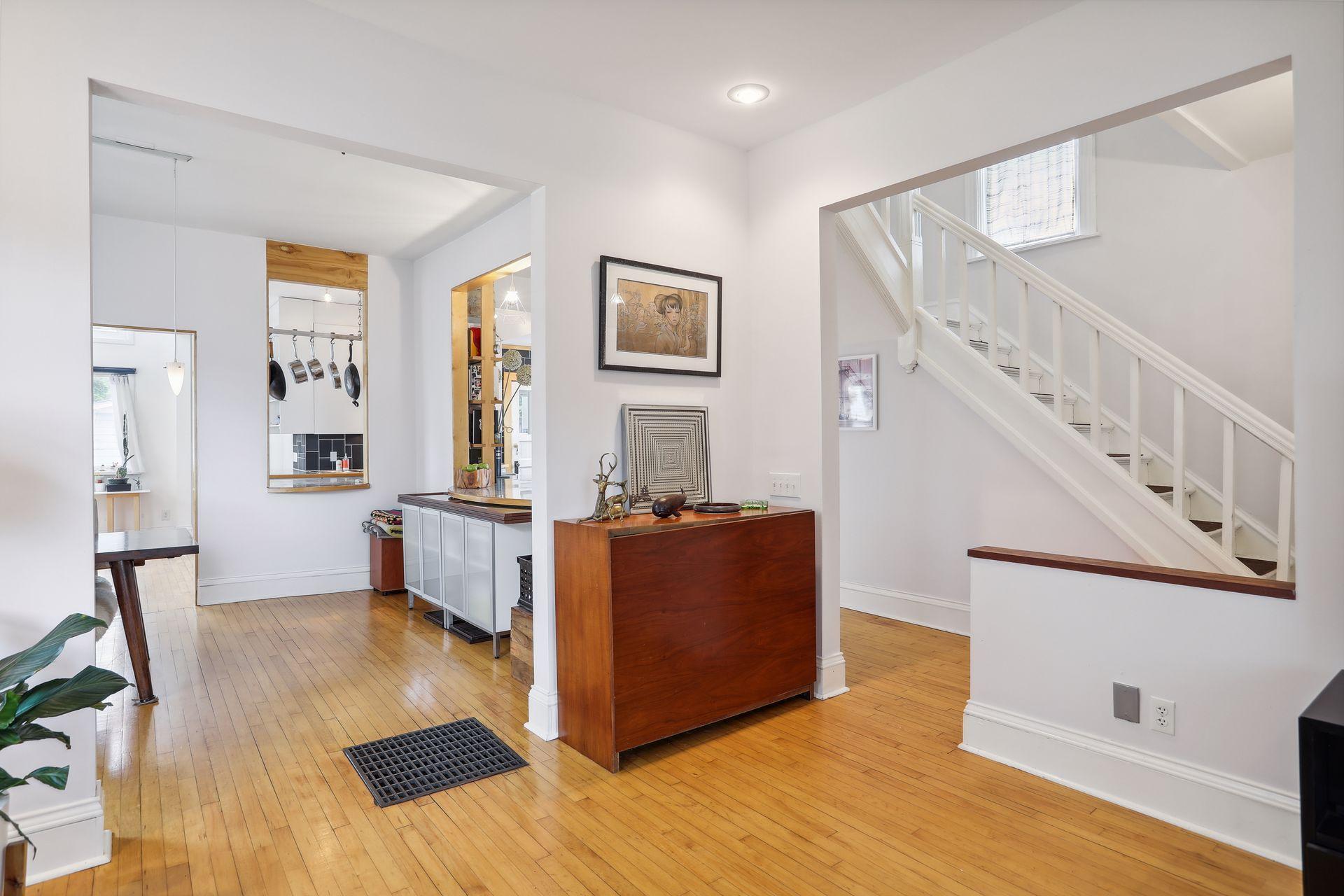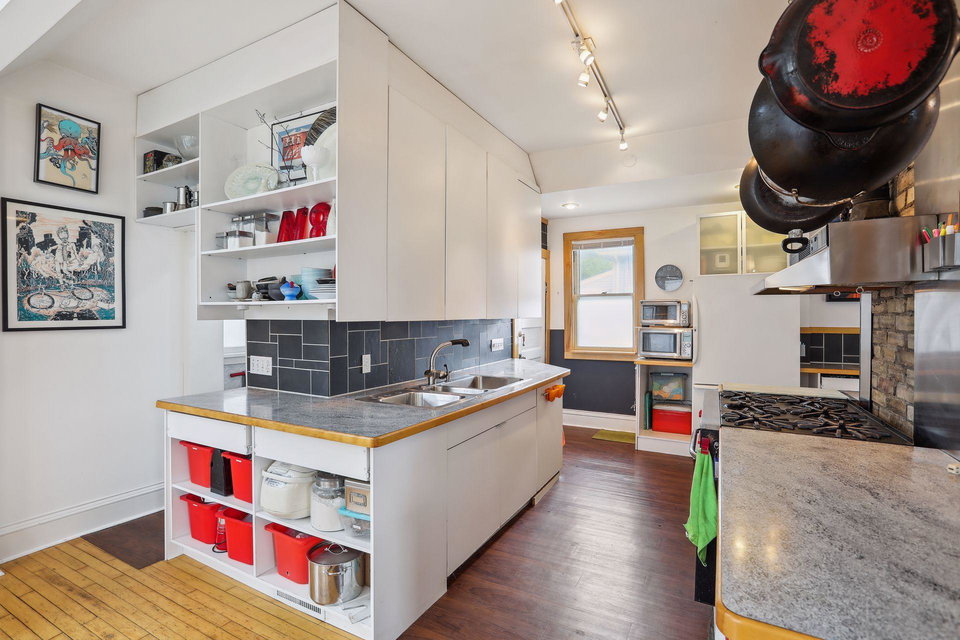 Converted from a duplex to a single family home, this New York Loft meets Victorian is very unique. The light-filled main level offers a spacious living + dining room featuring high ceilings + period moldings, with sightlines to the generous chef’s kitchen and breakfast room. A marble clad three-quarter bathroom completes this level. Upstairs one enters a wood-paneled vestibule leading to a large bedroom. The primary bedroom suite boasts a paneled dressing room, bathroom with walk-in shower, clawfoot tub, and large vanity, in addition to the lofted office space. A fenced yard with deck + patio, 2 car garage, and full basement with laundry round out this wonderful house. You won’t want to miss this truly special home!