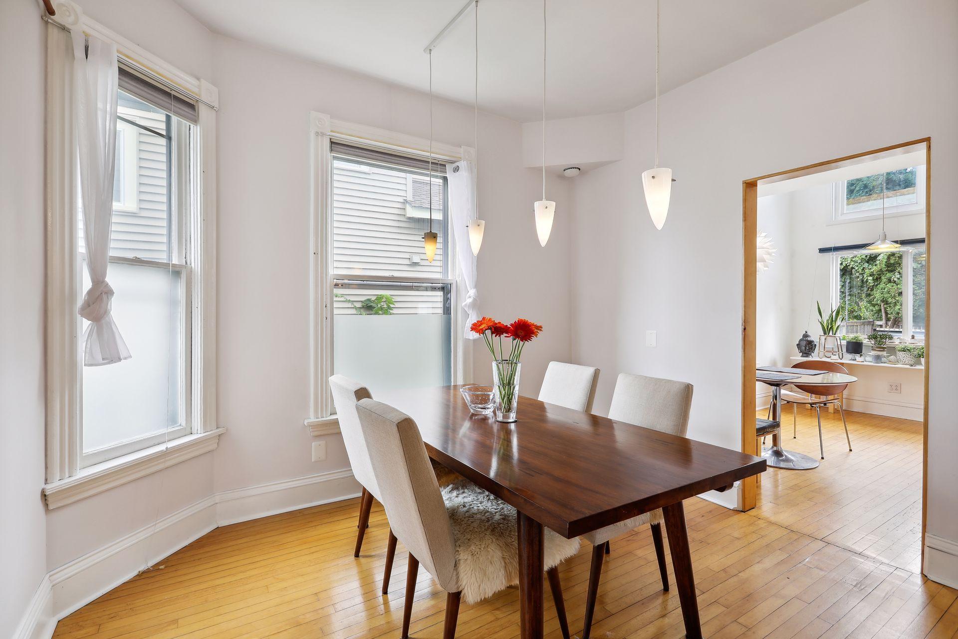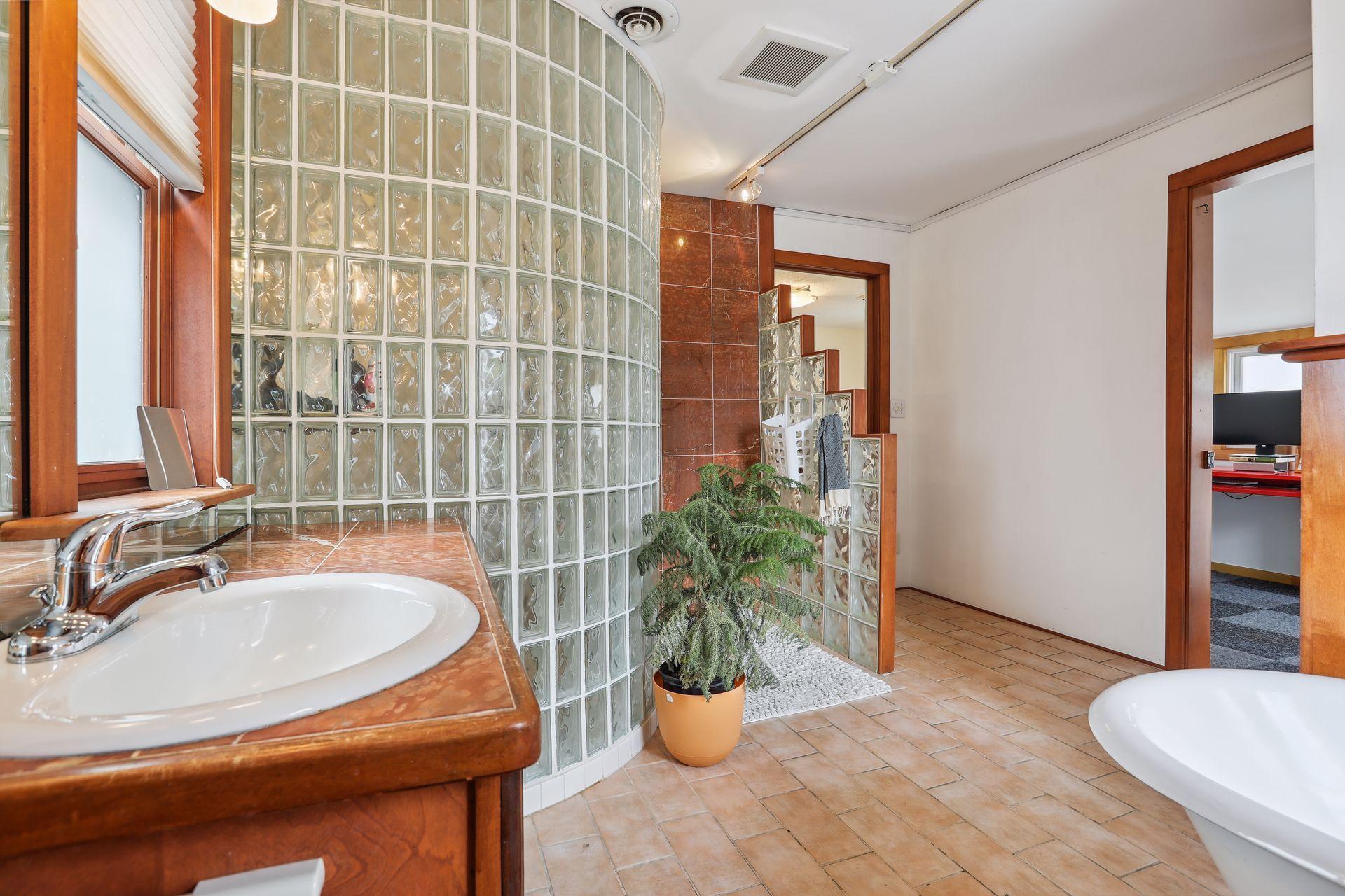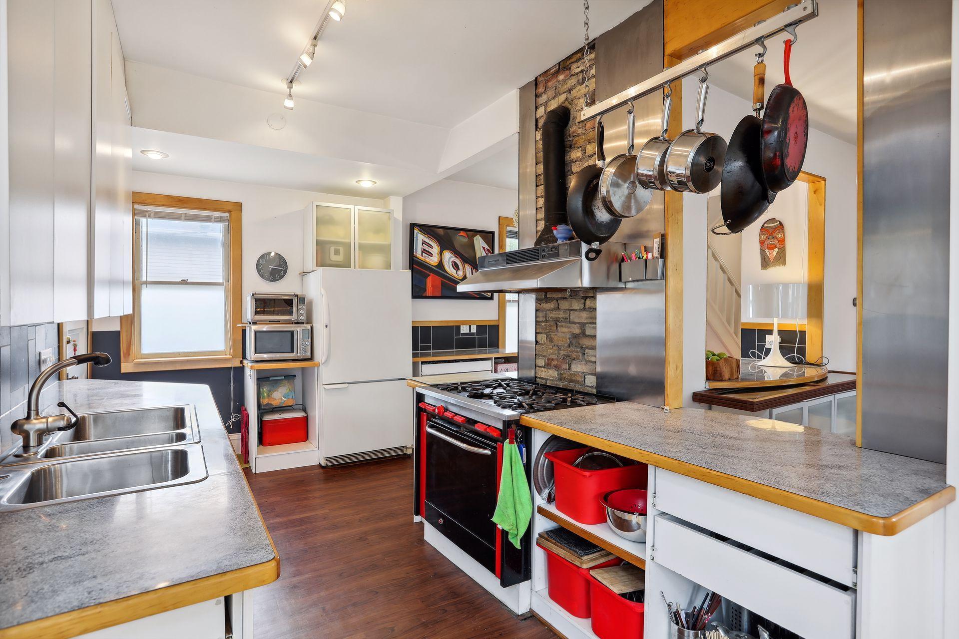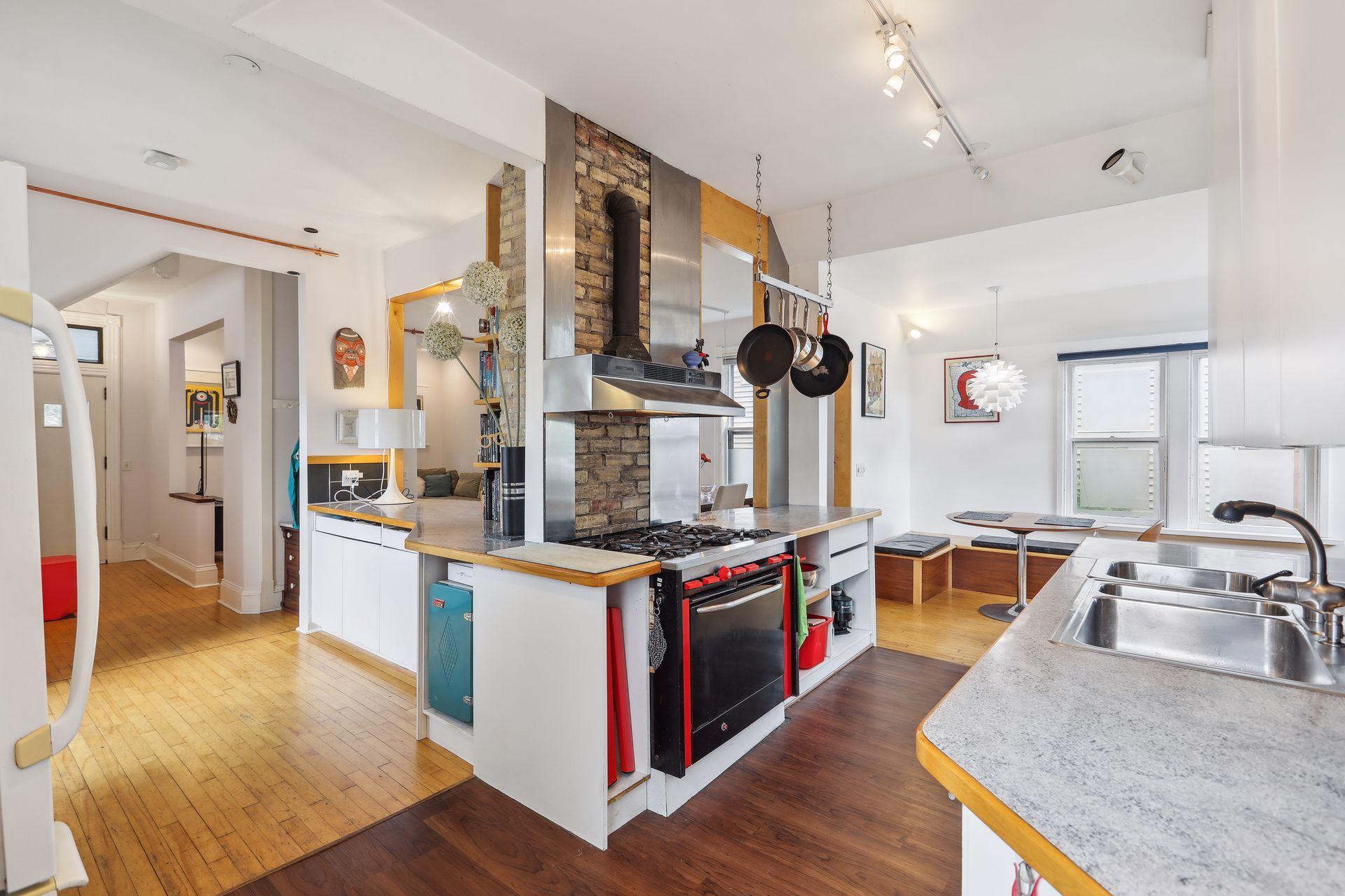 Converted from a duplex to a single family home, this New York Loft meets Victorian is very unique. The light-filled main level offers a spacious living + dining room featuring high ceilings + period moldings, with sightlines to the generous chef’s kitchen and breakfast room. A marble clad three-quarter bathroom completes this level. Upstairs one enters a wood-paneled vestibule leading to a large bedroom. The primary bedroom suite boasts a paneled dressing room, bathroom with walk-in shower, clawfoot tub, and large vanity, in addition to the lofted office space. A fenced yard with deck + patio, 2 car garage, and full basement with laundry round out this wonderful house. You won’t want to miss this truly special home!