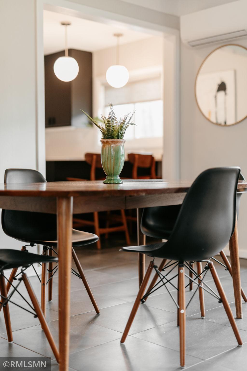 *Multiple offers received. Highest and Best due by 8p Saturday, April 17th.* Sleek and Stylish Mid-Century Modern home near Diamond Lake in South Minneapolis! Located on a quiet street with a double lot, this home has been thoughtfully updated by its current stewards. Some of the many updates and special features include; Super Sharp Newly Remodeled Kitchen with Quartz Countertops, Stainless Steel Appliances and Great Fixtures, Updated Bathrooms with Contemporary Finishes, a Deep Soaking Tub and Double Vanity, Abundant Natural Light, Cozy & Efficient In-Floor Heating and Mini-Split Cooling, Sturdy Tile Floors Throughout, Wood Burning Fireplace, Mahogany Paneled Study, 4 Season Sunroom, All Living Facilities on one level, Large fenced yard, Big Concrete Patio, Attached Garage… Come check this one out!