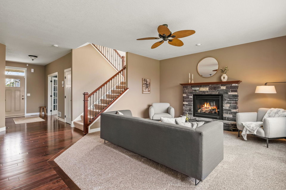 Built in 2014 with a recently finished walkout basement, this home offers over five bedrooms, four bathrooms, and spacious, light-filled living areas. Highlights include black stainless appliances, two gas fireplaces, vaulted ceilings in the three-car garage, and a dedicated main-floor office with French doors.