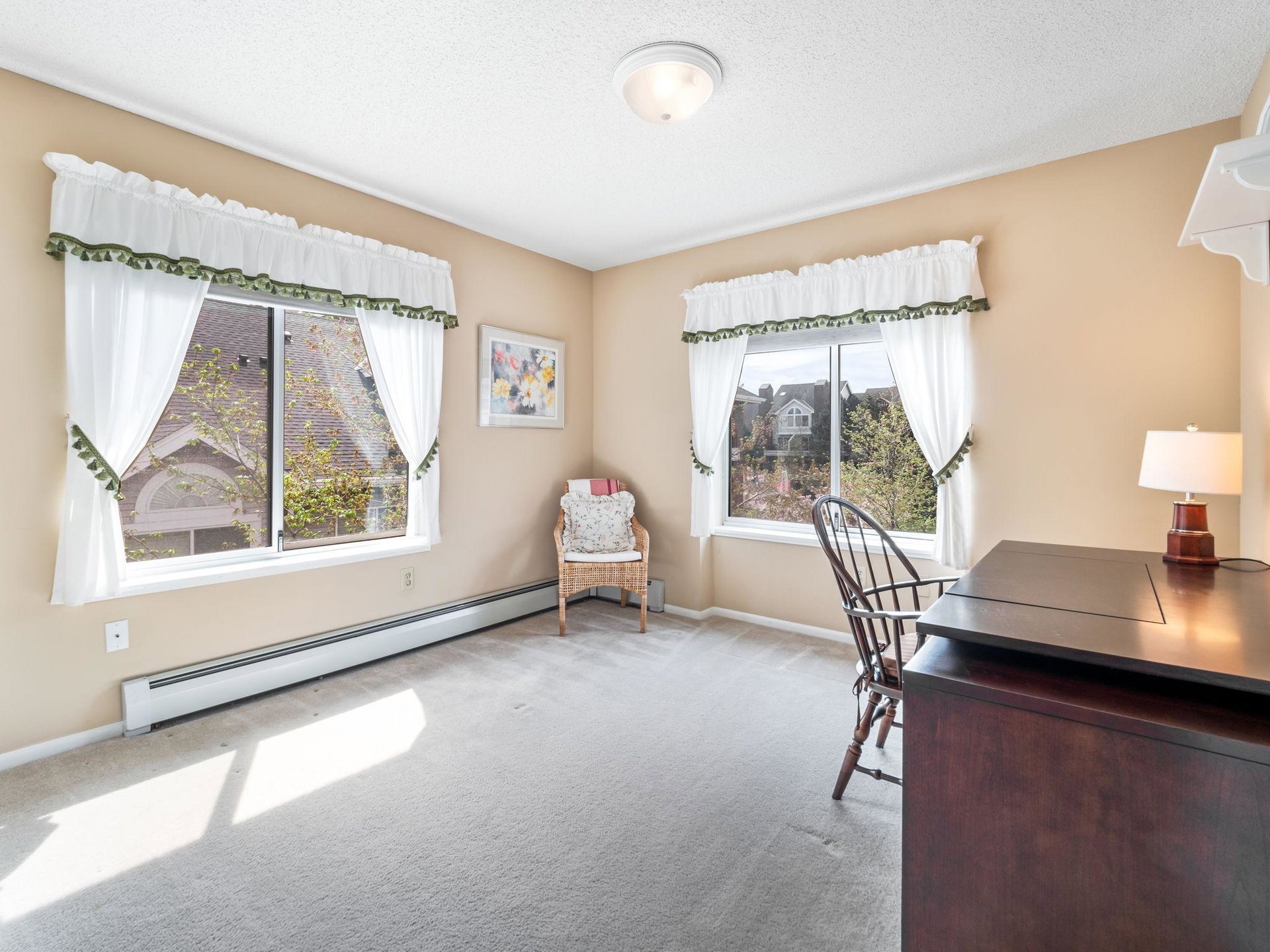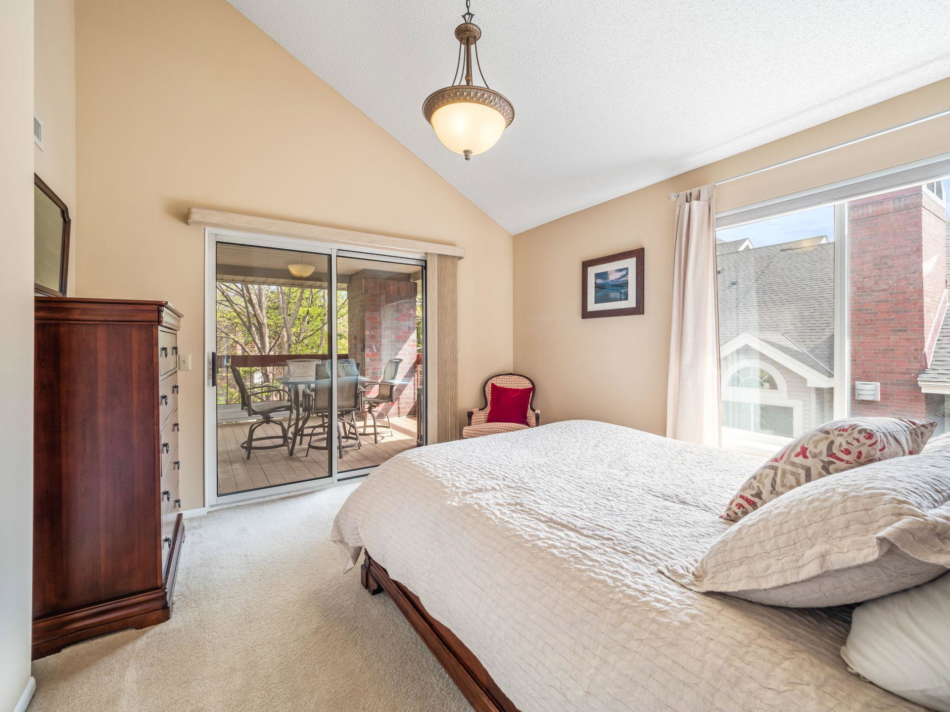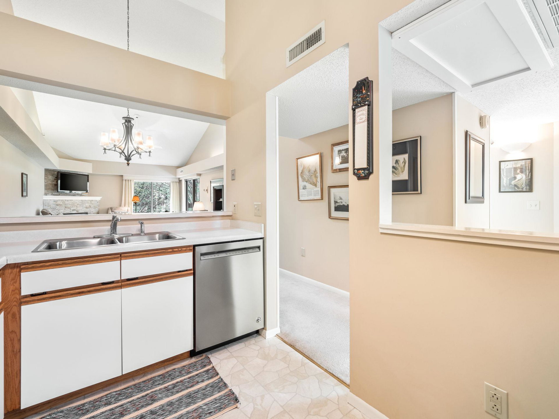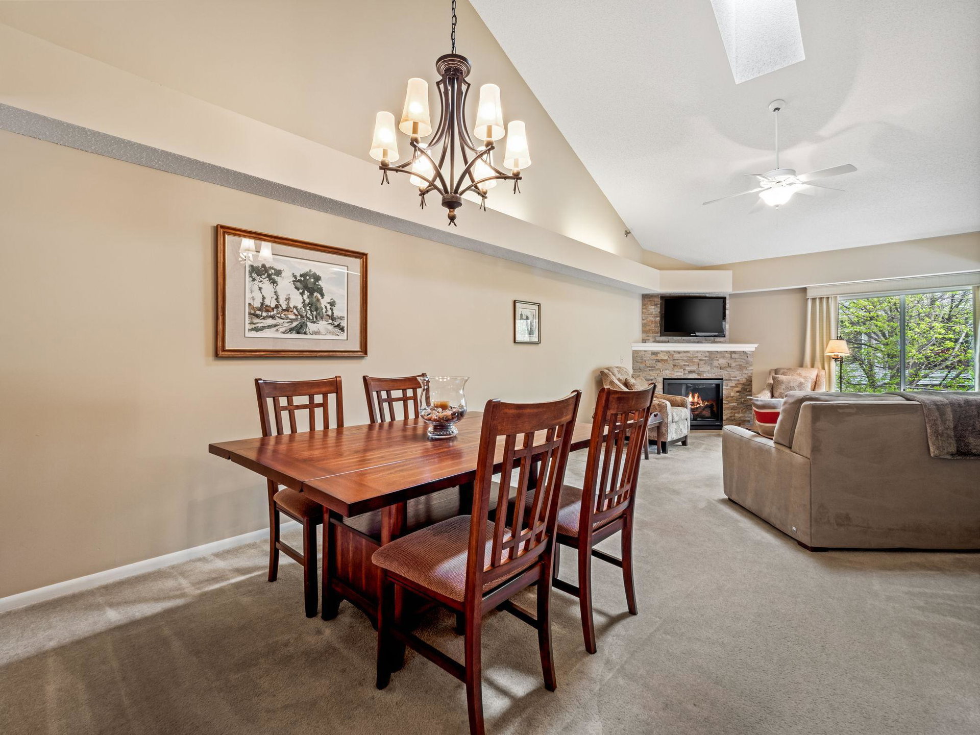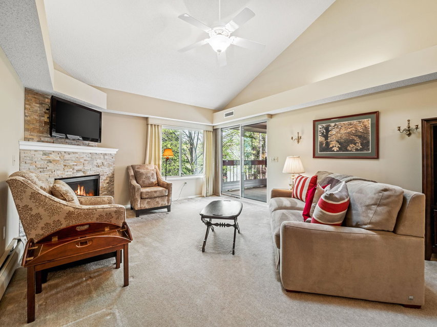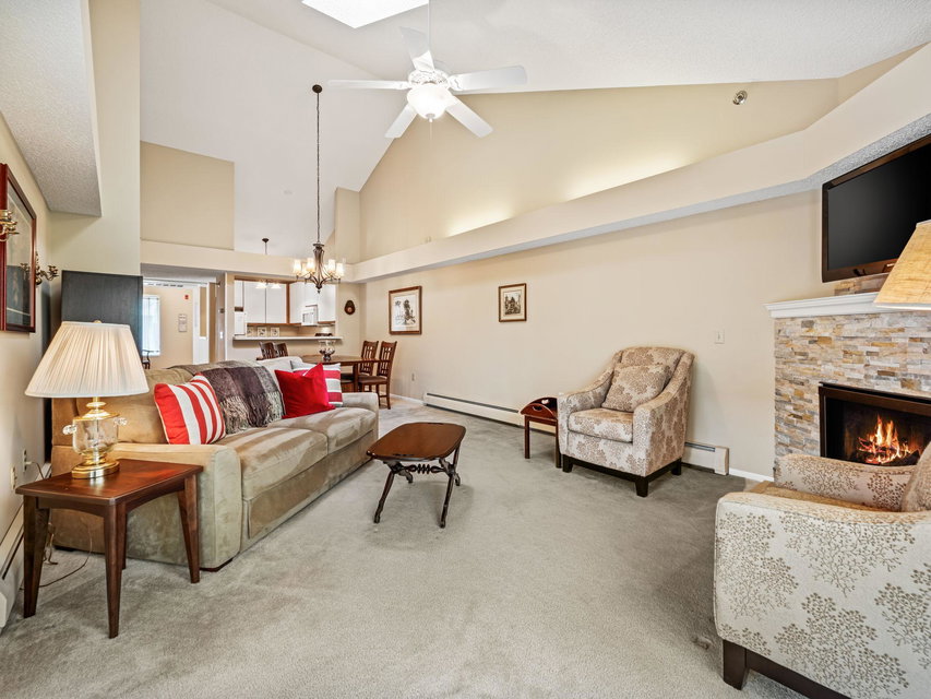Bright and beautiful corner unit condo with vaulted ceiling + sky light, laundry and oversized covered deck. Two bedrooms, newer gas fireplace, very well maintained, this Centennial Lakes home is conveniently located to outdoor fun, grocery stores, shopping, restaurants, interstates, and more. Located at the top of the stairwell and in an elevator building, a conveniently located garage space conveys with sale. Association includes Edinborough Park membership, car wash in garage, and secured bike room. Check it out!