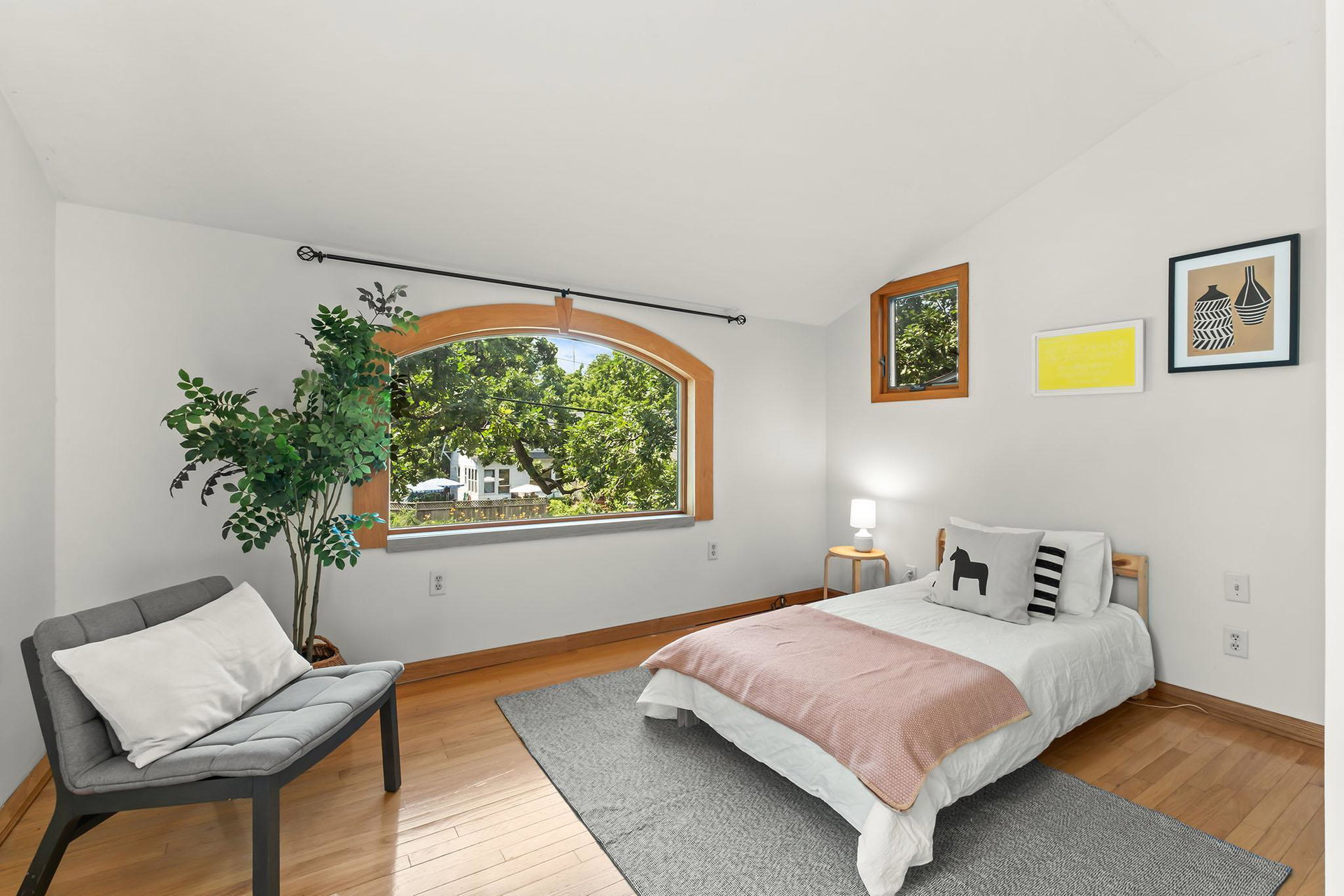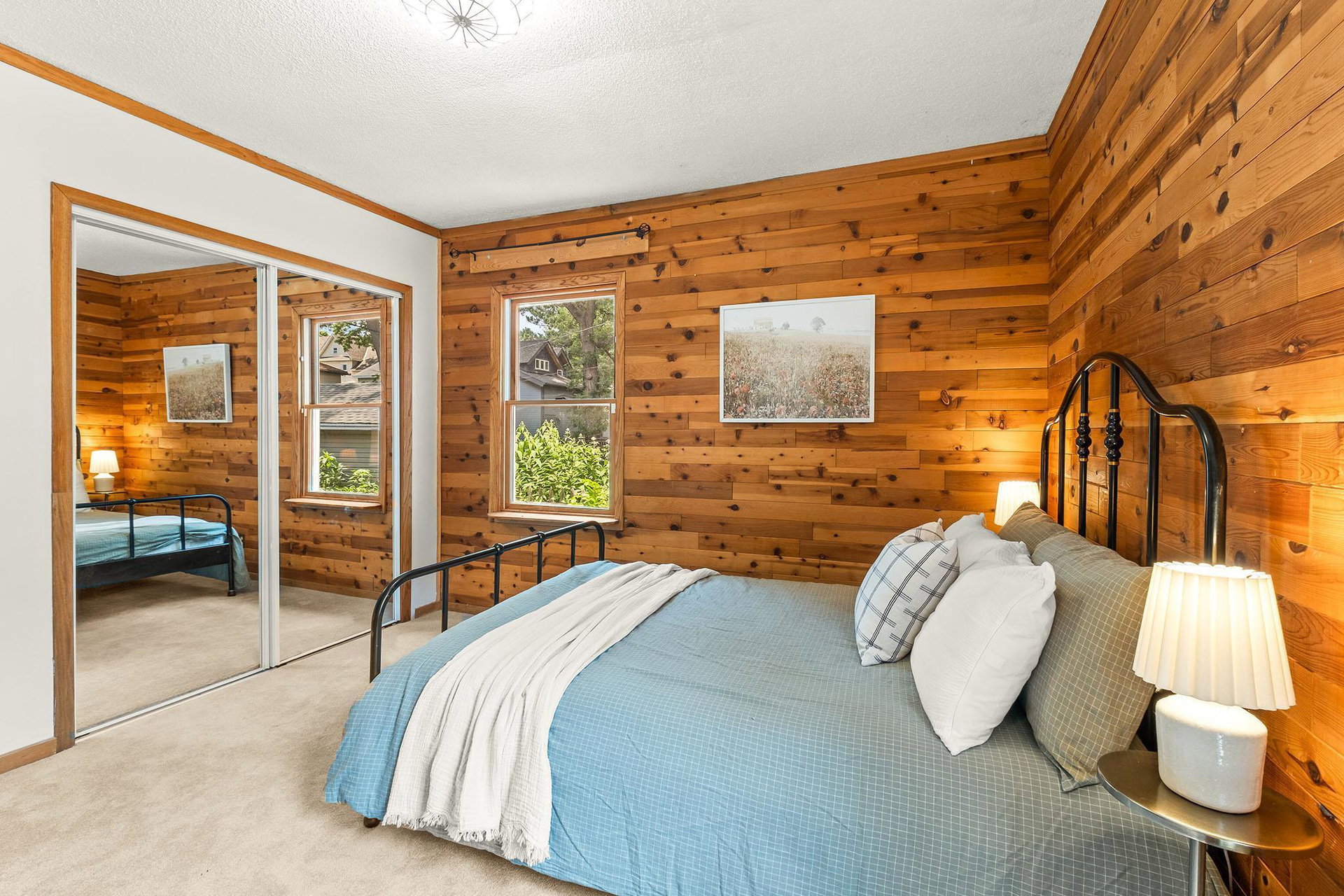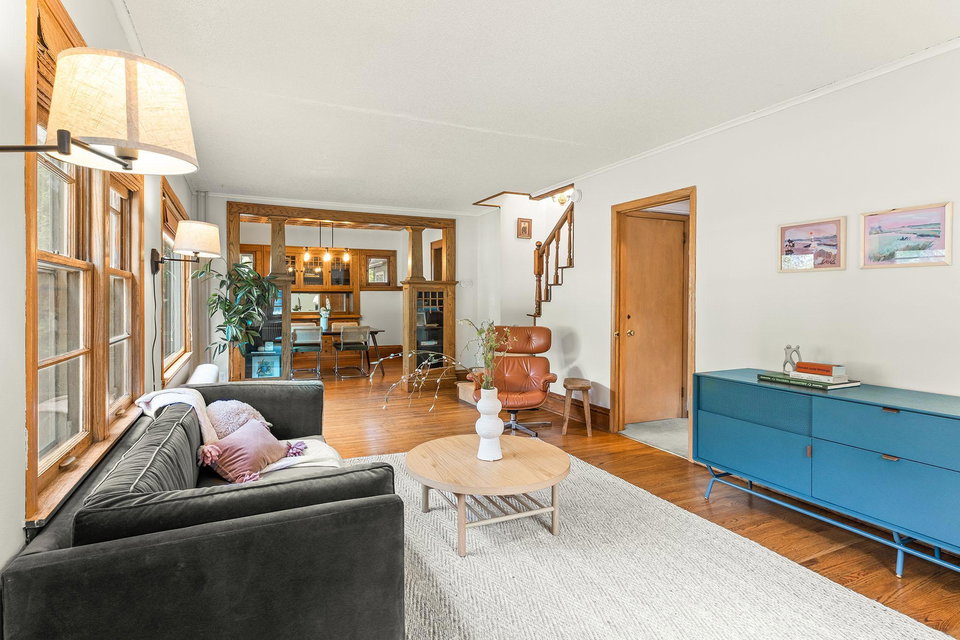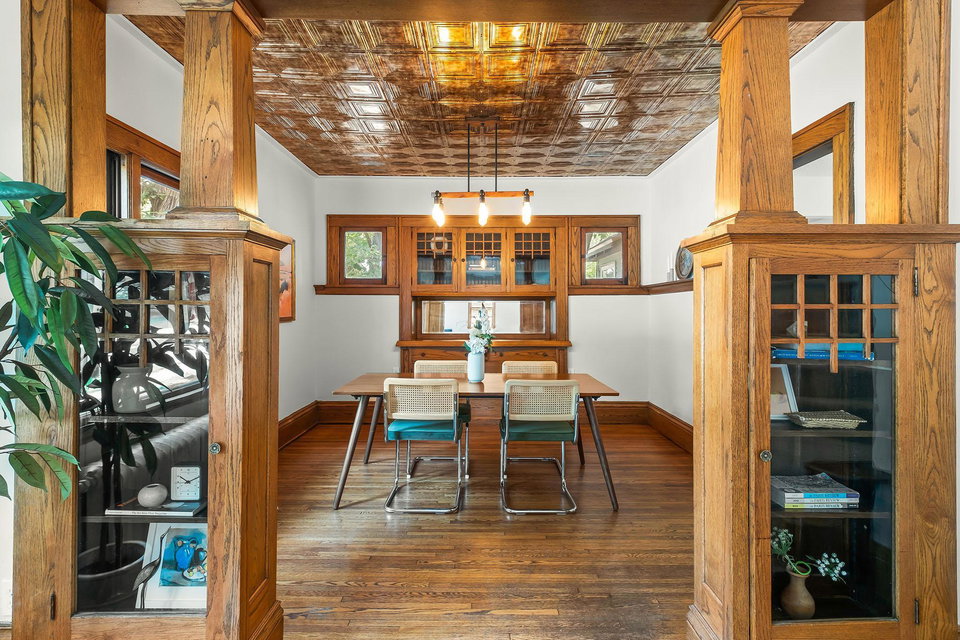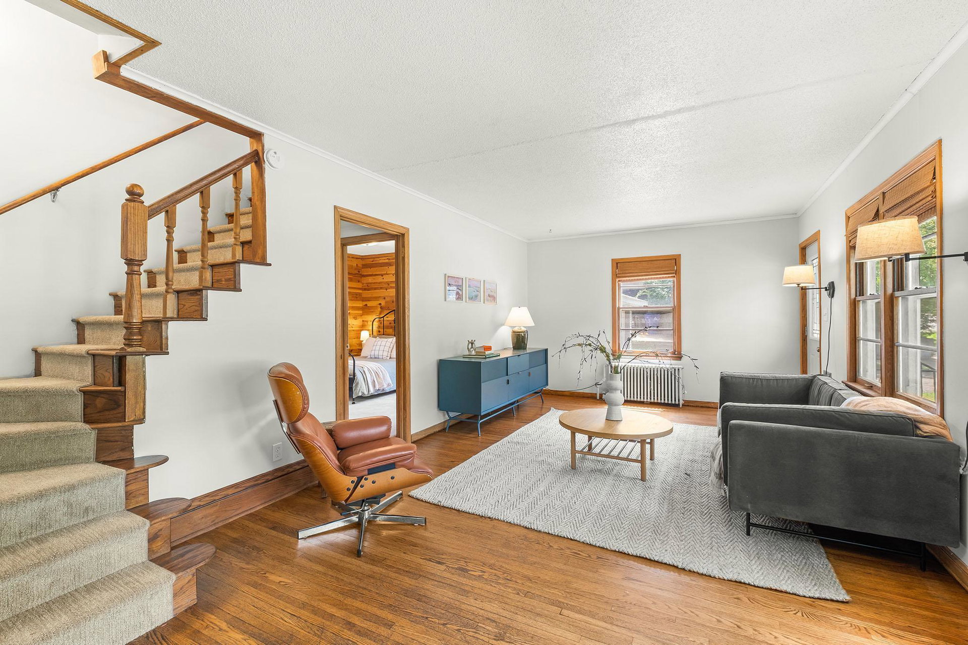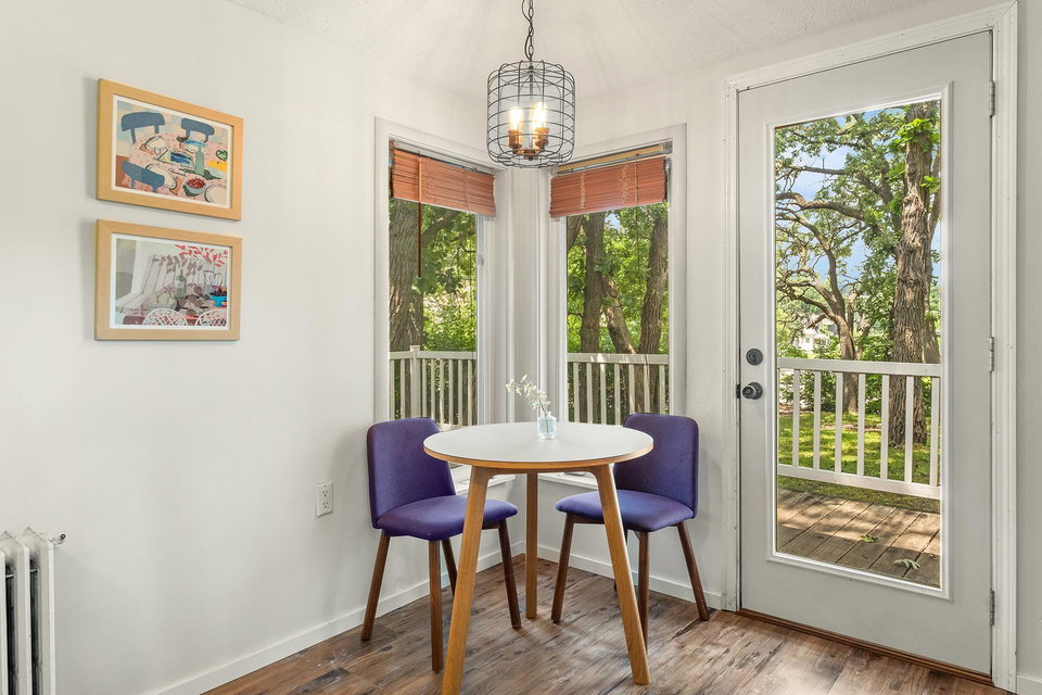 Multiple offers received – All offers are due by 9am on Saturday 7/12. Step inside this 3 bedroom, 2 bath, 1.5 story Craftsman home in the Hamline-Midway neighborhood!! The main floor welcomes with an expansive living room bookended by a gorgeous oak built-in offering a stylish separation to the formal dining room, classic to this eras charm. The dining room is anchored by a buffet and includes a stylish copper ceiling. The large kitchen includes a center island as well as an eat-in area, with direct access to your deck. Just off the kitchen, you’ll find a recently renovated full bathroom with sleek finishes. Also on the main floor, is the first bedroom. On the upper level, you’ll find two more bedrooms with dynamic windows inviting light inside as well as the 3/4 bath. Outside, the large, tree-lined lot provides a great setting for relaxation or outdoor gatherings. The oversized two car garage is freshly painted. Enjoy easy access to both downtowns, the river, Como Park, coffee shops, breweries, and more! The roof is brand new!! Come see this one!!