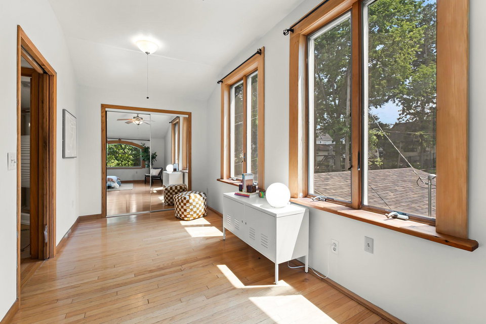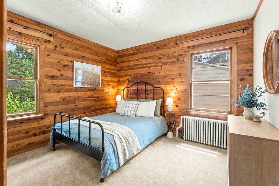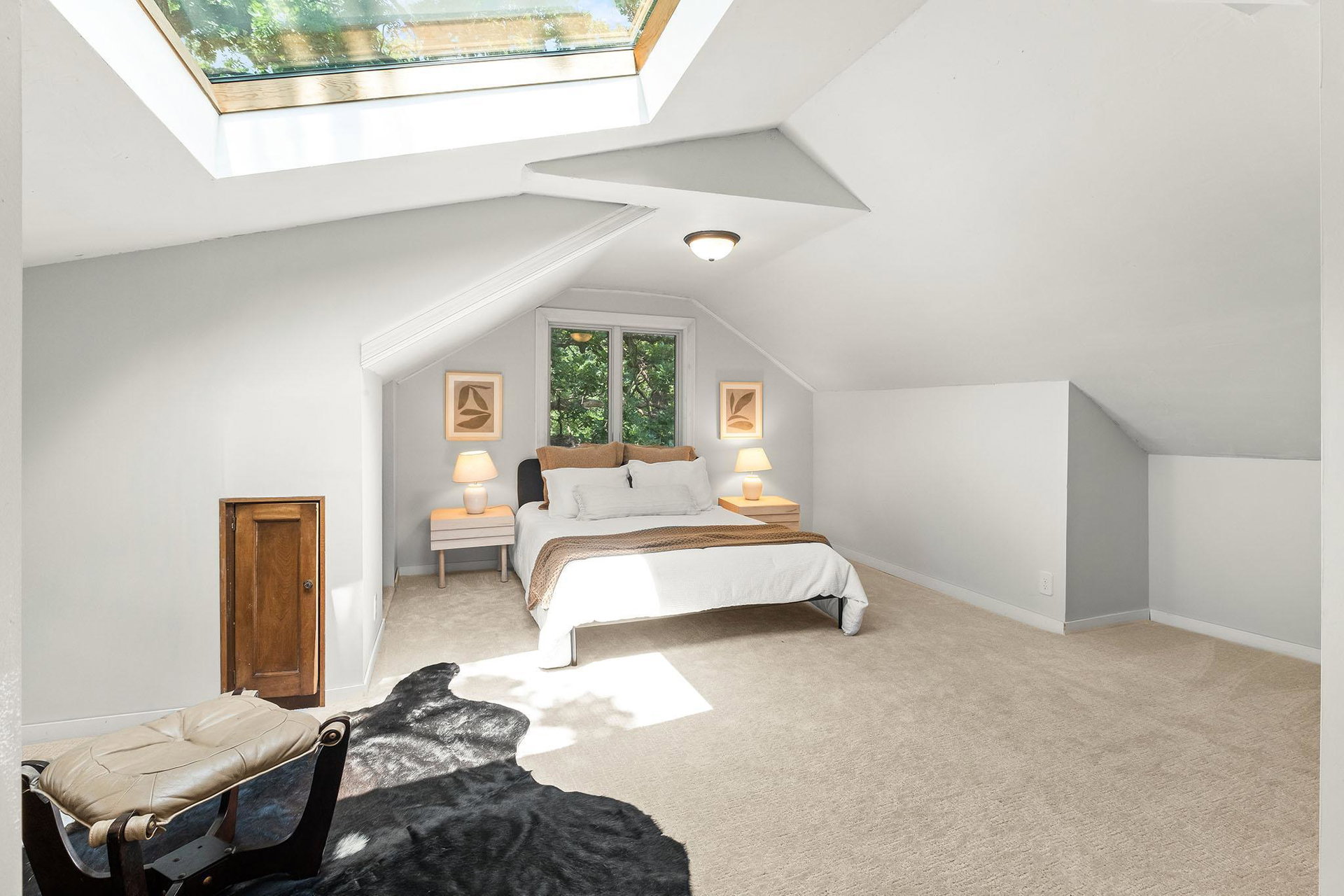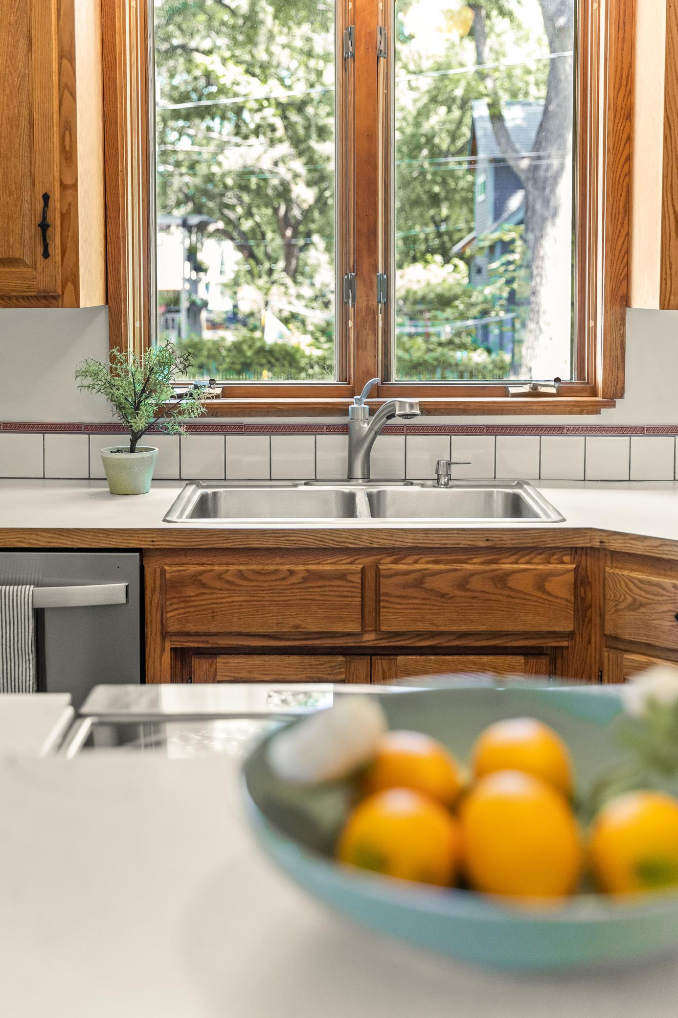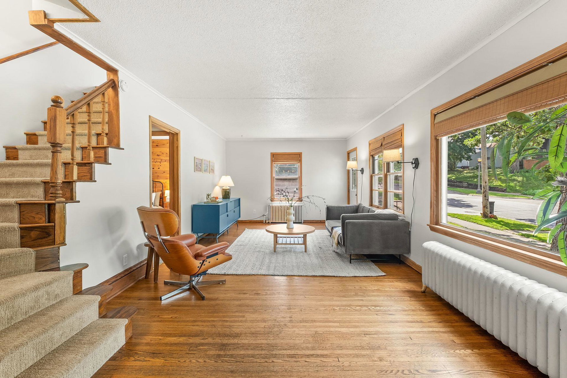 Multiple offers received – All offers are due by 9am on Saturday 7/12. Step inside this 3 bedroom, 2 bath, 1.5 story Craftsman home in the Hamline-Midway neighborhood!! The main floor welcomes with an expansive living room bookended by a gorgeous oak built-in offering a stylish separation to the formal dining room, classic to this eras charm. The dining room is anchored by a buffet and includes a stylish copper ceiling. The large kitchen includes a center island as well as an eat-in area, with direct access to your deck. Just off the kitchen, you’ll find a recently renovated full bathroom with sleek finishes. Also on the main floor, is the first bedroom. On the upper level, you’ll find two more bedrooms with dynamic windows inviting light inside as well as the 3/4 bath. Outside, the large, tree-lined lot provides a great setting for relaxation or outdoor gatherings. The oversized two car garage is freshly painted. Enjoy easy access to both downtowns, the river, Como Park, coffee shops, breweries, and more! The roof is brand new!! Come see this one!!