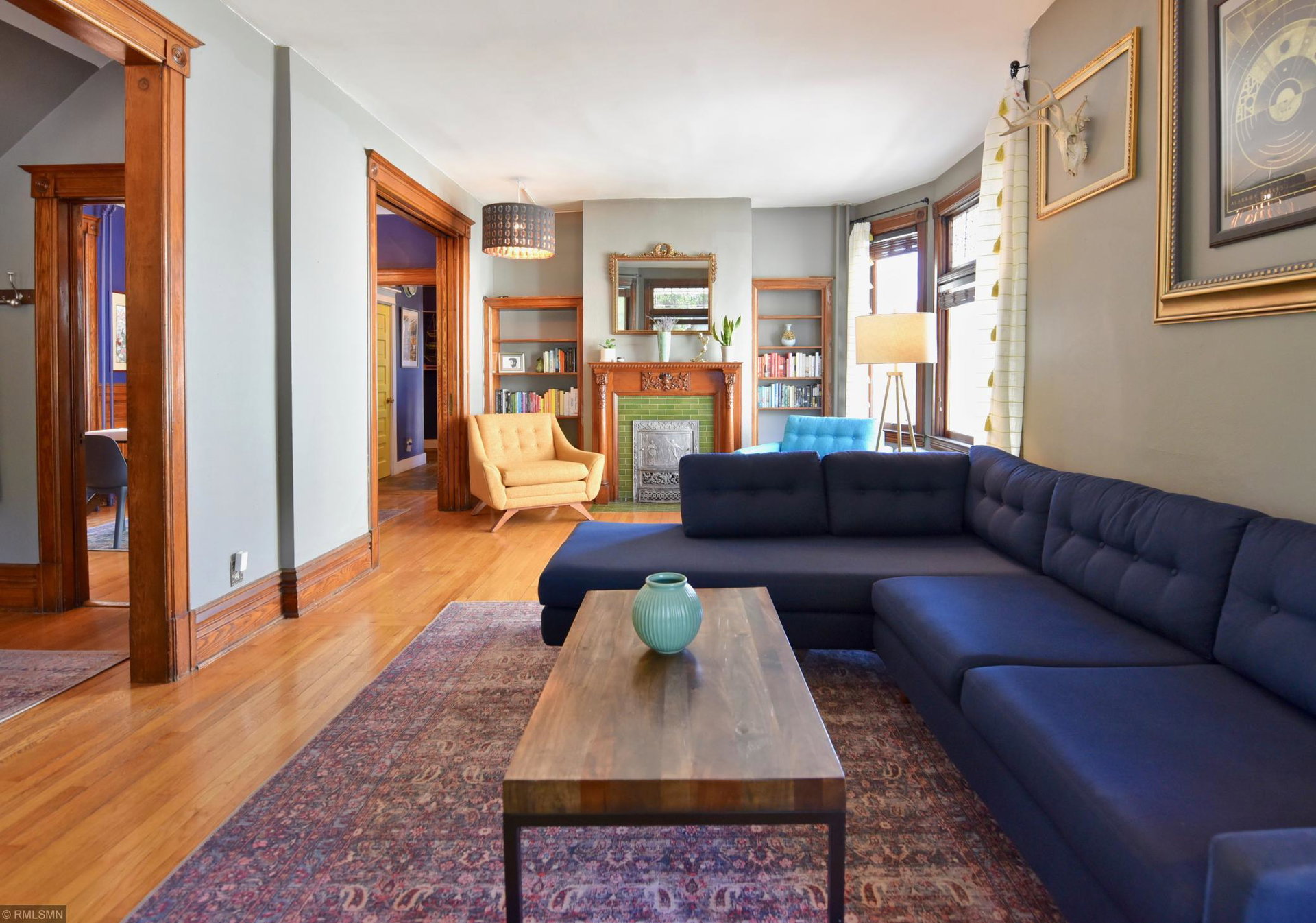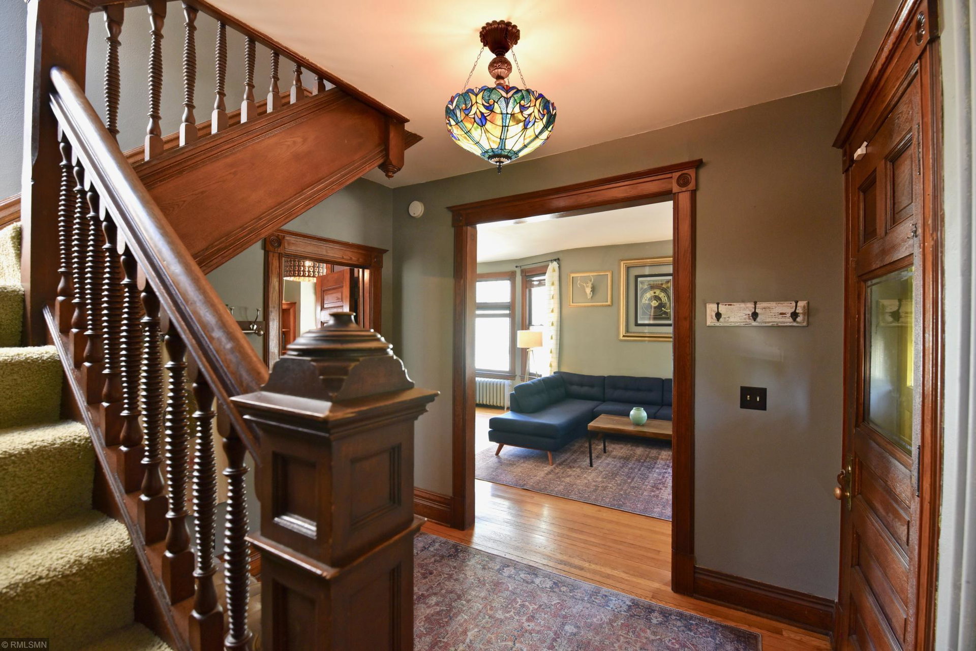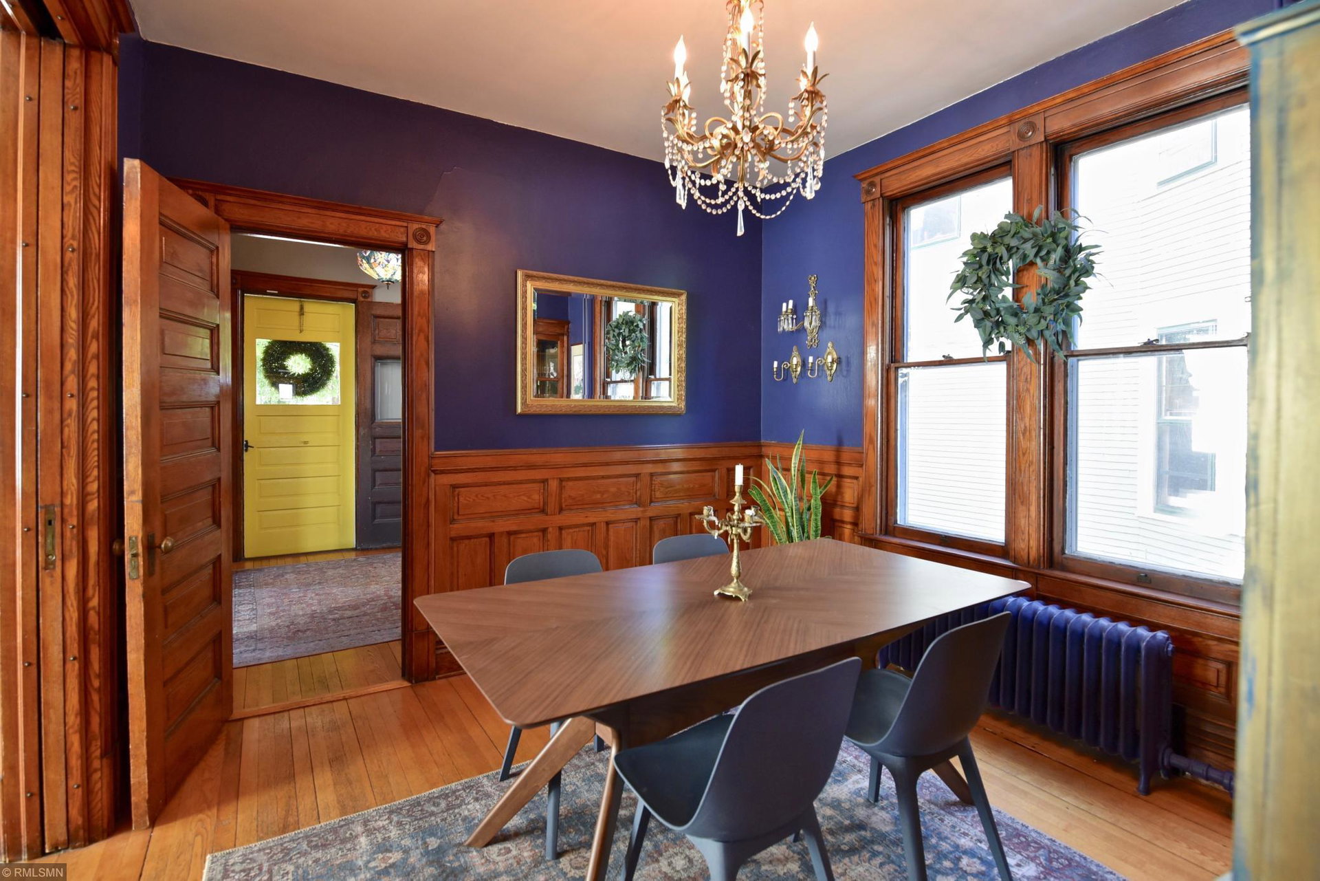 Classic St Paul 2 Story Home with large 3rd floor Family Room! This 4+ Bed 2 Bath home is a fine example of Old World Charm! Features include; Ornate Original Oak Millwork, Functional 8 Ft tall 7 Panel Pocket Doors! Handsome Built-ins, 9 Ft High Ceilings, Great Layout, Wood Burning Fireplace w/ Very Unique Decorative Cover, Warm HW Floors, 4 Bedrooms on Upper Level, Huge 3rd Floor Family Room, Friendly Front Porch, New 2 Car Garage, Brick Patio, Fenced Yard, Close to Shops, Parks… Come see this one!